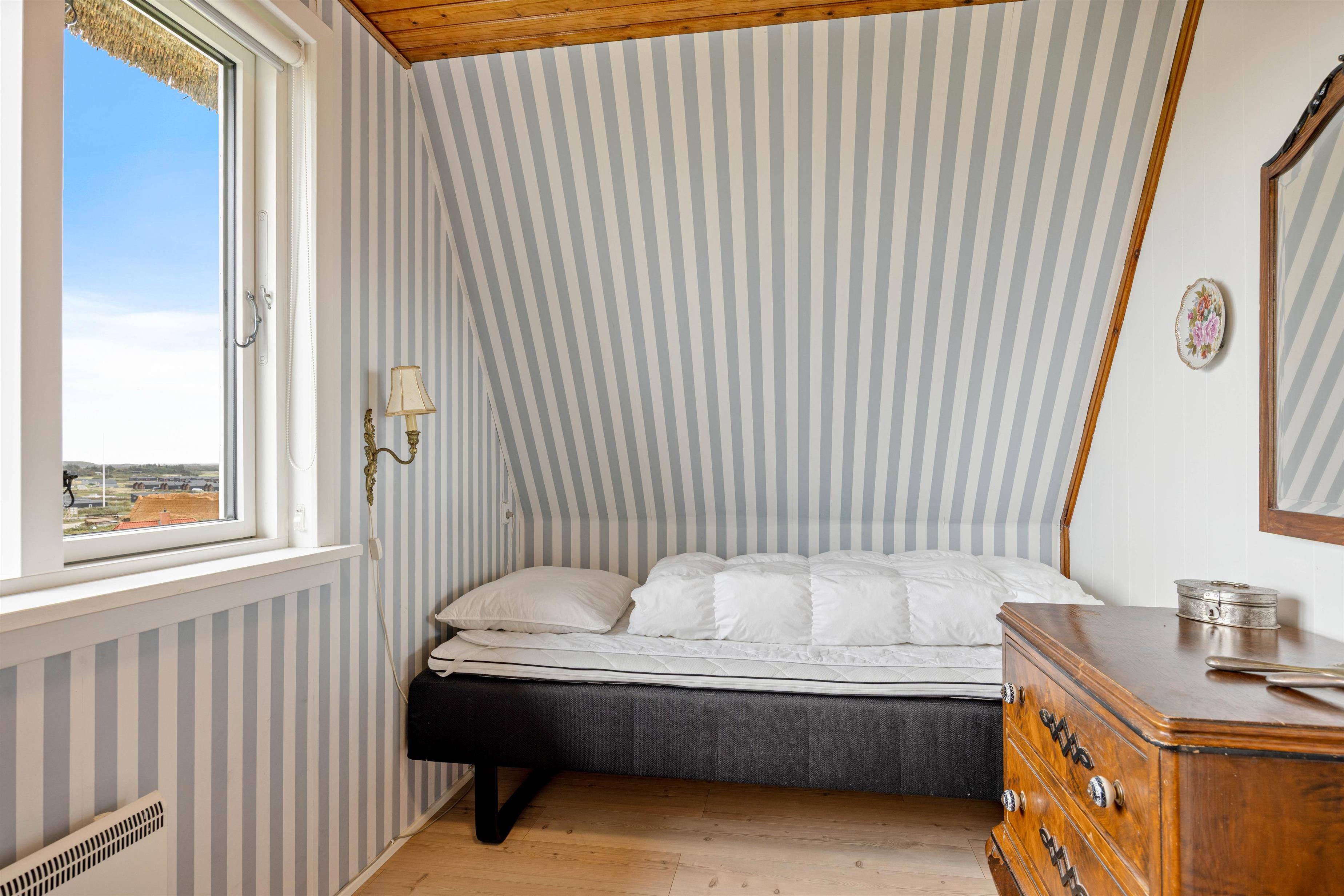Dette charmerende sommerhus på toppen af klitterne er blandt Søndervigs allerførste. Det har i 2018 gennemgået en totalrenovering, og den gennemførte sommerhusstil oser af charme og nostalgi. Der er både havudsigt og udsigt over Søndervig fra grunden, og både stranden og byen ligger få minutters gang væk.