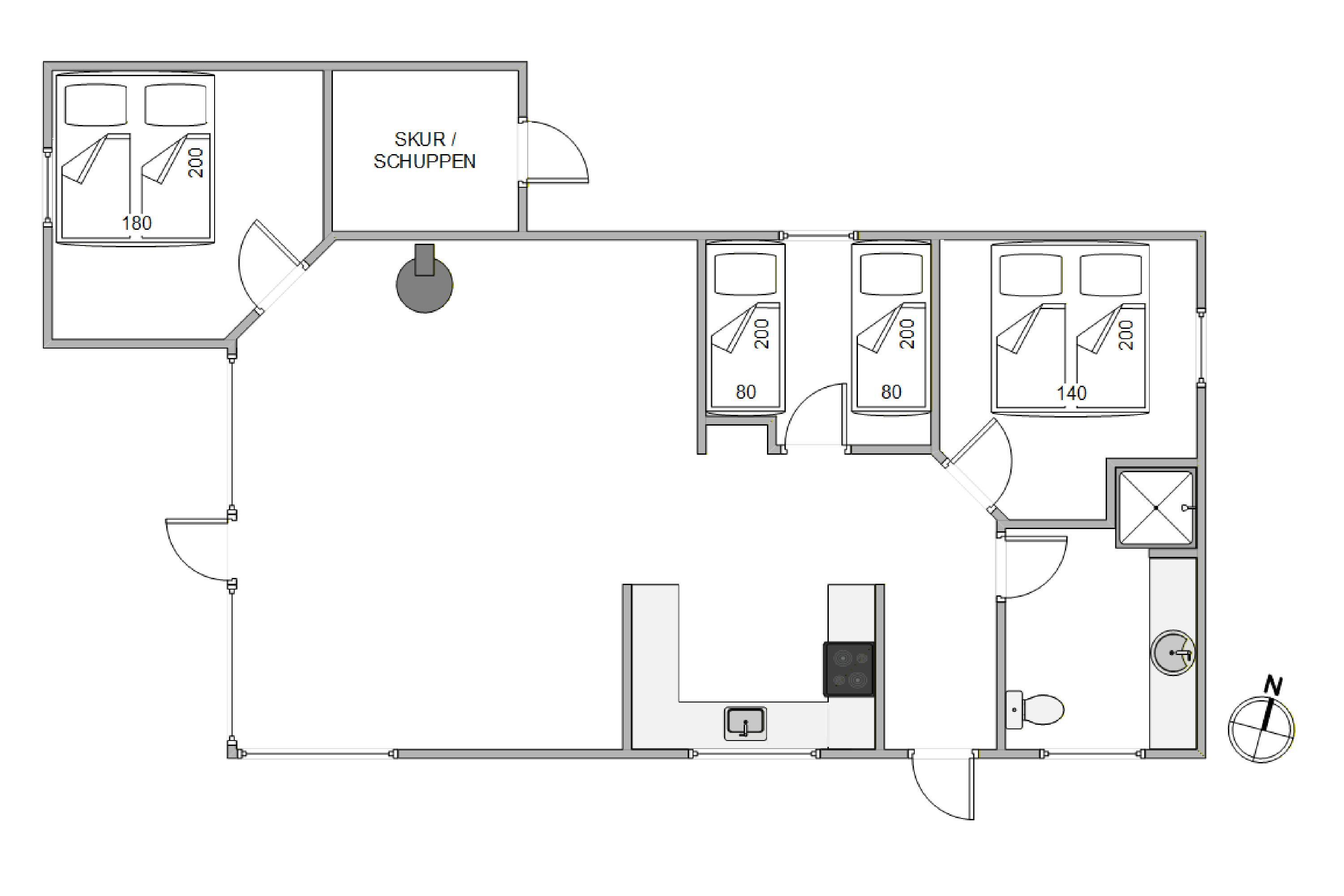 Sommerhuset er opført i år 2000 og har et boligareal på 79 kvadratmeter, som giver god plads til en afslappende ferie ved Vesterhavet. Med 3 hyggelige soverum fordelt på 2 dobbeltsenge og 2 enkeltsenge er der komfortabel plads til op til 6 personer – ideelt til både familieferie og ophold med venner.