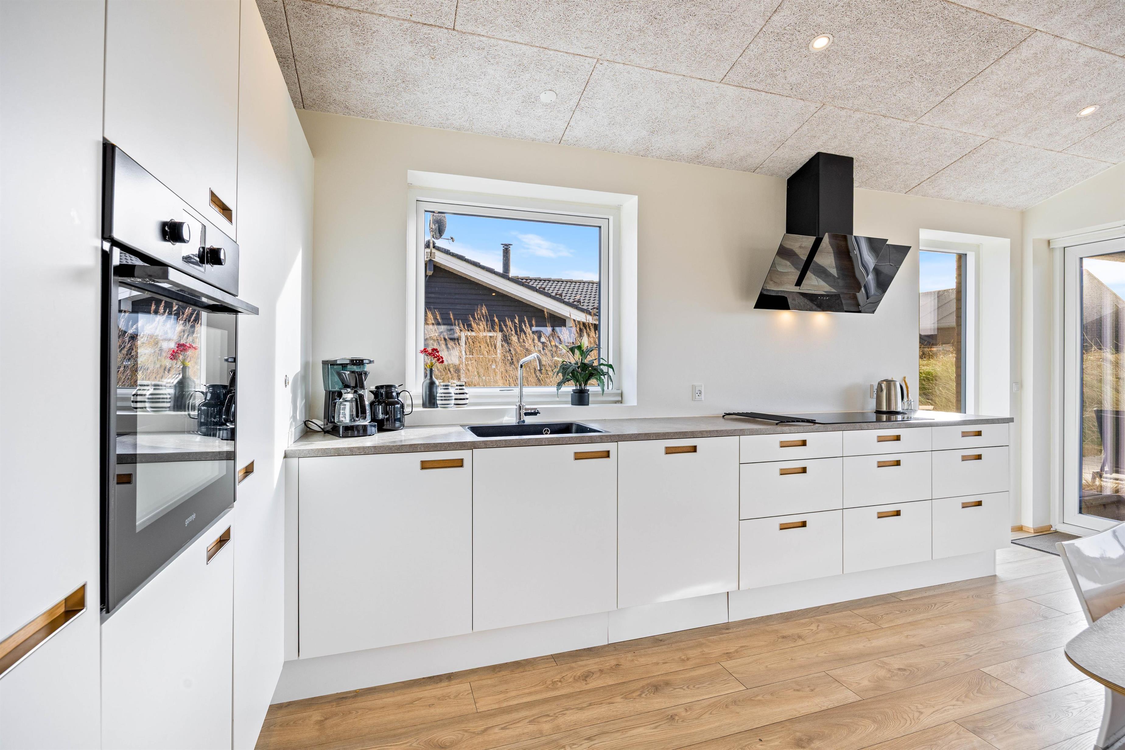 Huset er opført i moderne stil, lyst og venligt med store vinduespartier, lyse vægge og loft til kip. I det store køkken-alrum er der god plads til alle, og med køkkenets moderne interiør som fx induktionskogeplade, mikrobølgeovn og opvaskemaskine er det en ren fornøjelse sammen at trylle lækre måltider.