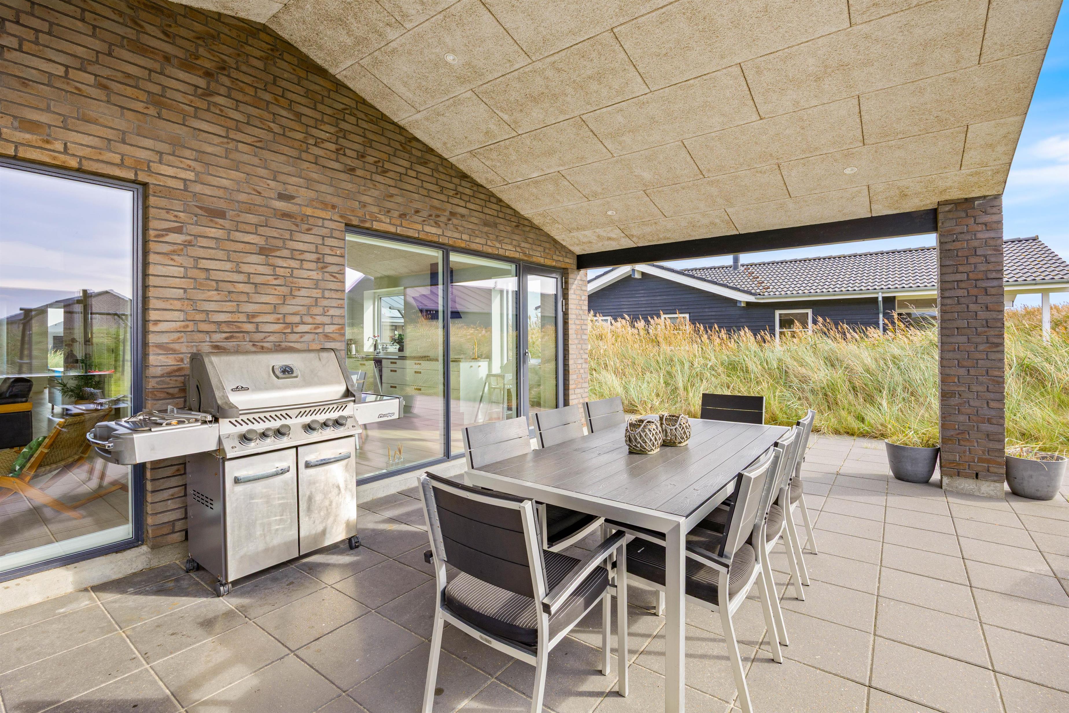 Her er et hus med fornemme faciliteter inde såvel som ude. At kunne afslutte en kold vinterdag med at tænde op i spaen på den overdækkede terrasse og siddende i det varme vand, nyde roen imens stjernerne titter frem på himlen er et absolut hit. Lige ved siden af spaen, finder I udebruseren, som kan skylle det værste sand af kroppen, efter en god tur på stranden. OBS. Udebruseren er kun åben fra april-november.