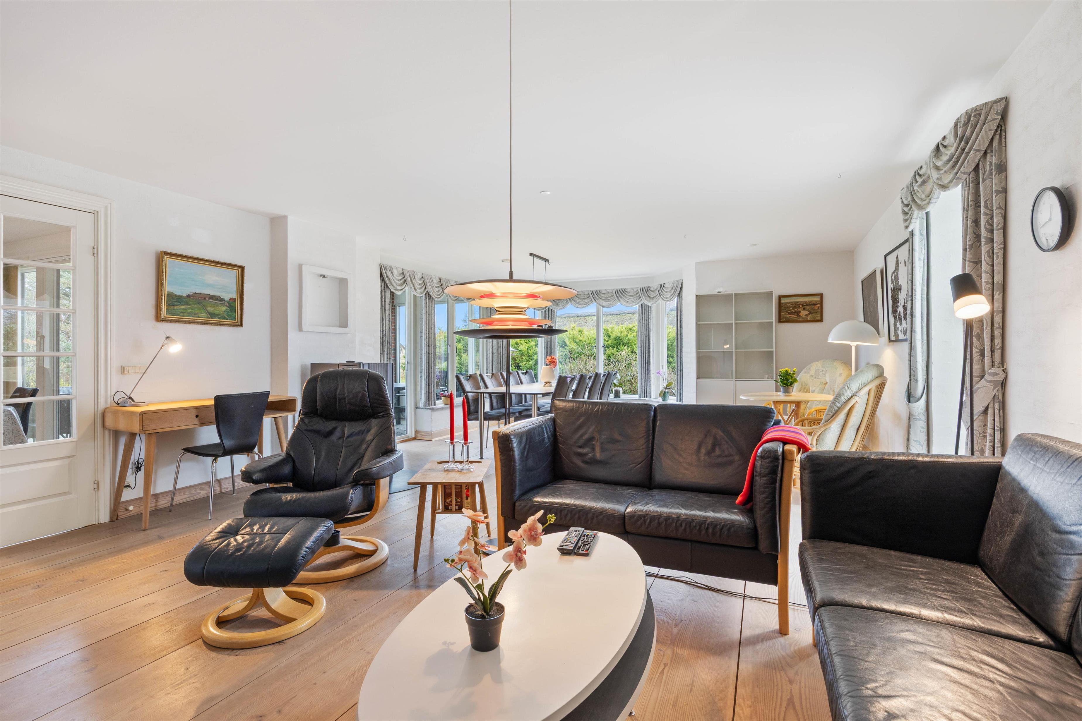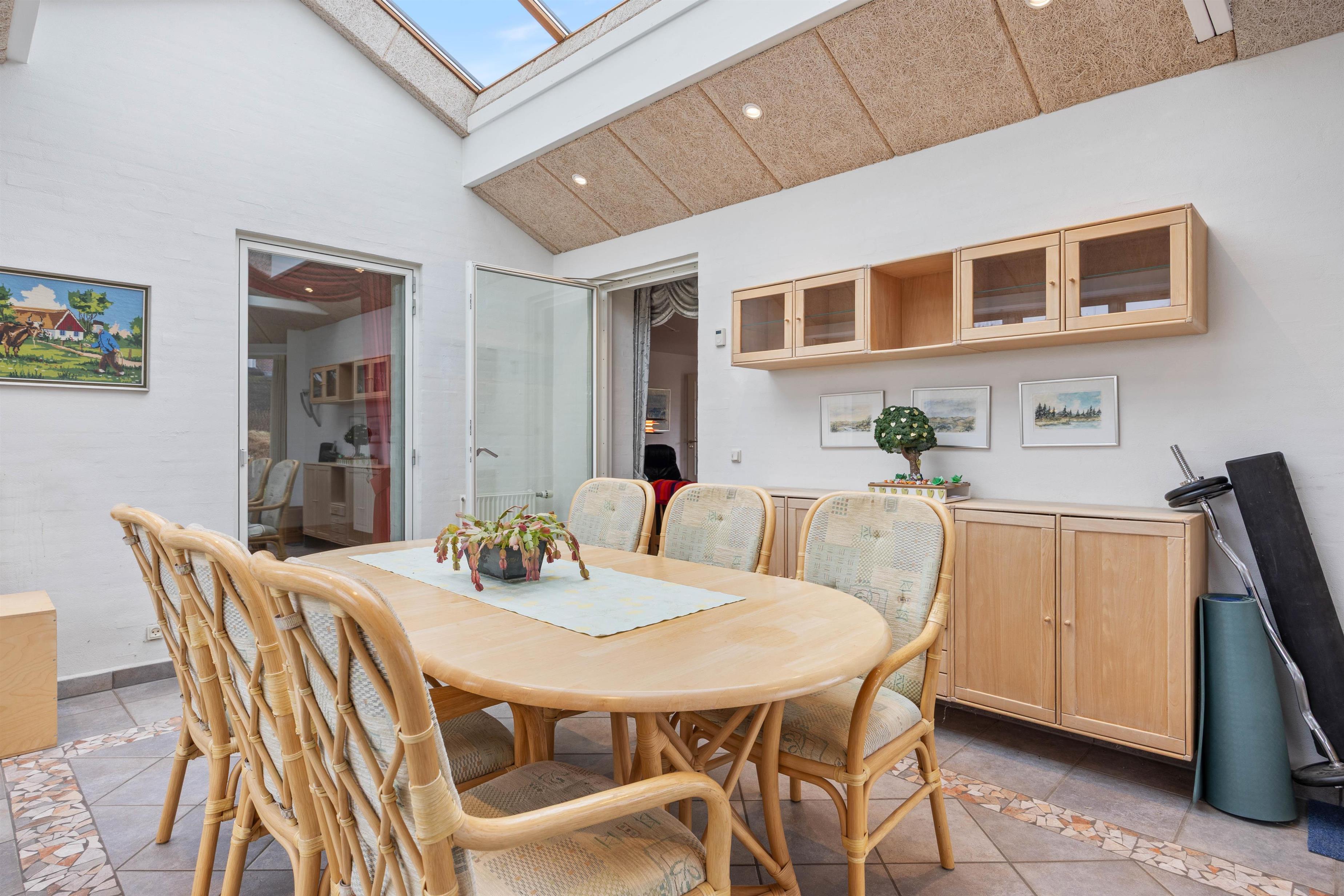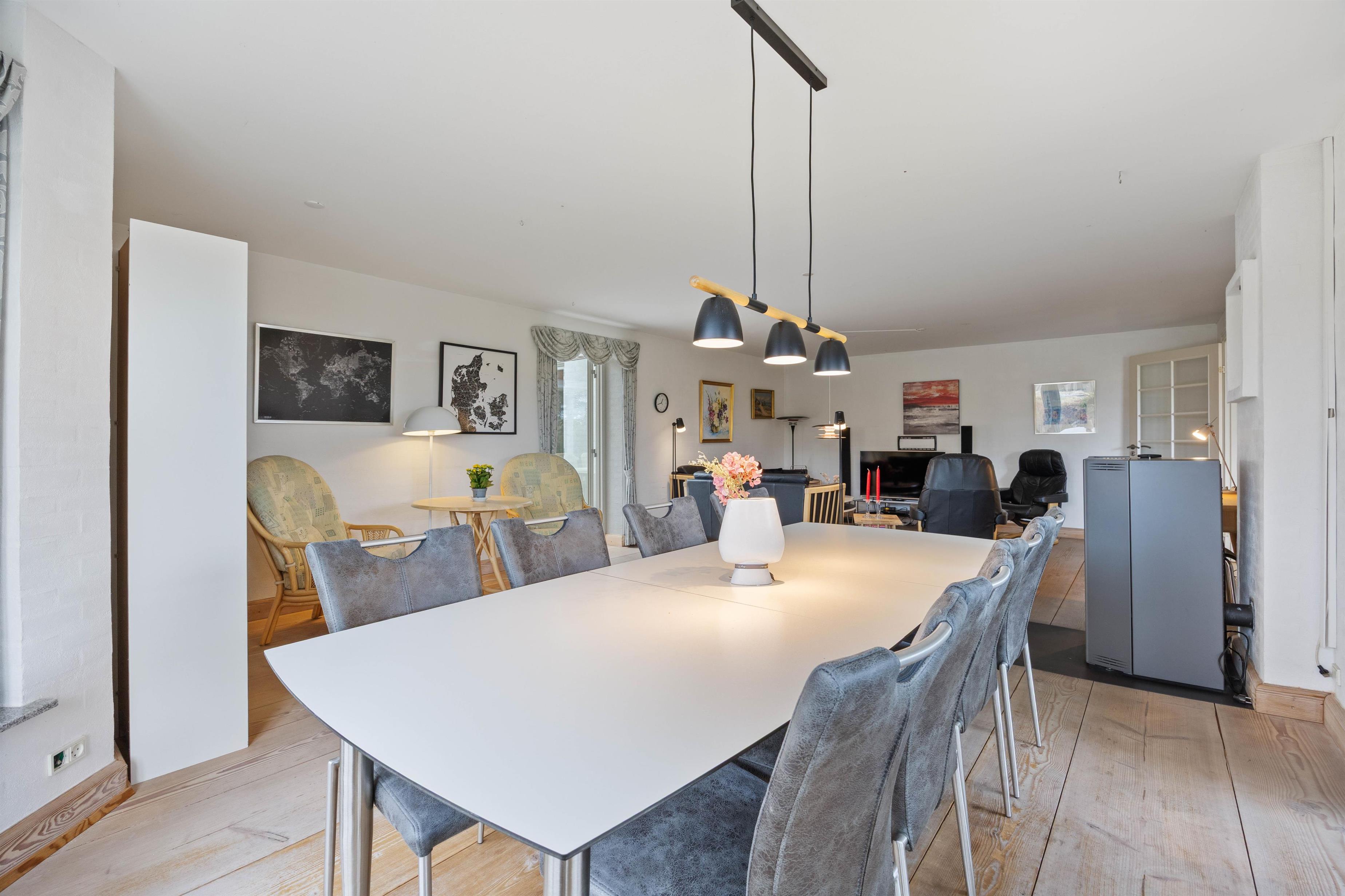 Den gode plads i opholdsområdet passer perfekt til, at I er op til 8 personer, så I kan læne jer tilbage med en kop kaffe, mens resten af selskabet spiller spil eller planlægger næste udflugt. Der er rum til både fællesskab og små pauser, og den direkte forbindelse til udestuen gør det nemt at trække lyset og udelivet helt ind, når vejret inviterer til det.