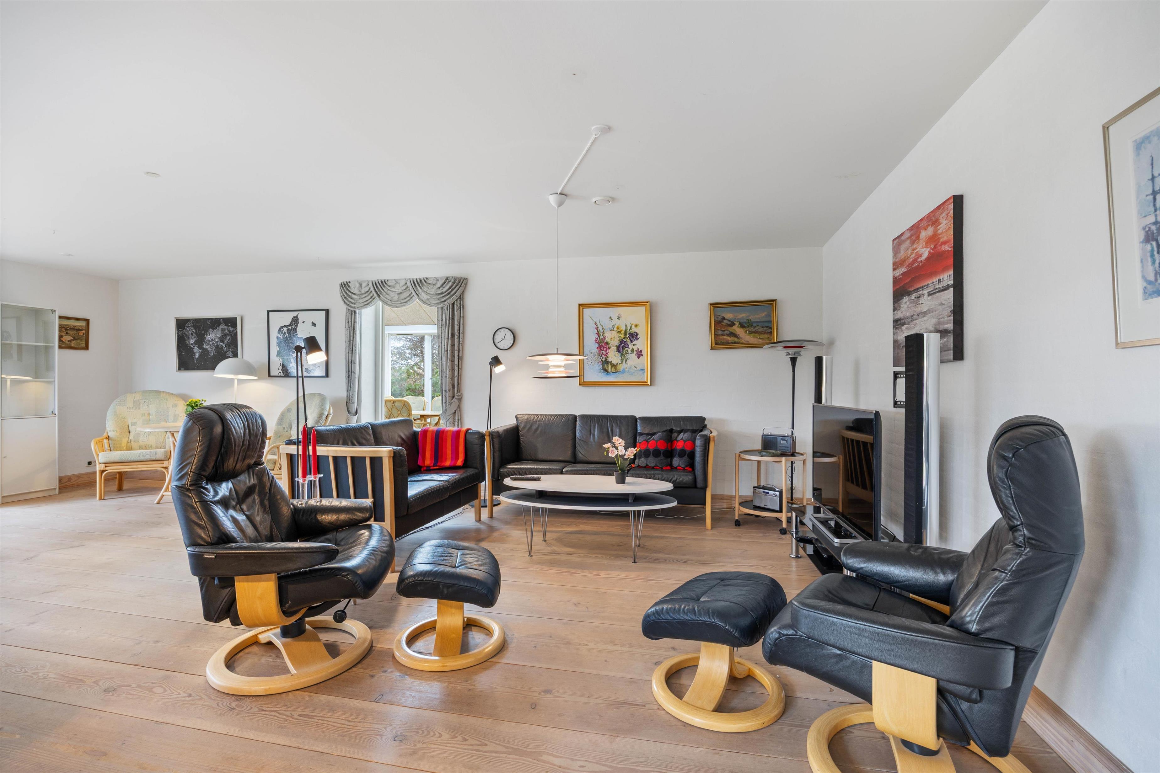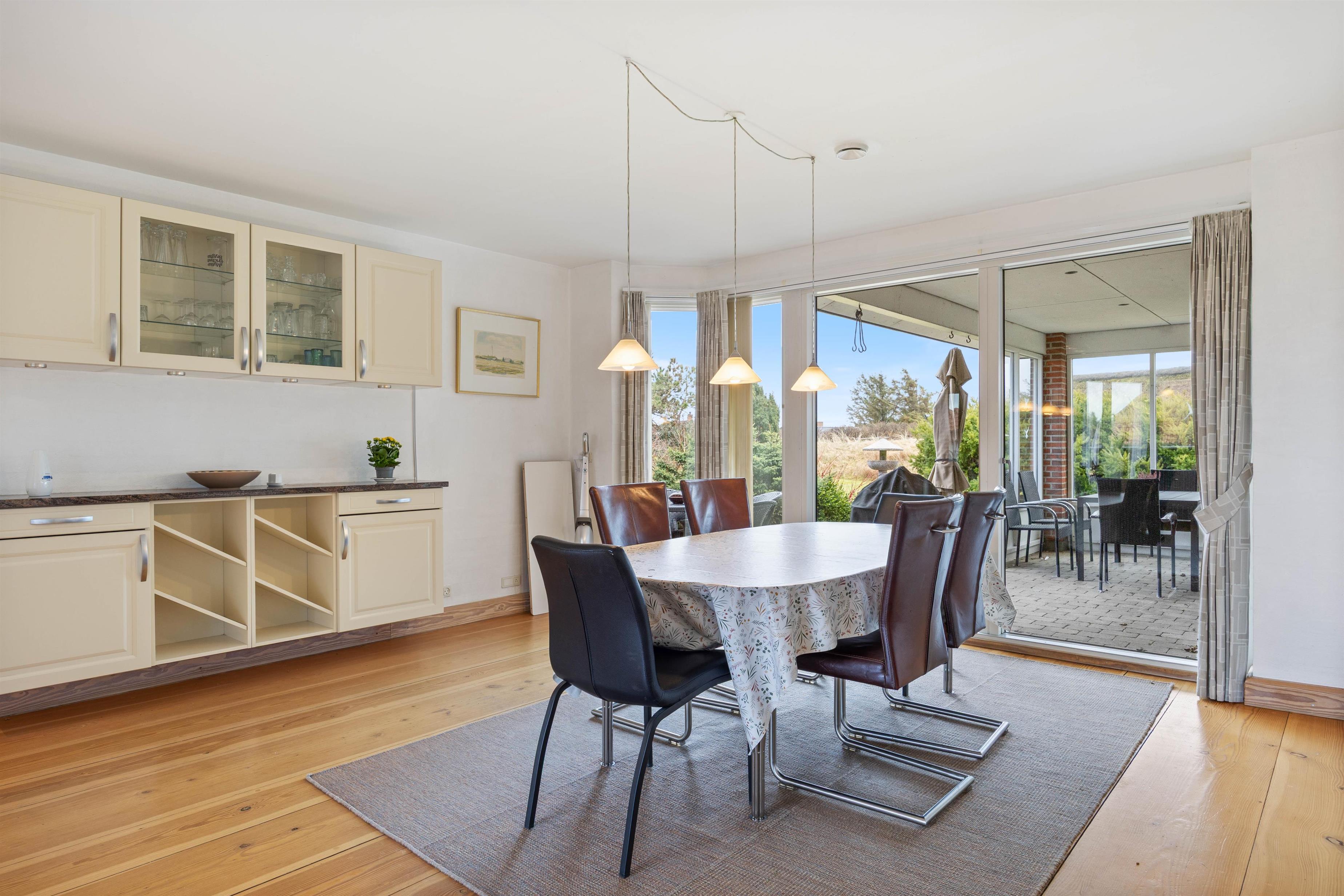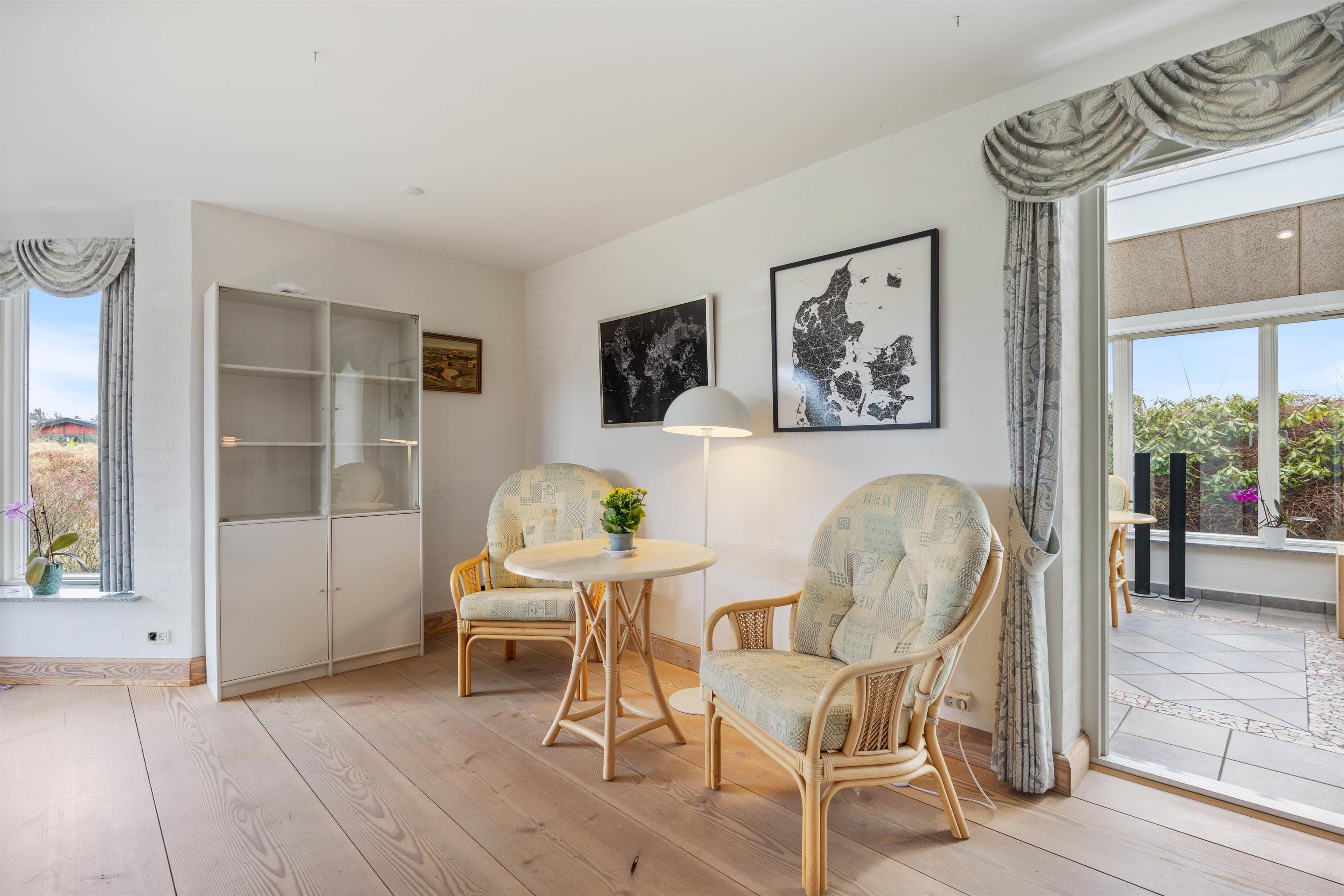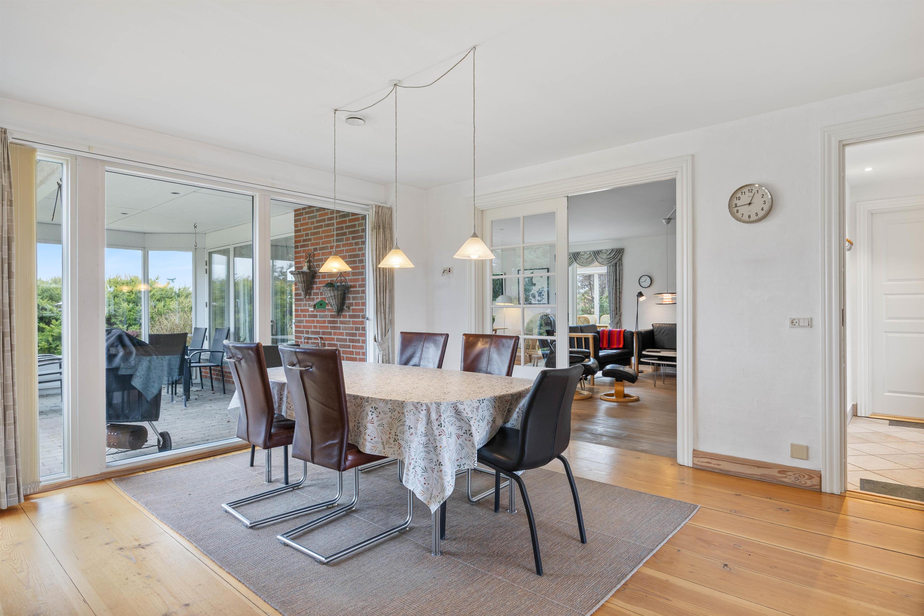 Den gode plads i opholdsområdet passer perfekt til, at I er op til 8 personer, så I kan læne jer tilbage med en kop kaffe, mens resten af selskabet spiller spil eller planlægger næste udflugt. Der er rum til både fællesskab og små pauser, og den direkte forbindelse til udestuen gør det nemt at trække lyset og udelivet helt ind, når vejret inviterer til det.