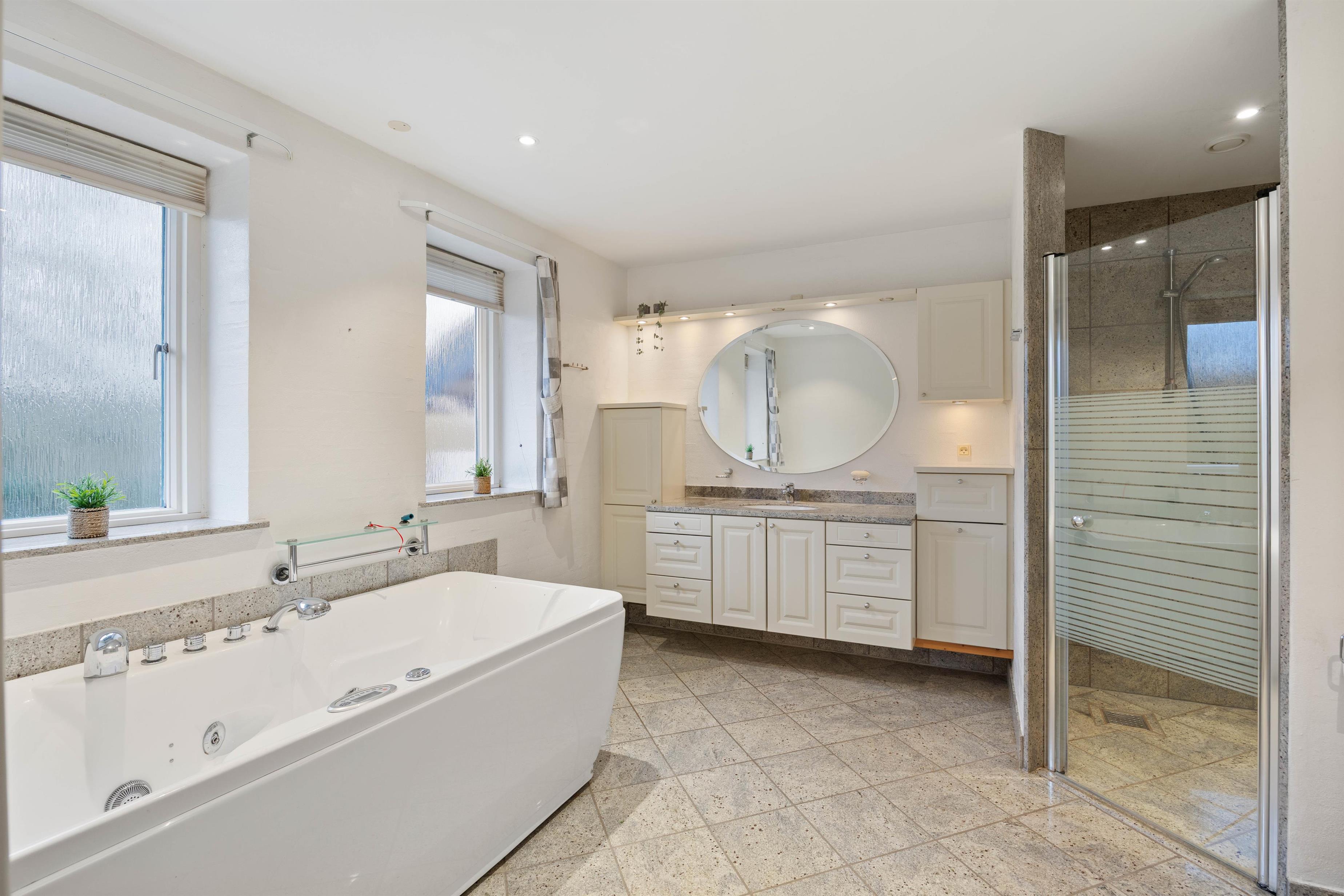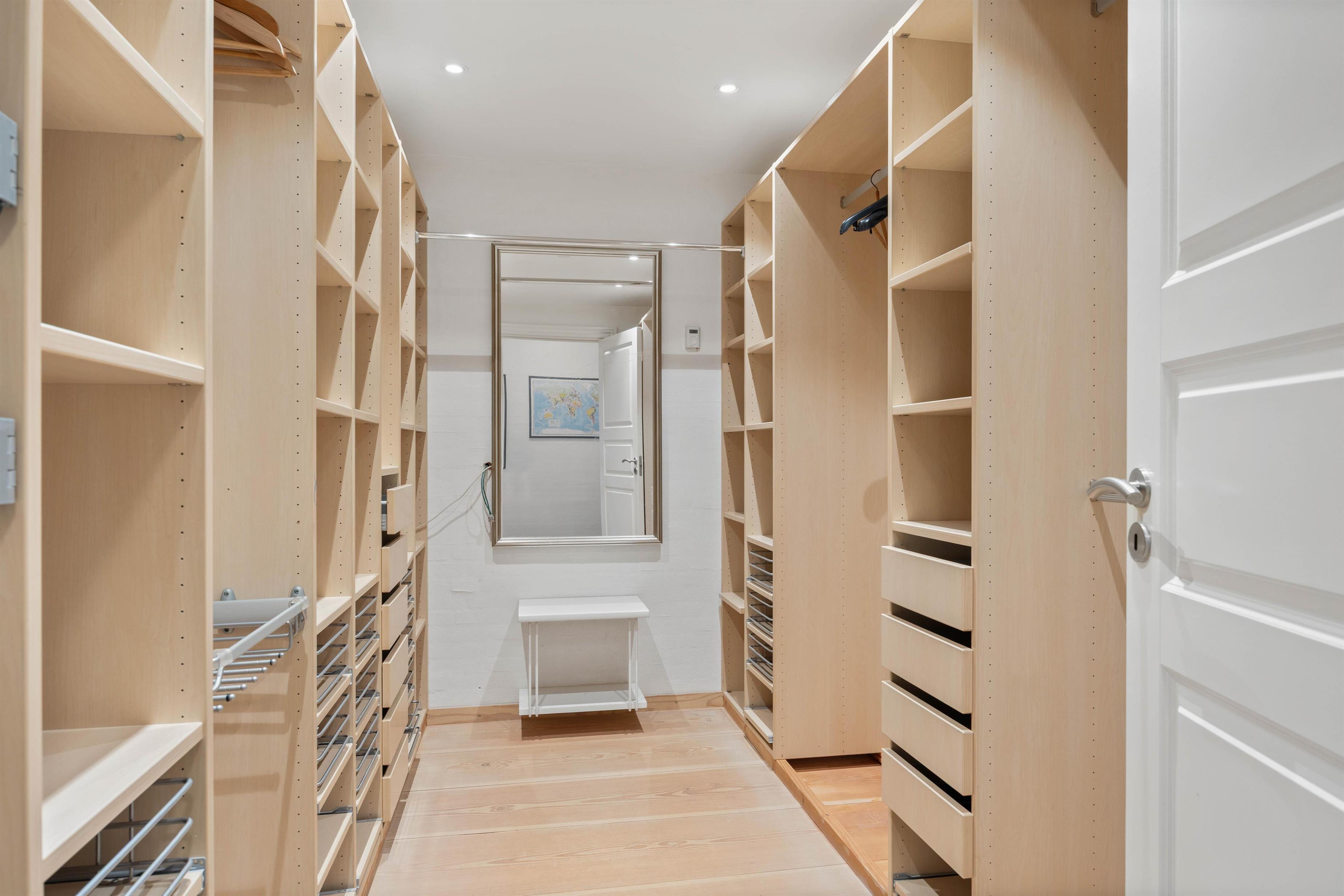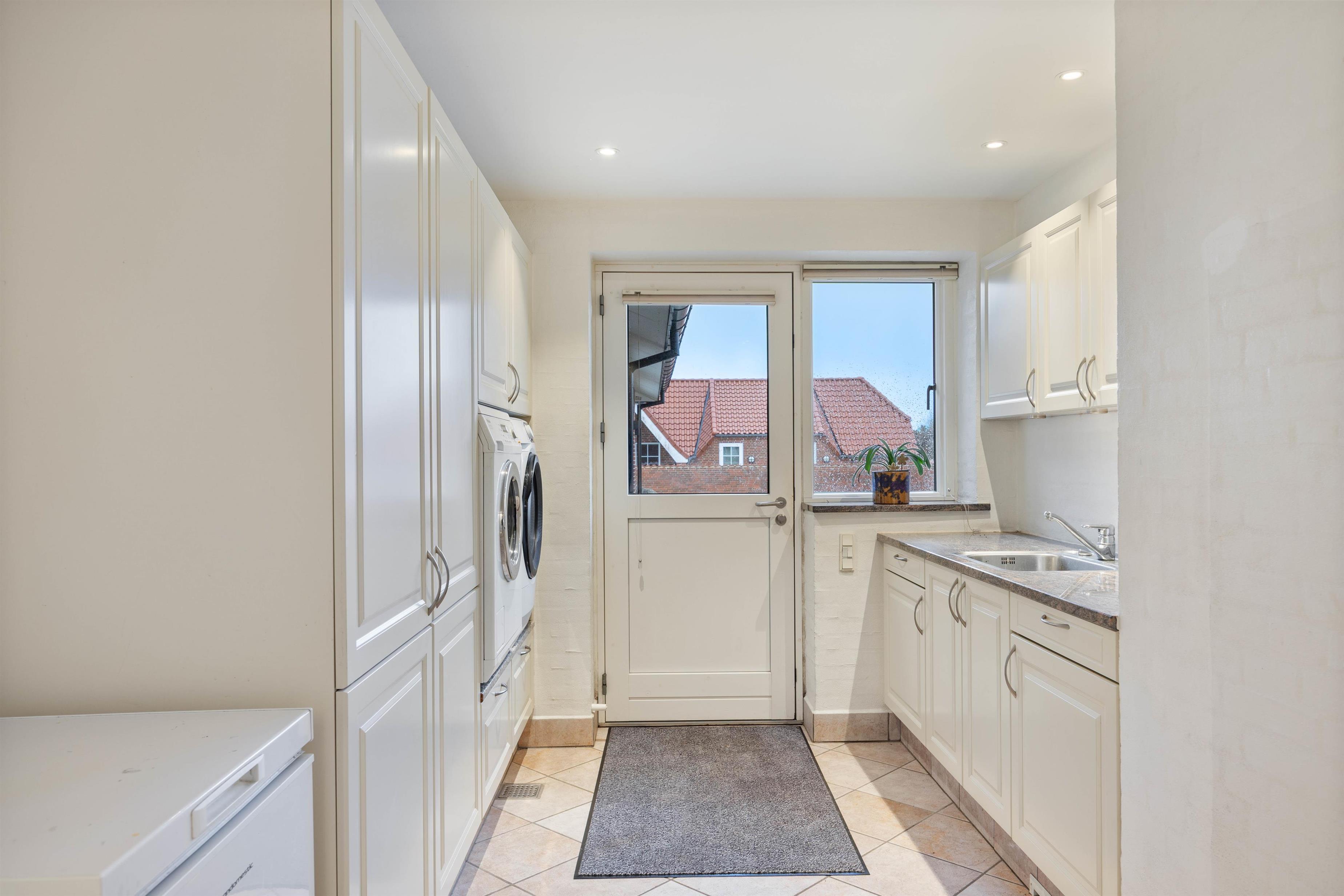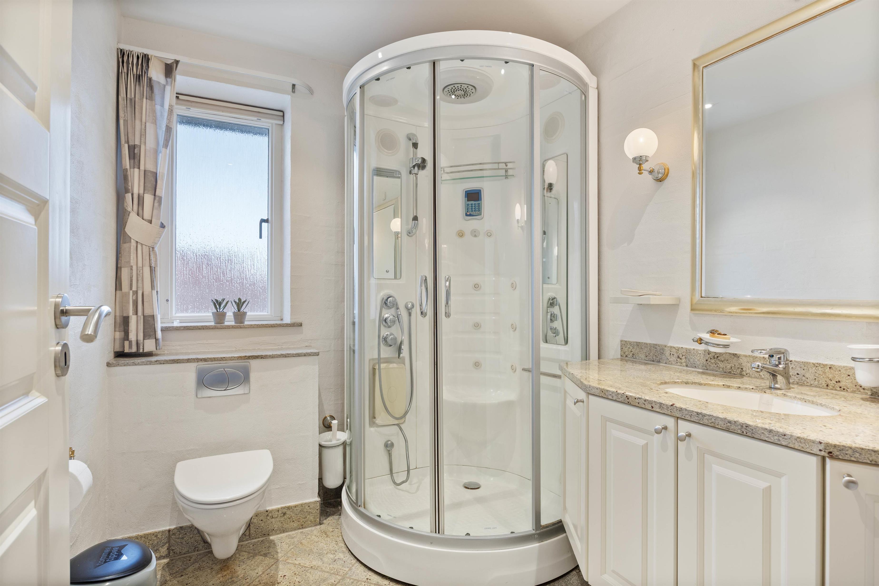 Sommerhuset er indrettet med 4 soverum, hvor I finder 3 dobbeltsenge og 2 enkeltsenge samt 2 badeværelser med gulvvarme. I entréen er der desuden en vaskemaskine og en tørretumbler, som I frit kan benytte jer af.