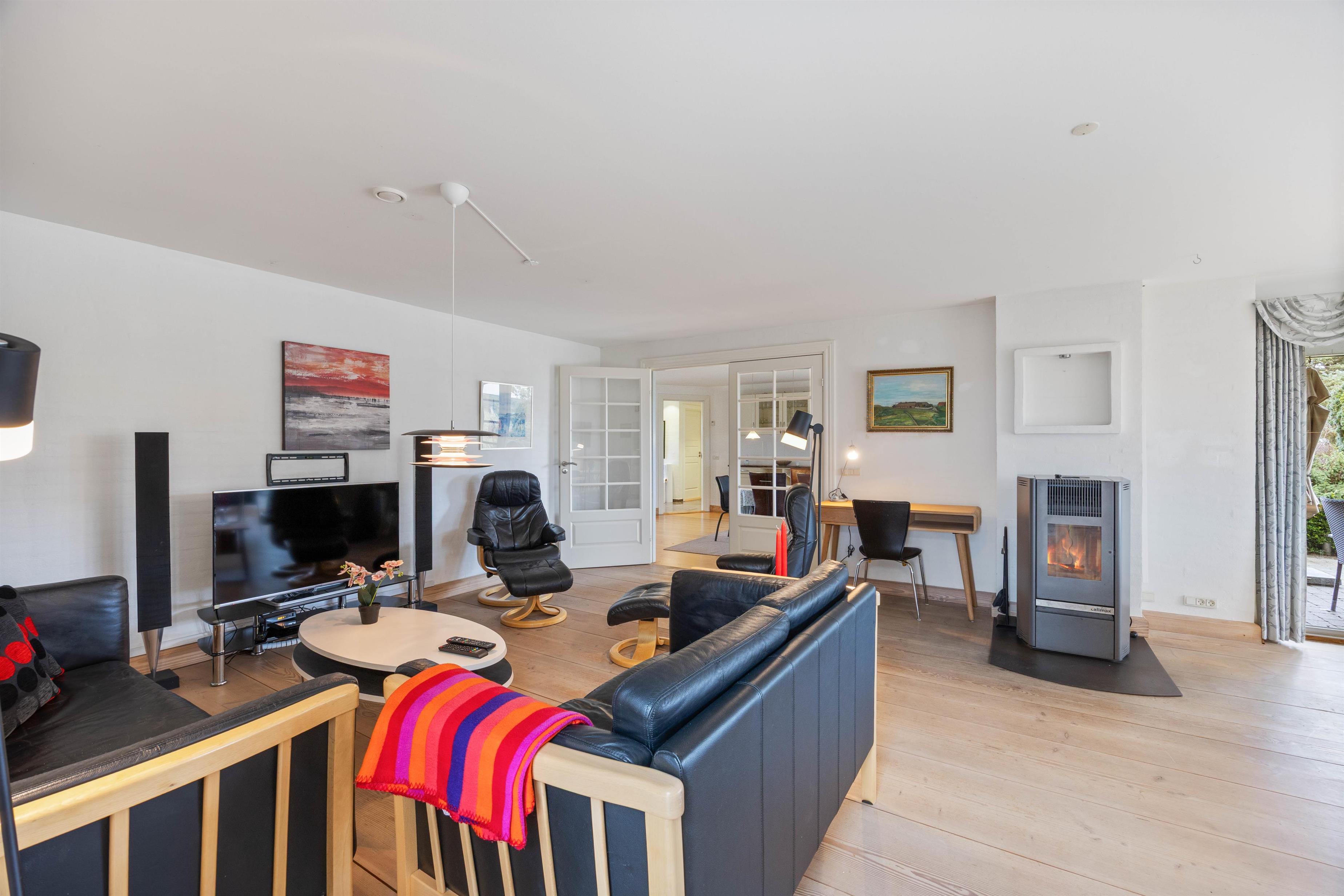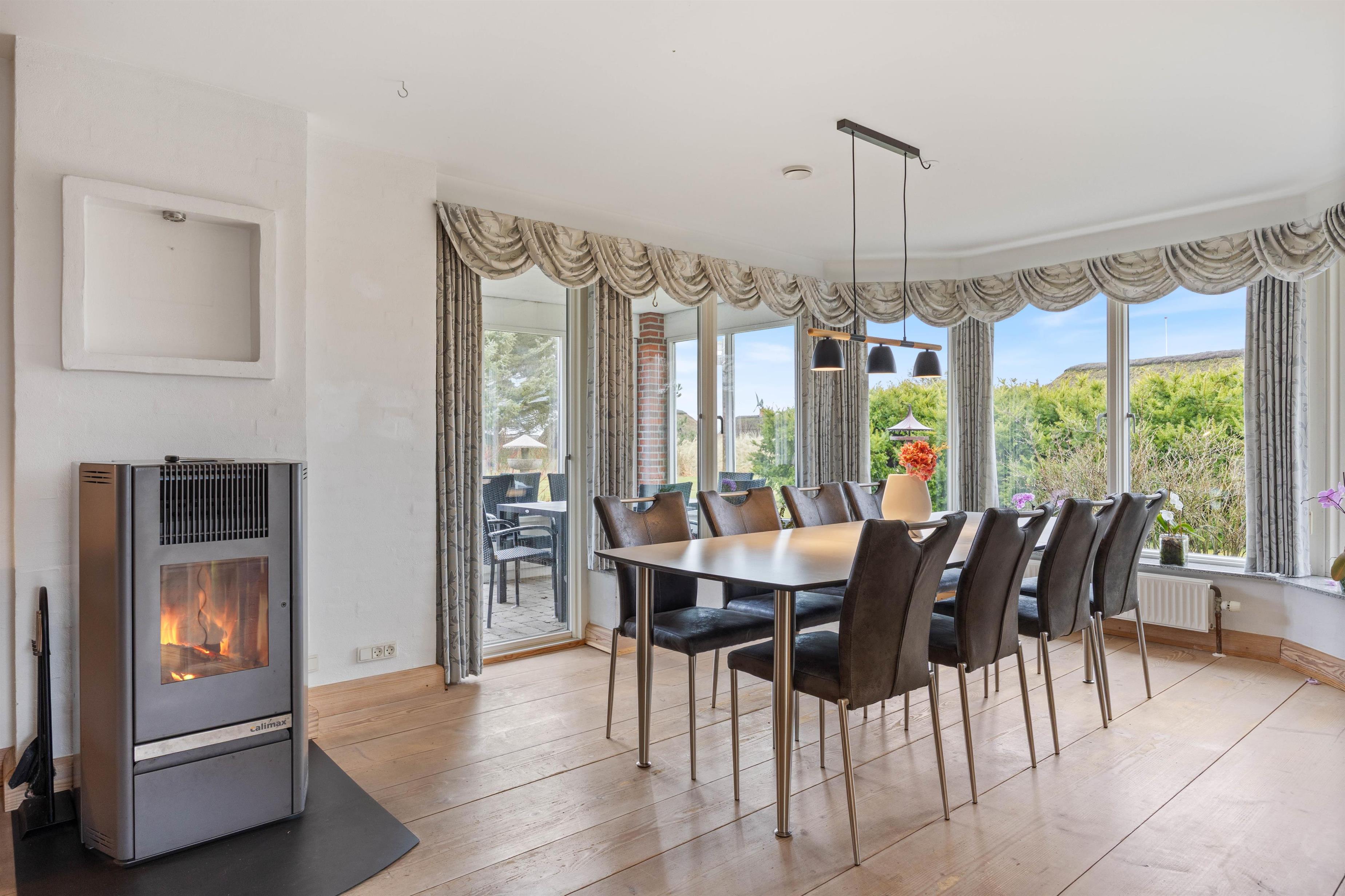 Stuen bliver hurtigt jeres naturlige samlingspunkt, når I vil slappe af efter en dag ved stranden eller samle alle til en hyggelig aften og nyde varmen fra pilleovnen. Der må kun bruges 6 mm træpiller, som kan købes på et byggemarked.