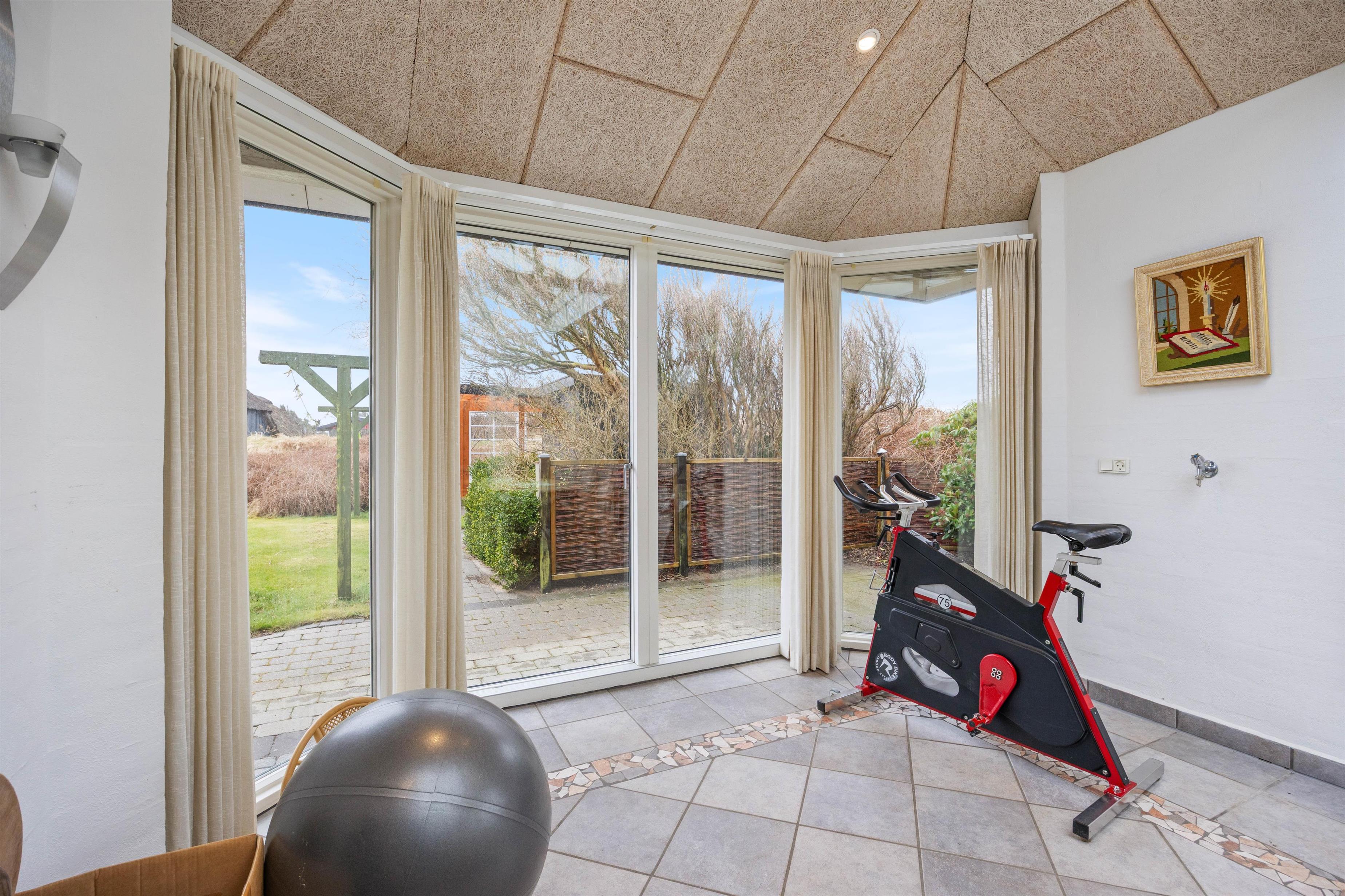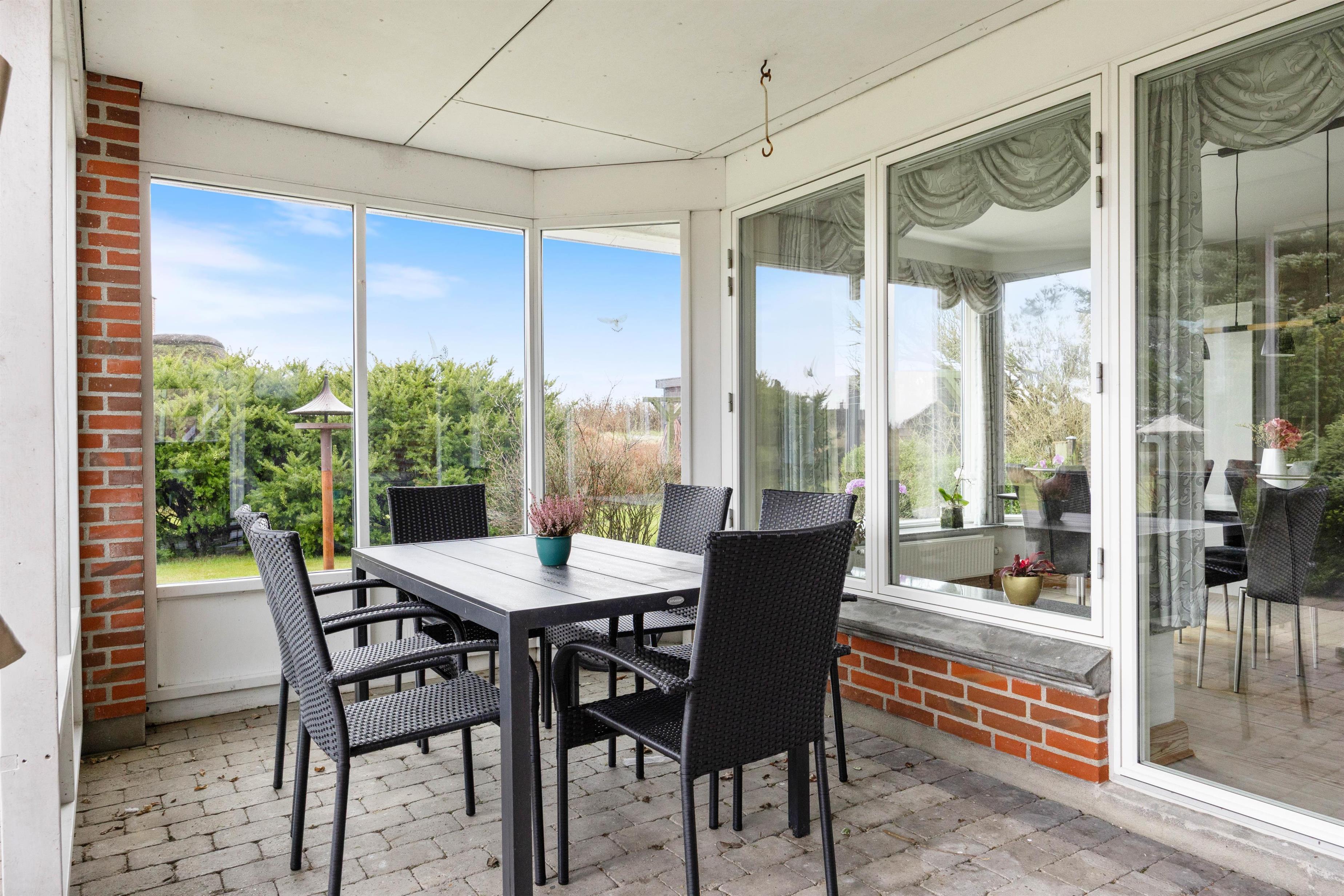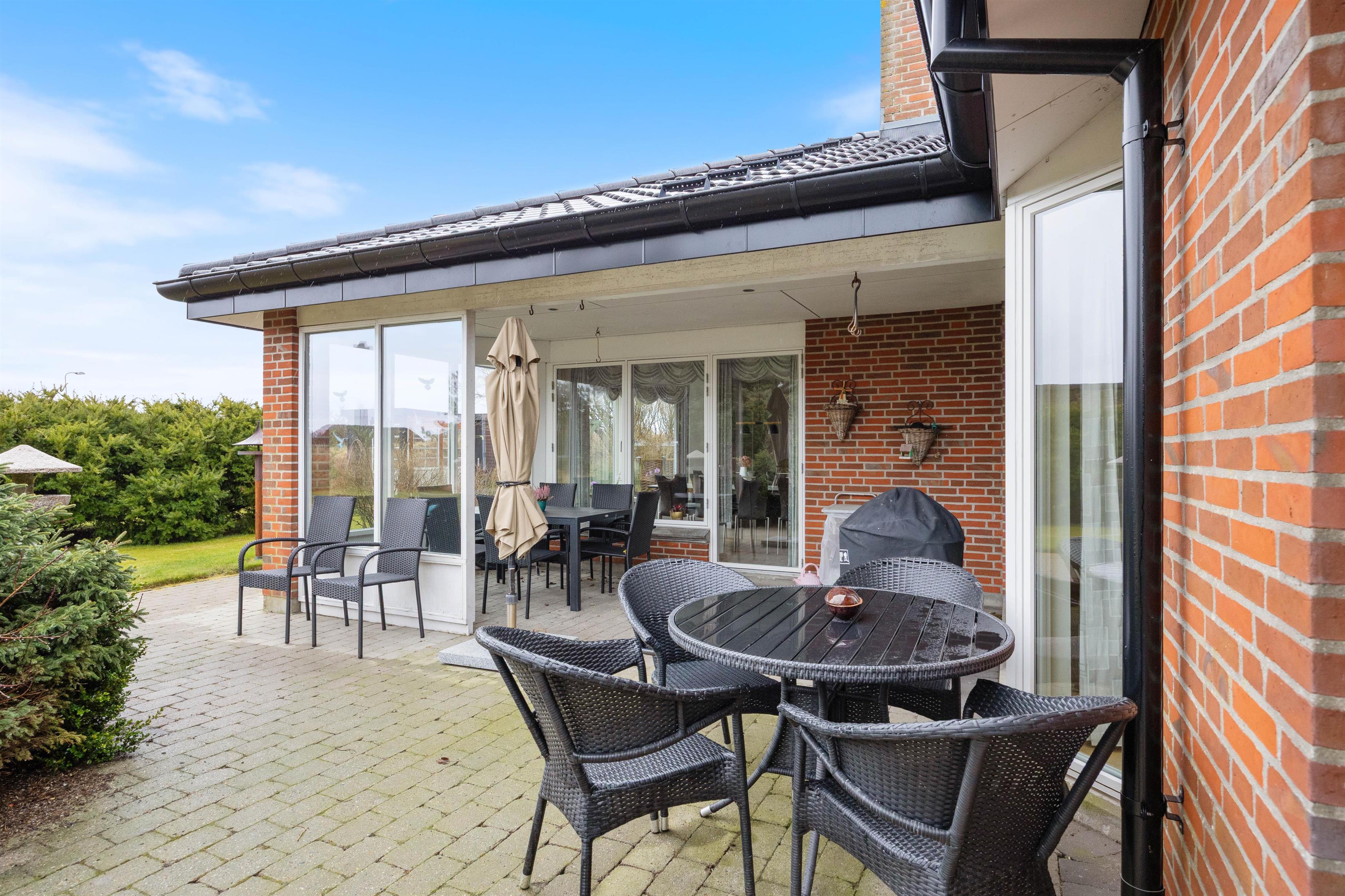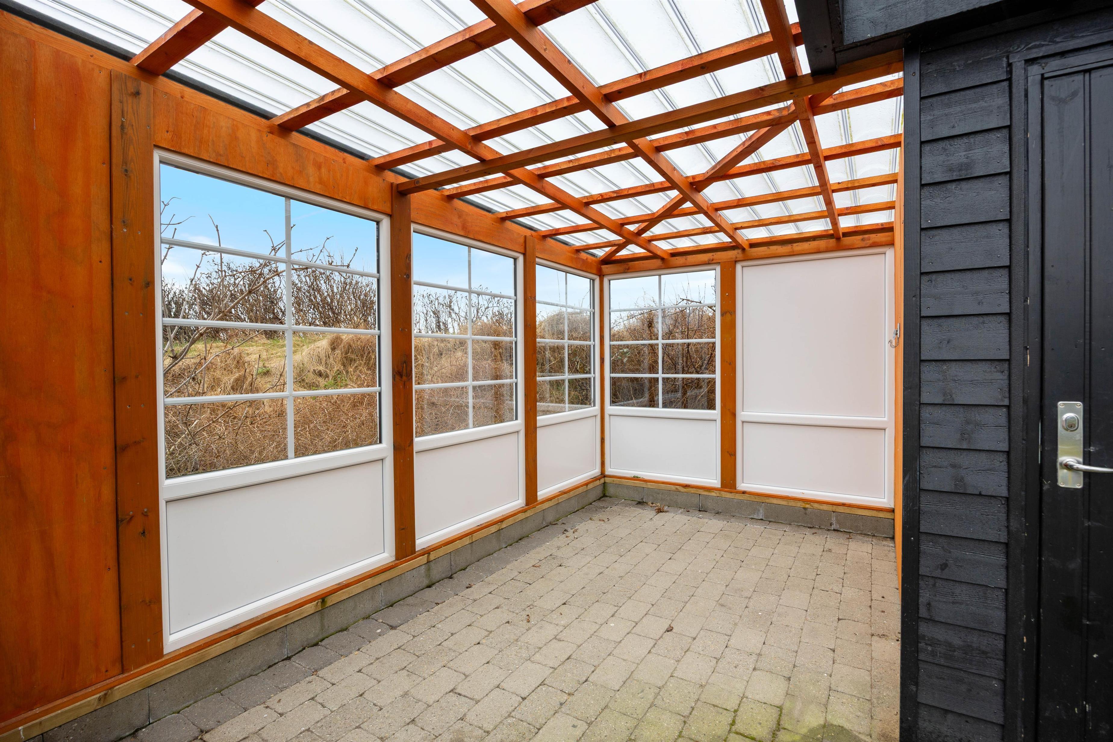 Sommerhuset har både afskærmet terrasse, lukket terrasse og overdækket terrasse, så I altid kan finde et sted med læ, skygge eller tag, alt efter vind og vejr. Udestuen forlænger sæsonen og giver en dejlig overgang mellem inde og ude, perfekt til morgenkaffe eller en rolig stund med en bog. Med grillen er det oplagt at samle jer til aftensmad under åben himmel, mens dagens planer bliver vendt, og feriestemningen får lov at fylde.