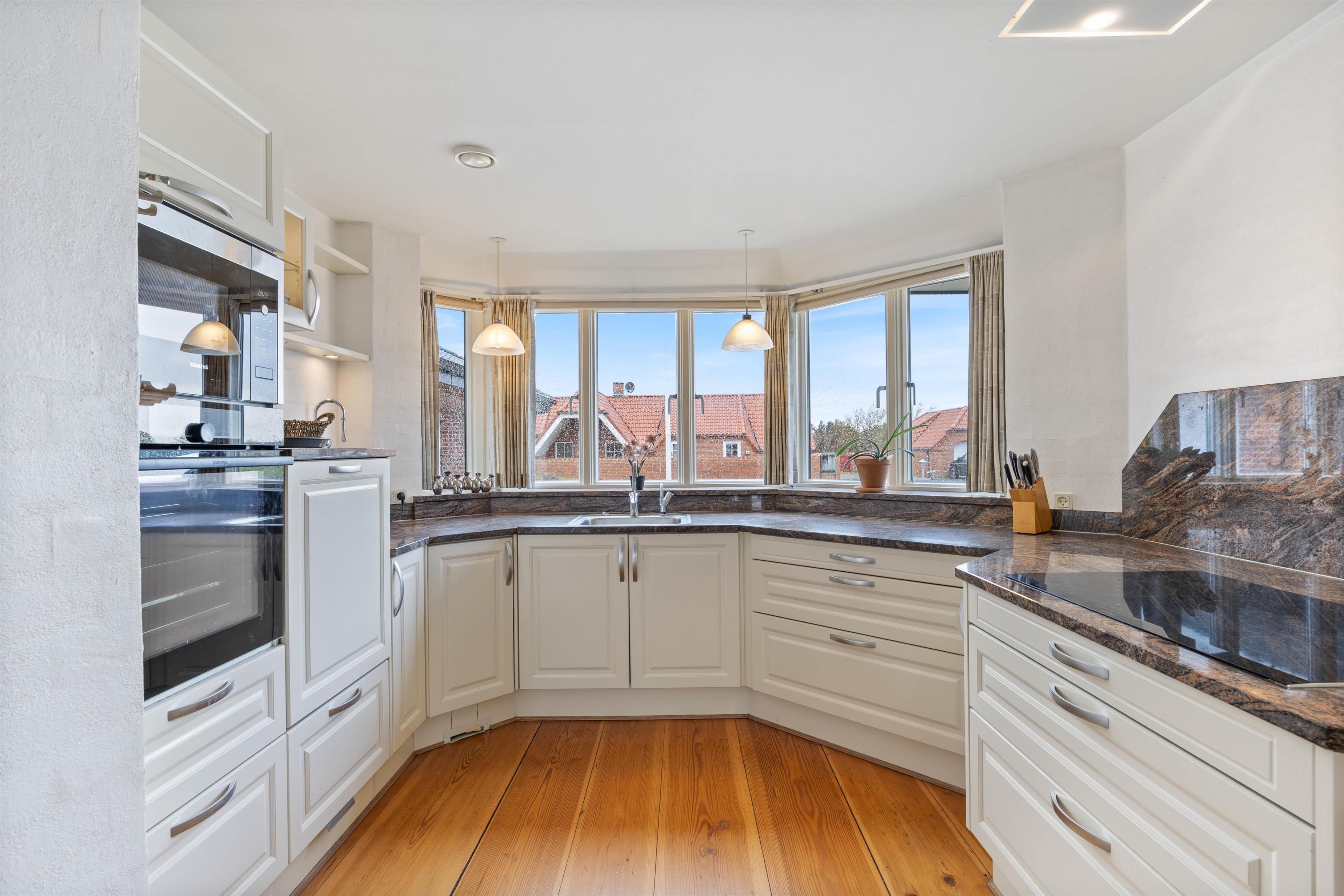 Køkkenet er indrettet, så det er let at lave mad til mange uden at det føles trangt. I får god hjælp af opvaskemaskinen, når der har været gang i gryderne, og den separate fryser på 40 liter gør det praktisk at have ekstra proviant, is og hurtige måltider klar. Køkkenet ligger oplagt til, at I kan være med i snakken, mens maden bliver lavet, så madlavningen bliver en del af feriehyggen.