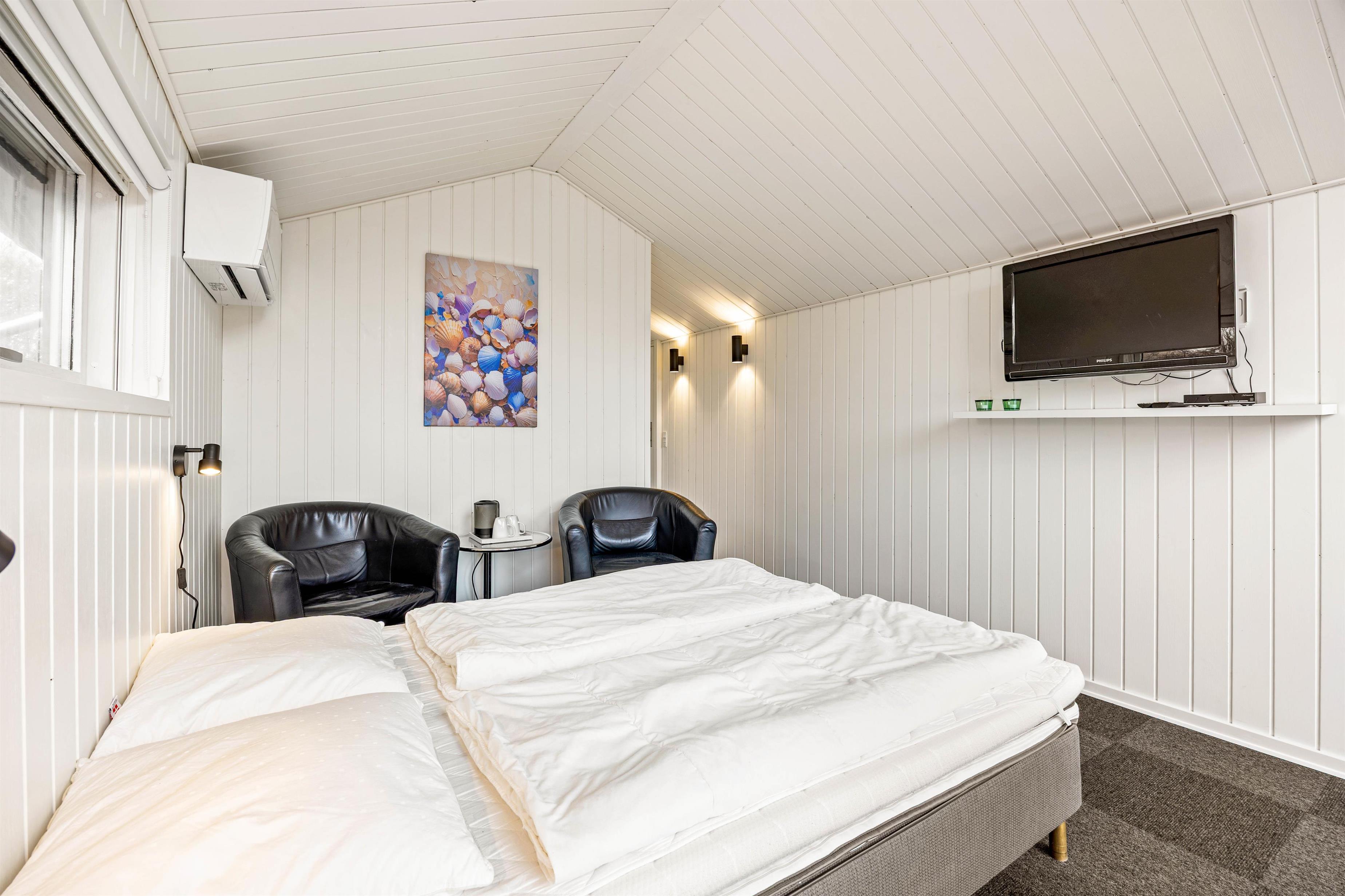 Sommerhuset har i alt 3 soveværelser, hvoraf 2 af dem er at finde i hovedhuset. Det tredje soveværelse er i det særskilte anneks, hvor der også er et badeværelse med gulvvarme, og her vil de større børn helt sikkert elske at bo og have deres egen afdeling under ferien. Den energivenlige varmepumpe sørger for et behageligt indeklima.