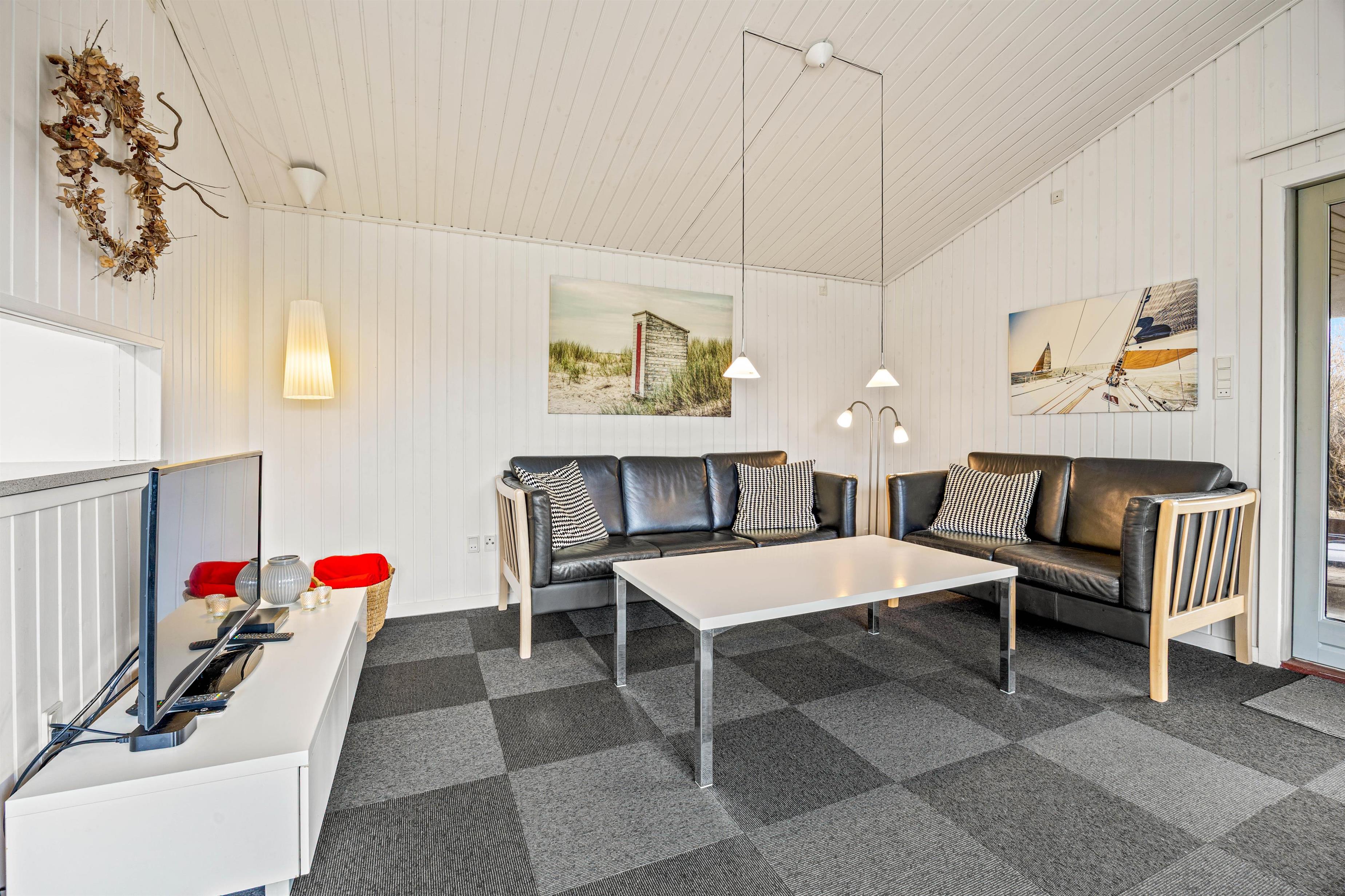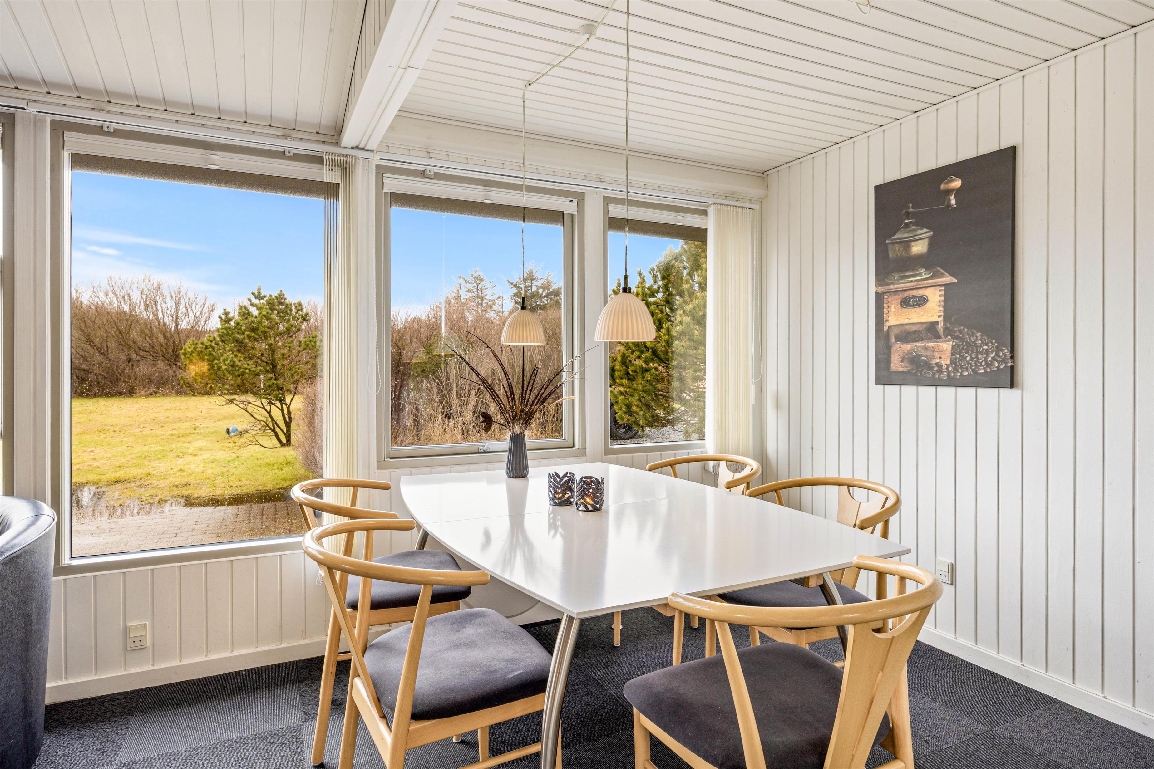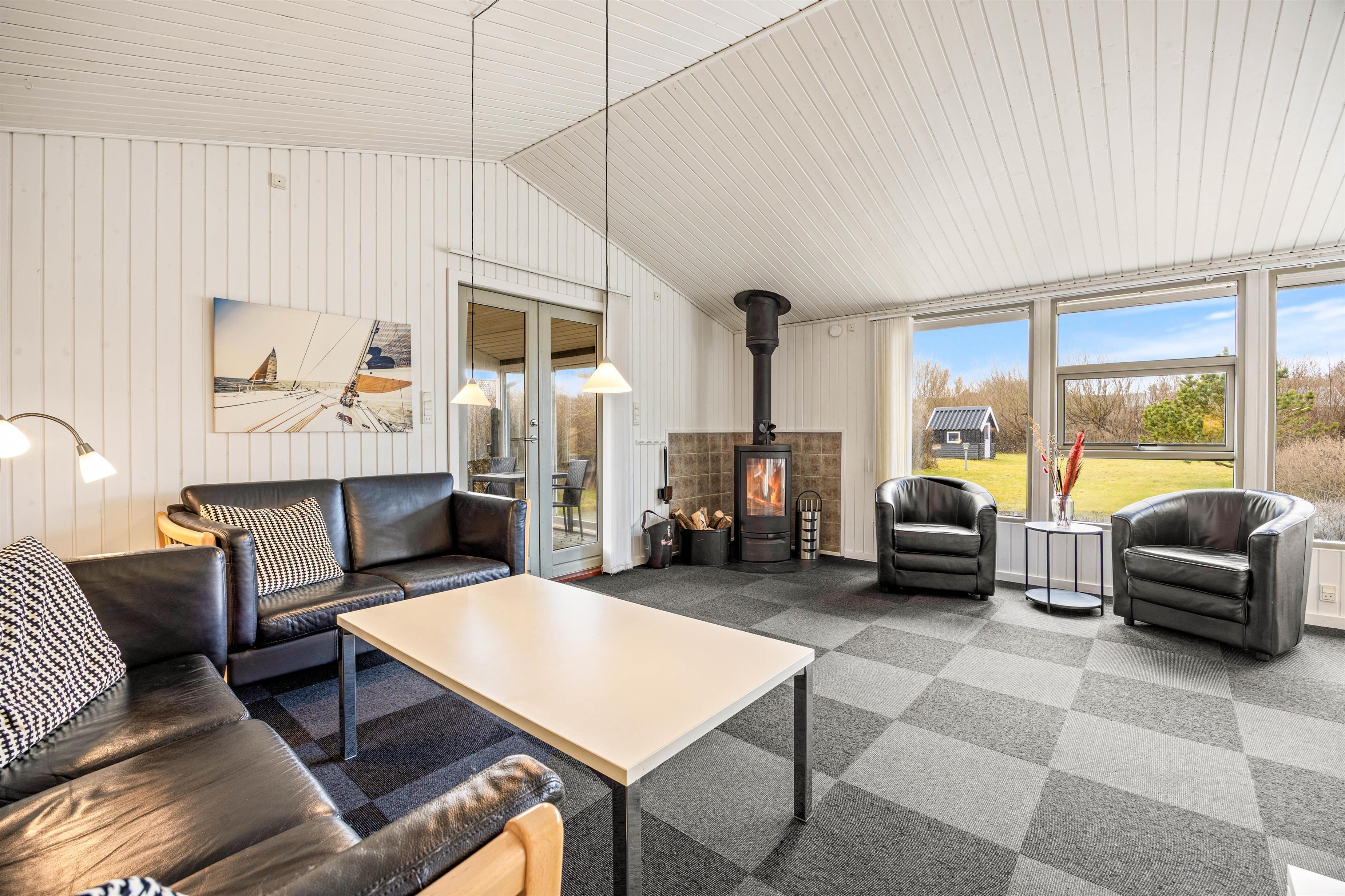 Sommerhuset på Nordsøvej 201 har en hyggelig indretning med store vinduespartier, der lukker masser af lys ind og skaber en dejlig indbydende atmosfære og giver en skøn udsigt til haven og den natur, der omgiver sommerhuset.