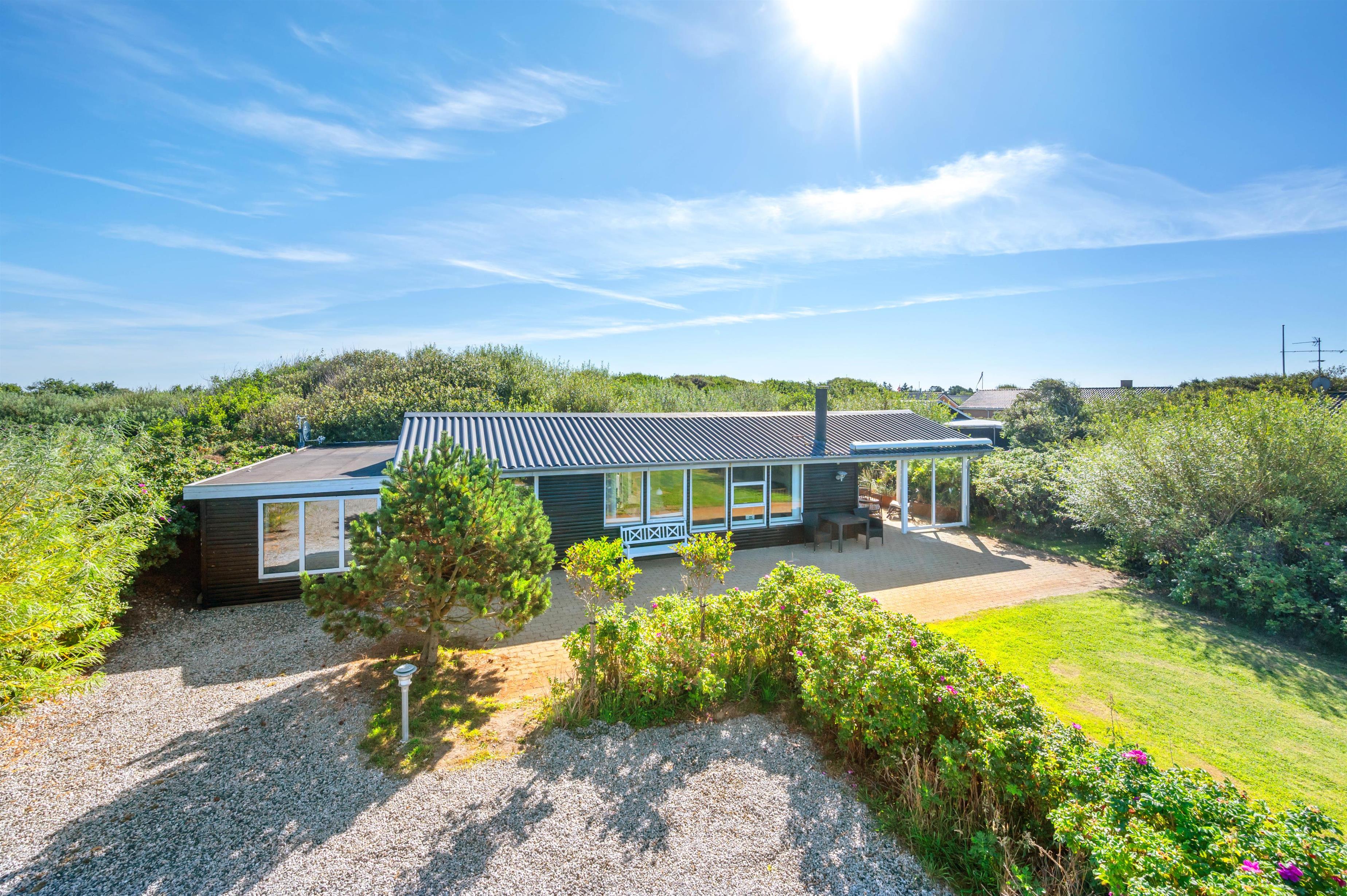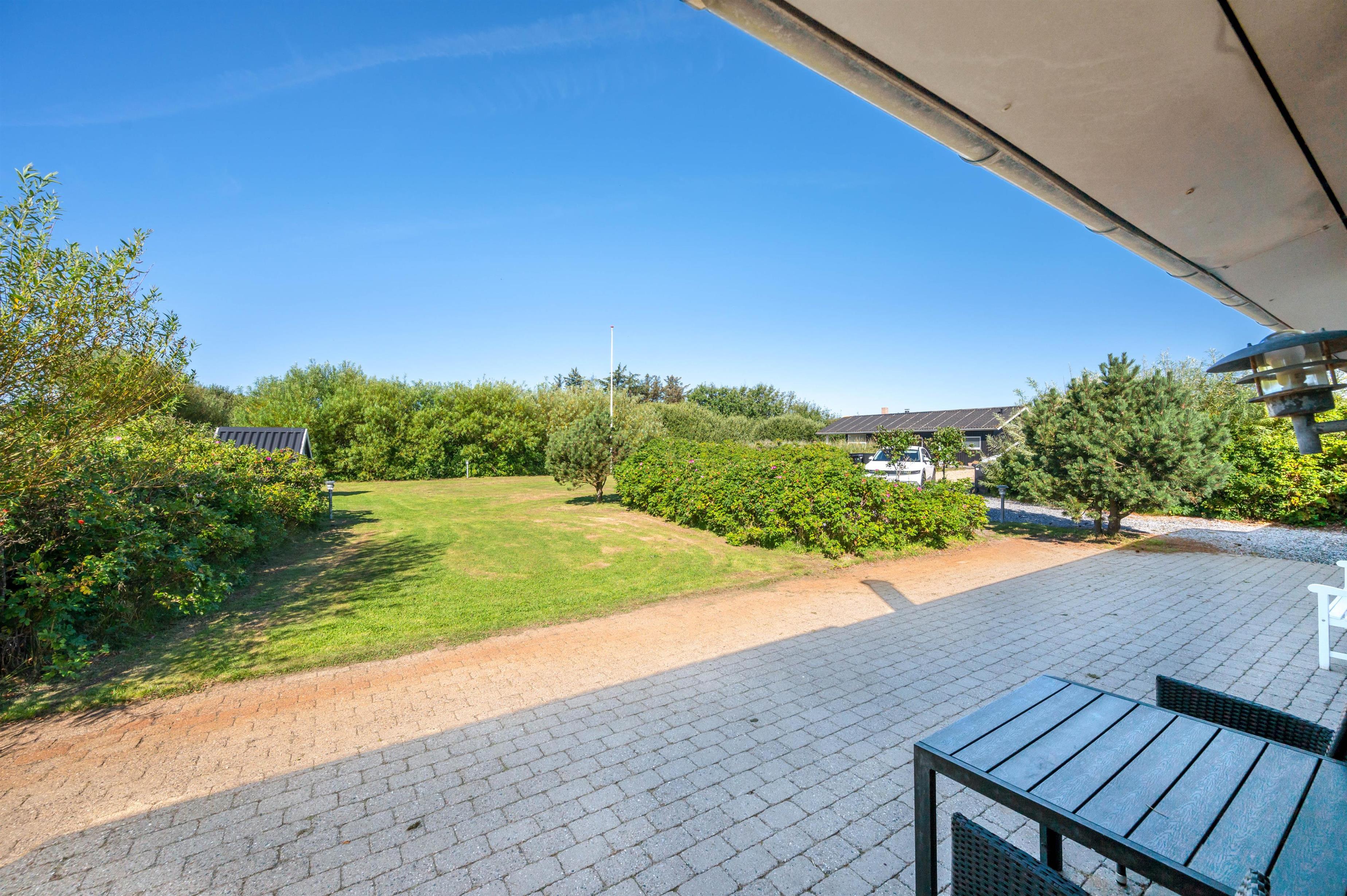 Fra terrassen har I udsigt til den store have, der er omgivet af træer og buske, der giver jer privatliv under ferien. I haven har I masser af plads, som især børn og hunde vil elske. Også legehuset vil helt sikkert være et stort hit hos de mindste.