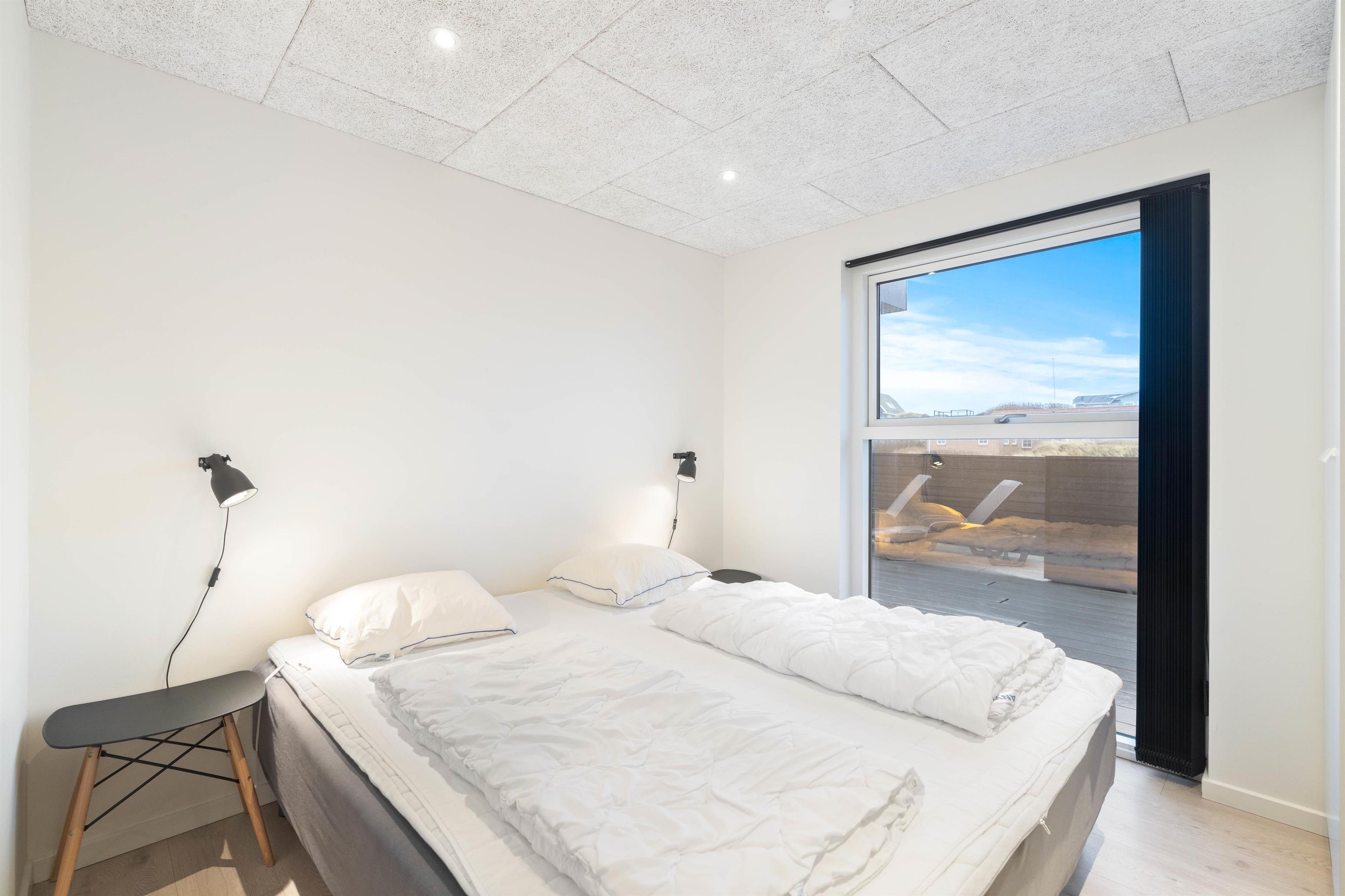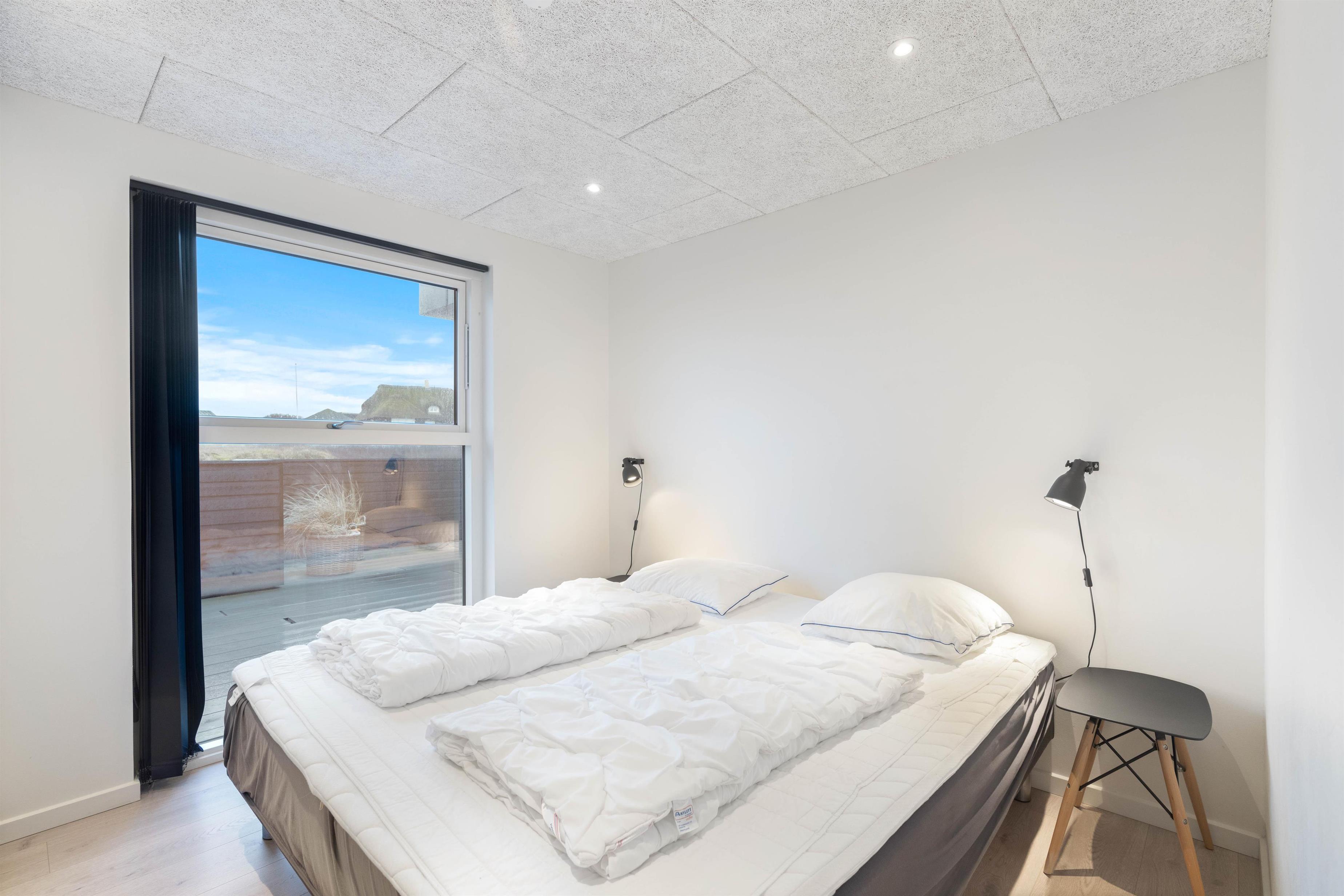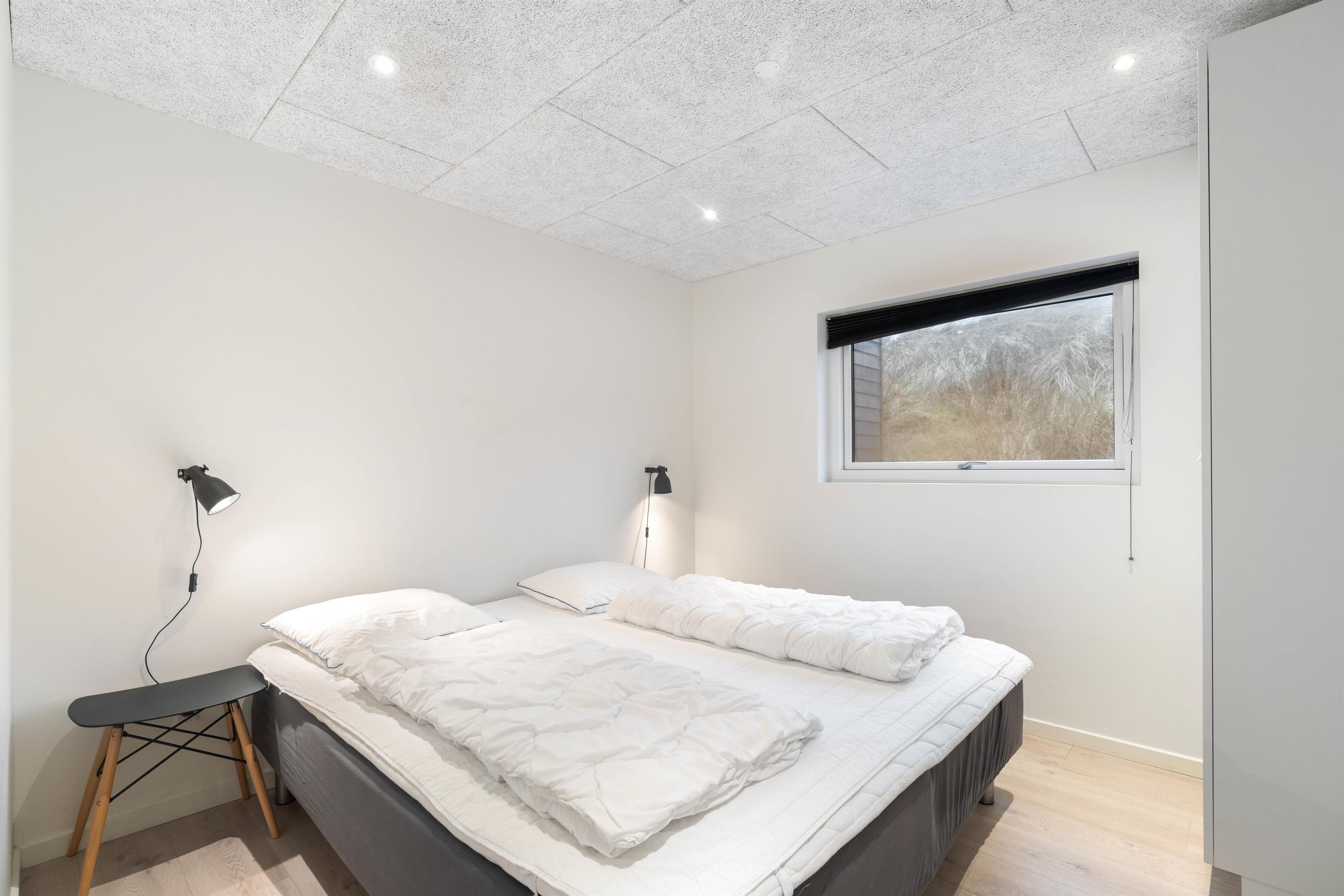 Dette sommerhus har plads til 8 personer fordelt på fire store og rummelige soveværelser - alle indrettet med en dobbeltseng. Sommerhusets stue og køkkenalrum er helt i særklasse, da det smukke lysindfald fra de store vinduespartier og de lækre materialer tilsammen skaber rammerne for en ferie, hvor der ikke er gået på kompromis med noget.