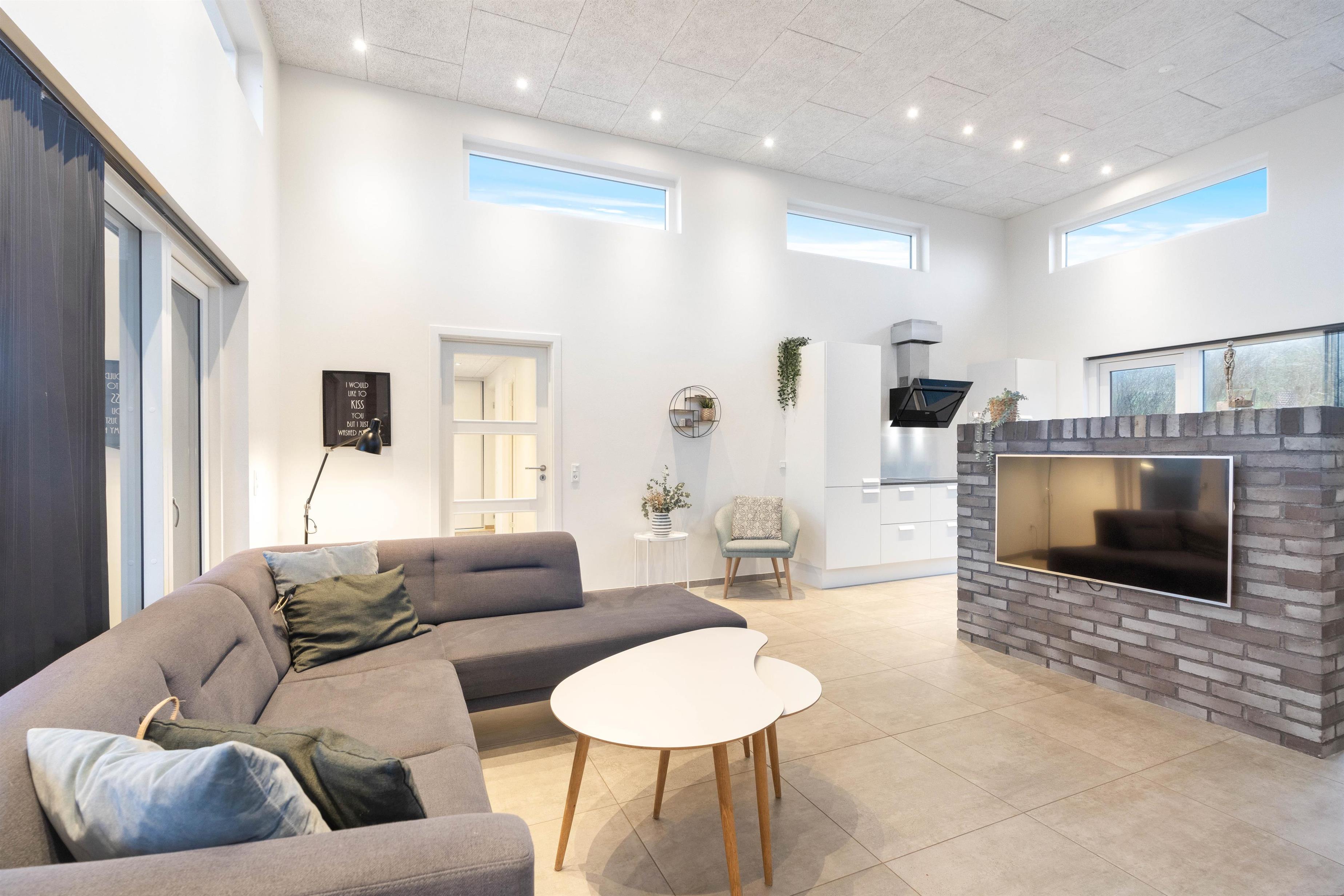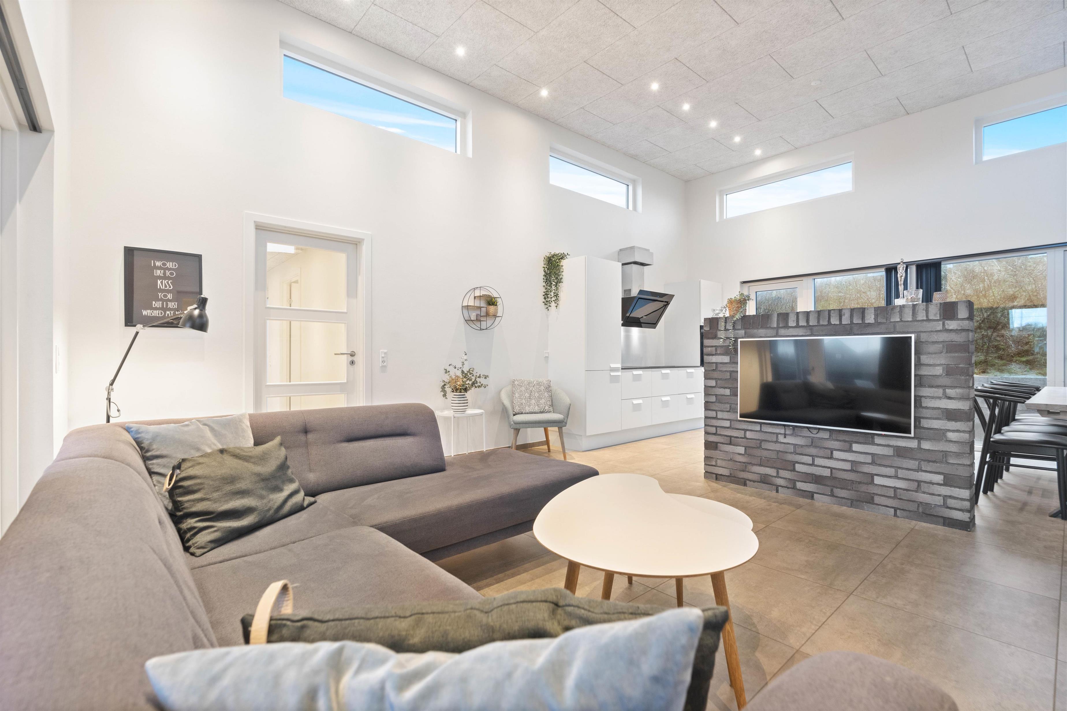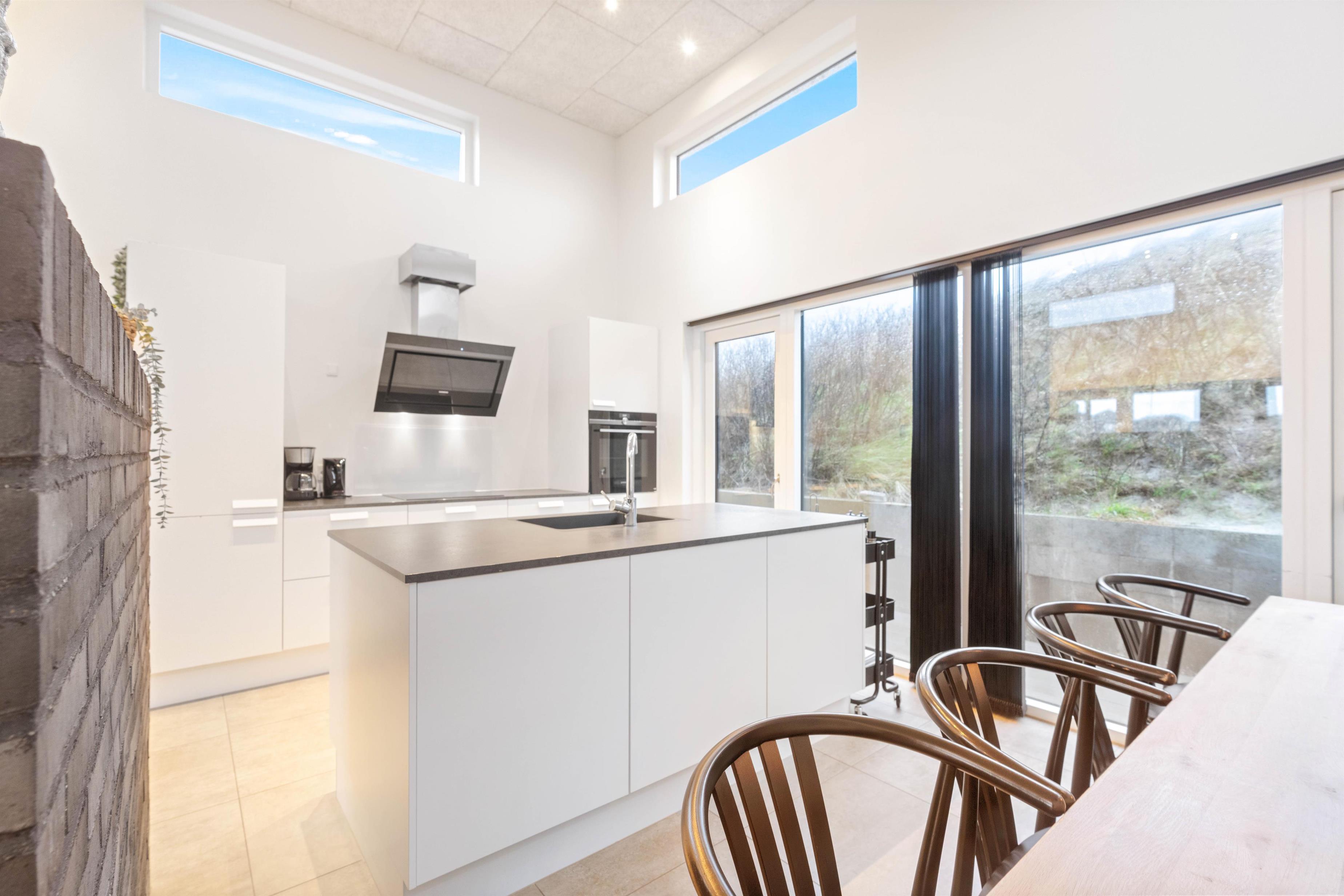 Dette sommerhus har plads til 8 personer fordelt på fire store og rummelige soveværelser - alle indrettet med en dobbeltseng. Sommerhusets stue og køkkenalrum er helt i særklasse, da det smukke lysindfald fra de store vinduespartier og de lækre materialer tilsammen skaber rammerne for en ferie, hvor der ikke er gået på kompromis med noget.