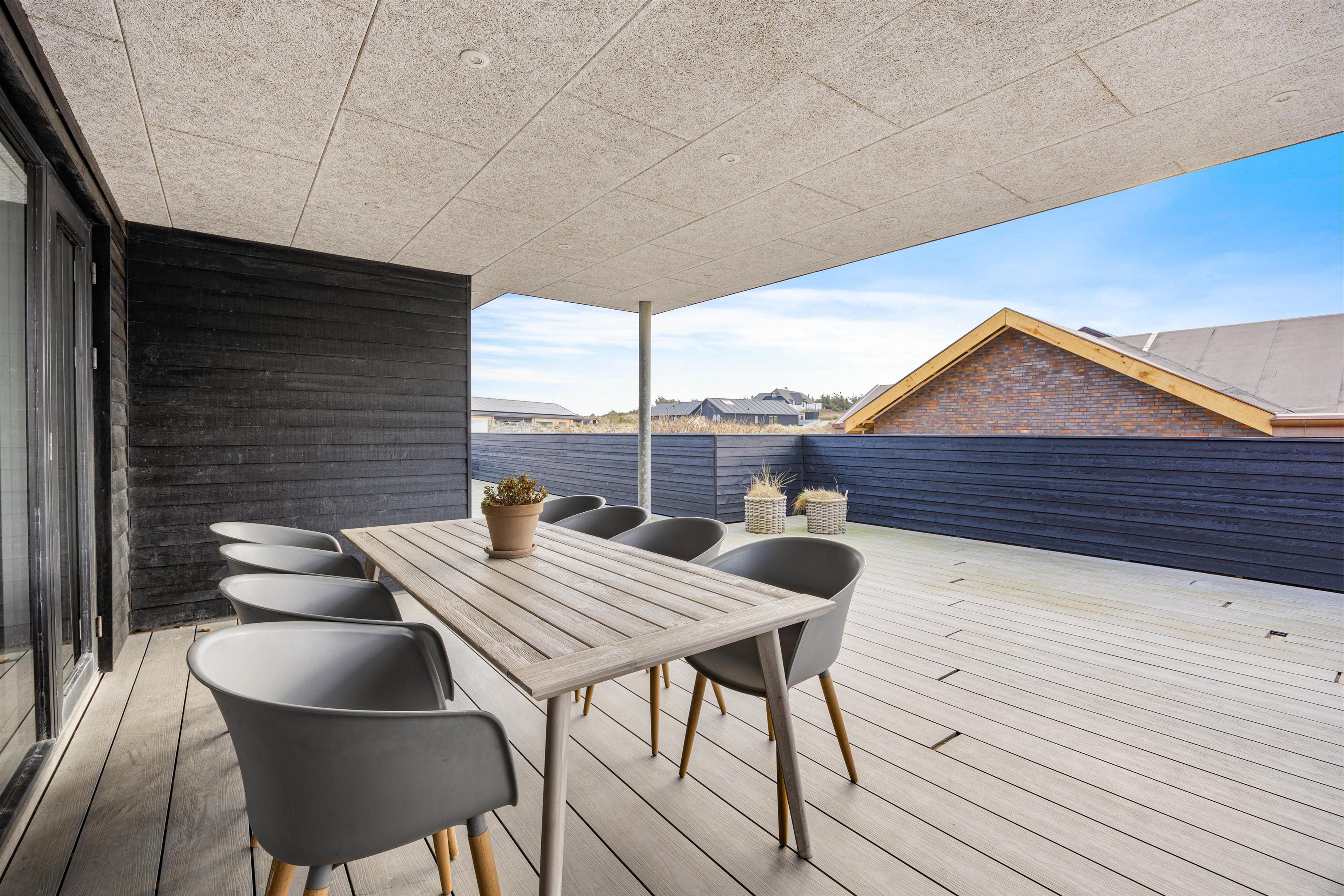 Derudover har sommerhuset en kæmpe terrasse, som er delvist lukket af, så den skærmer for den værste vind. Terrassen er også delvist overdækket, hvis I ønsker skygge fra solen. I har derfor god plads på det store terrasseområde. Til sommerhuset er der selvfølgelig diverse havemøbler, liggestole og en grill, som er oplagt til sommeraftnerne.