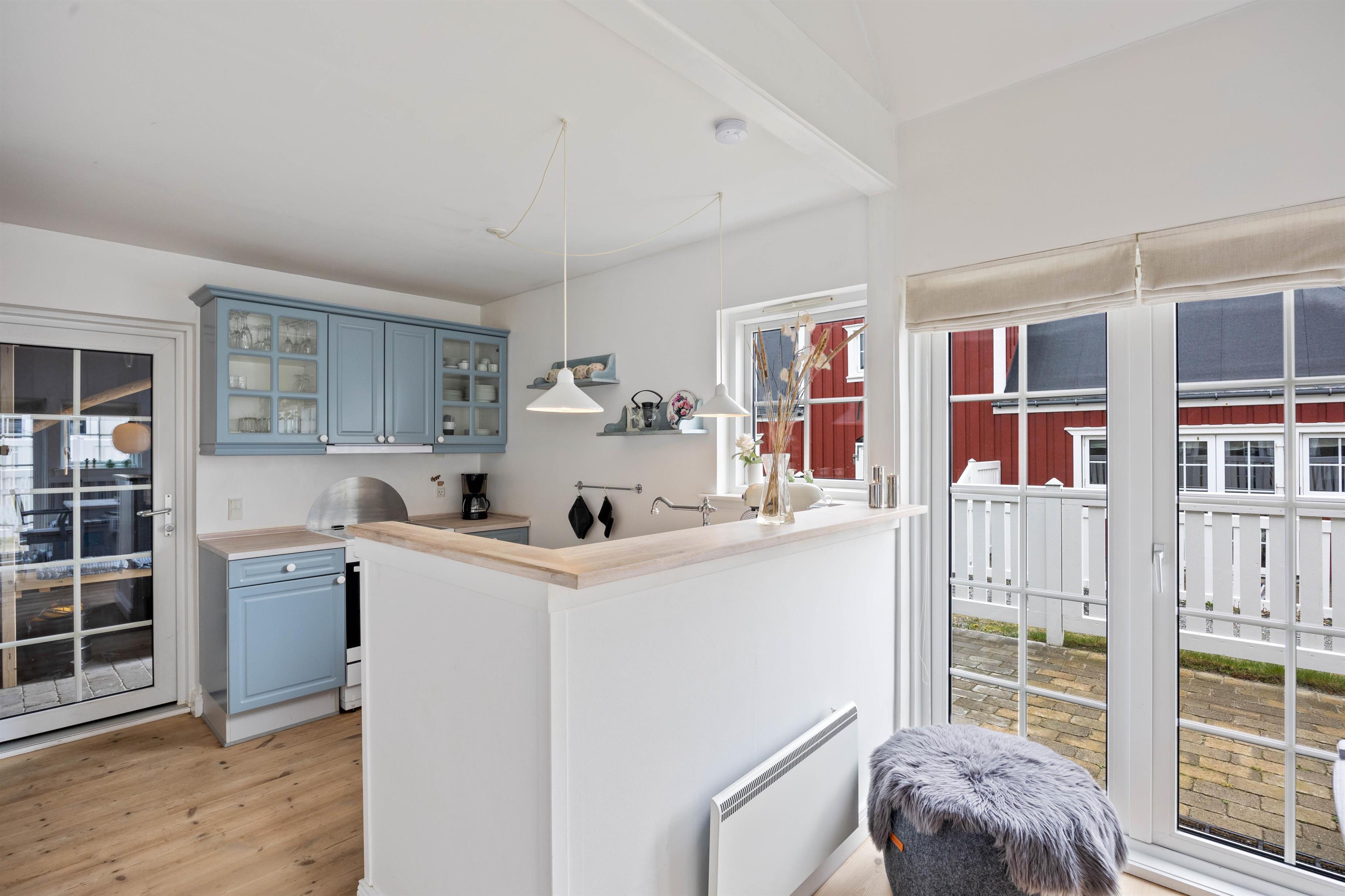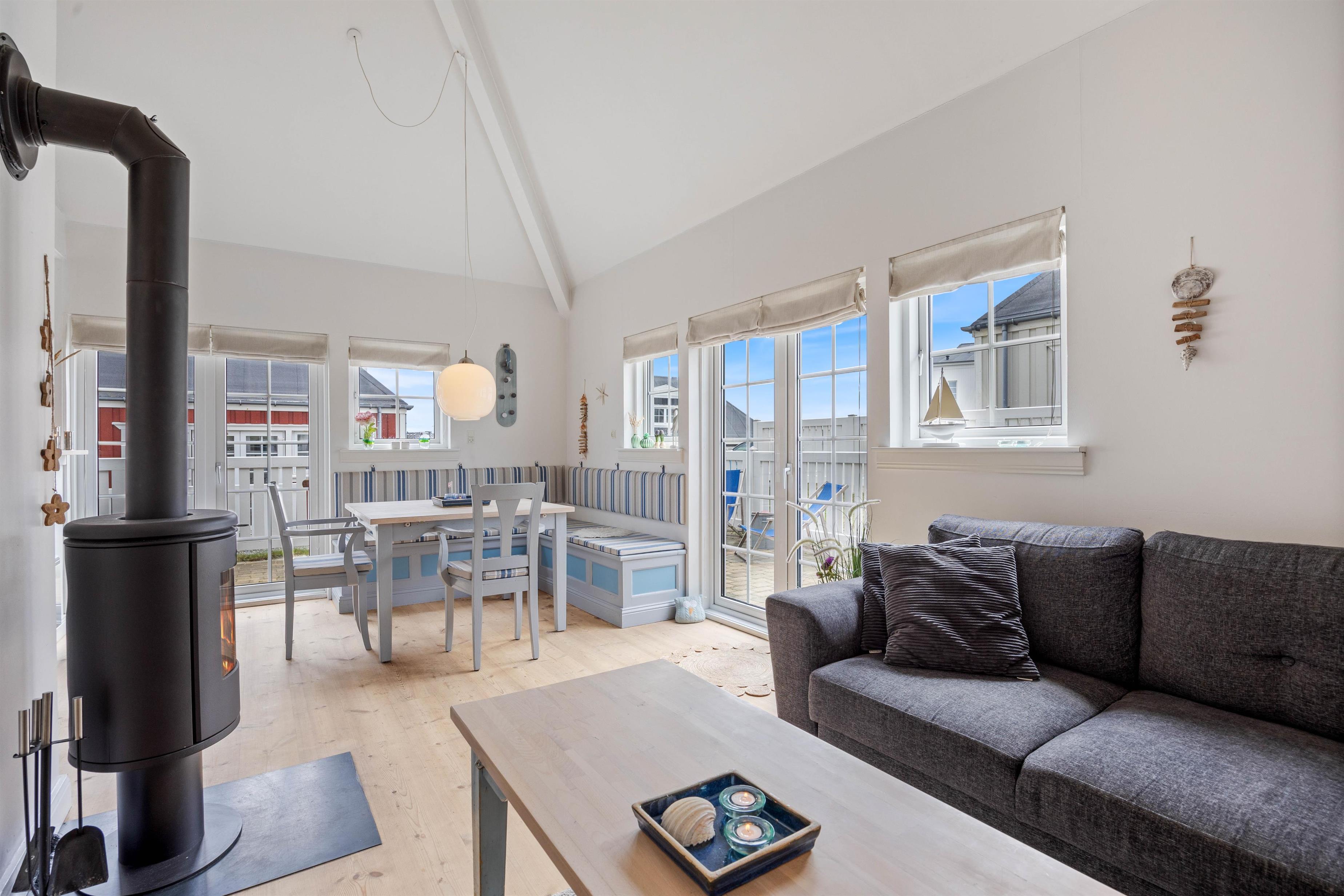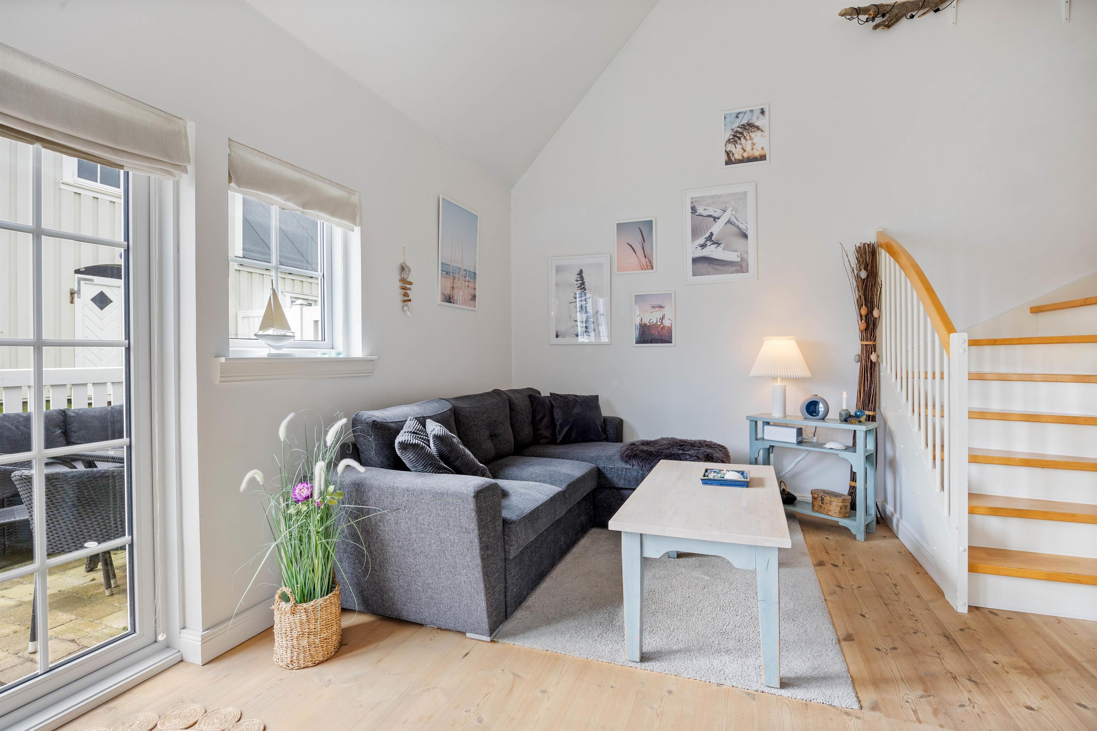 Fra stuen har I adgang til jeres afskærmede og lukkede terrasse, hvor I kan sætte jer godt til rette i ferielejlighedens havemøbler og nyde vejret, når det er til det. Tænd op i grillen på en varm sommeraften og nyd et lækkert måltid sammen med hele familien.