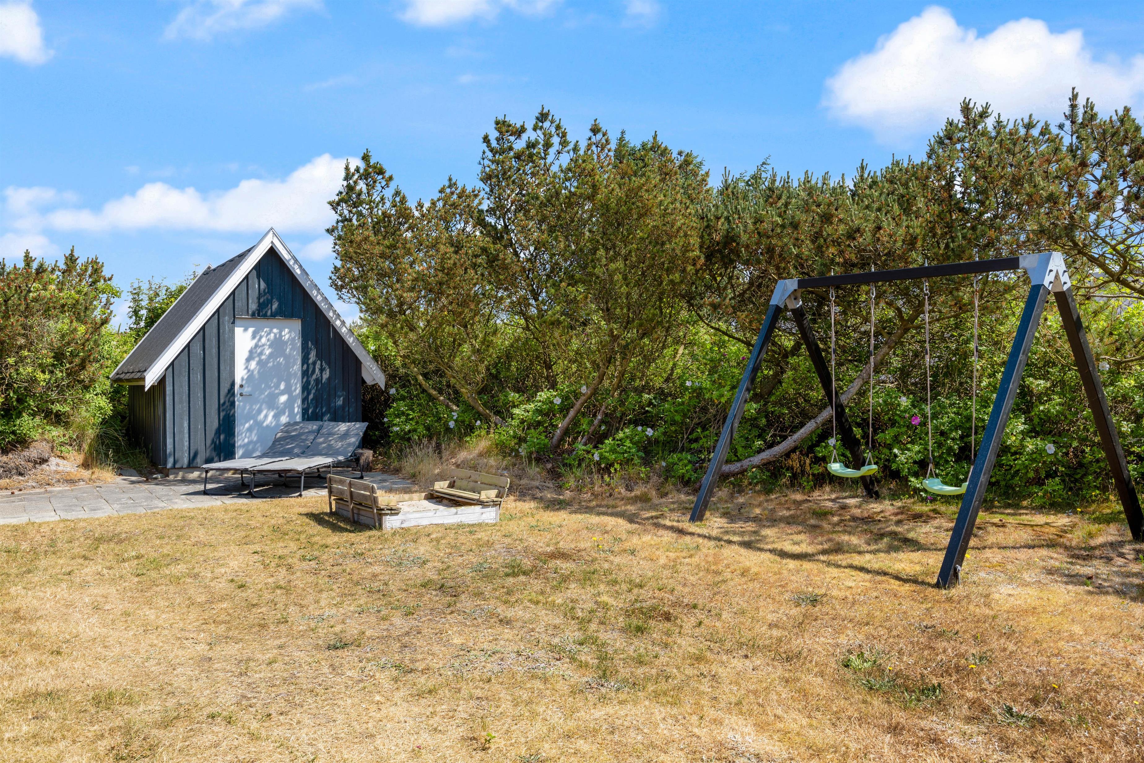 Feriens varme og solrige dage skal I naturligvis tilbringe i det fri. Og dét har I gode muligheder for, når I holder ferie i sommerhuset på Krattet 16. Feriehuset har en dejlig have, hvor der er masser af plads til både store og små. Til de yngste er der sandkasse og gyngestativ, så de kan gynge og bygge imponerende sandslotte dagen lang.