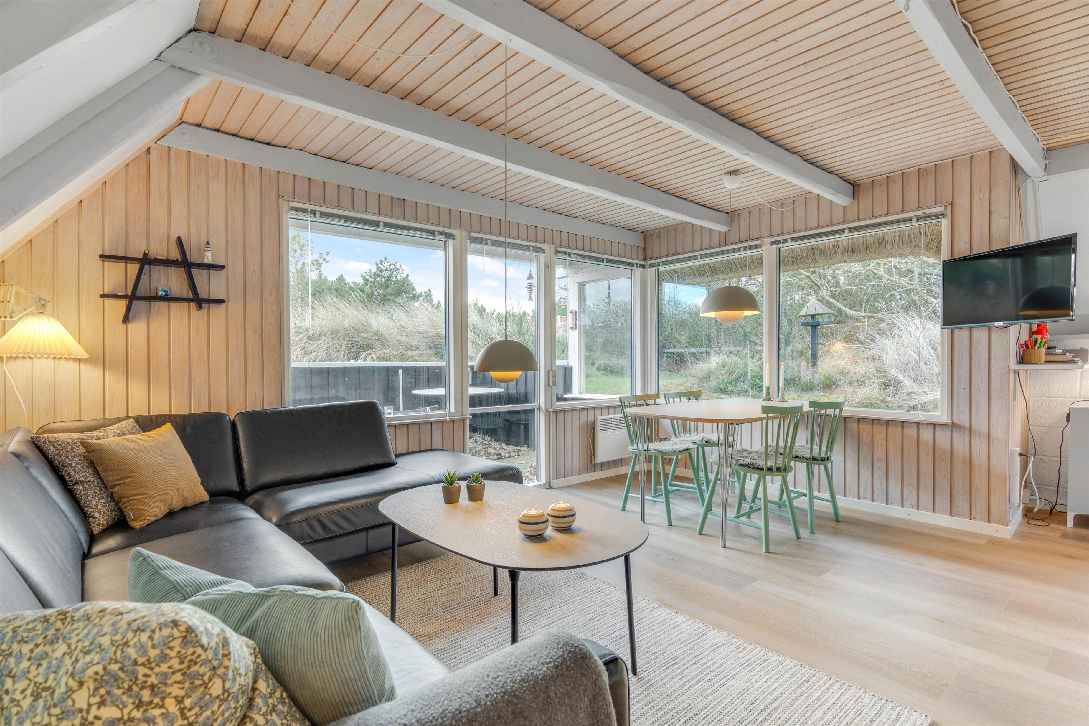 Opholdsstuen ligger i åben forbindelse med køkkenet. I køkkenet har I alt, I har brug for til jeres mange kokkereringer på ferien. Opvasken skal I ikke bekymre jer om, for den klarer opvaskemaskinen. Der er desuden gratis fibernet så I er sikret en hurtig forbindelse på sommerferien.