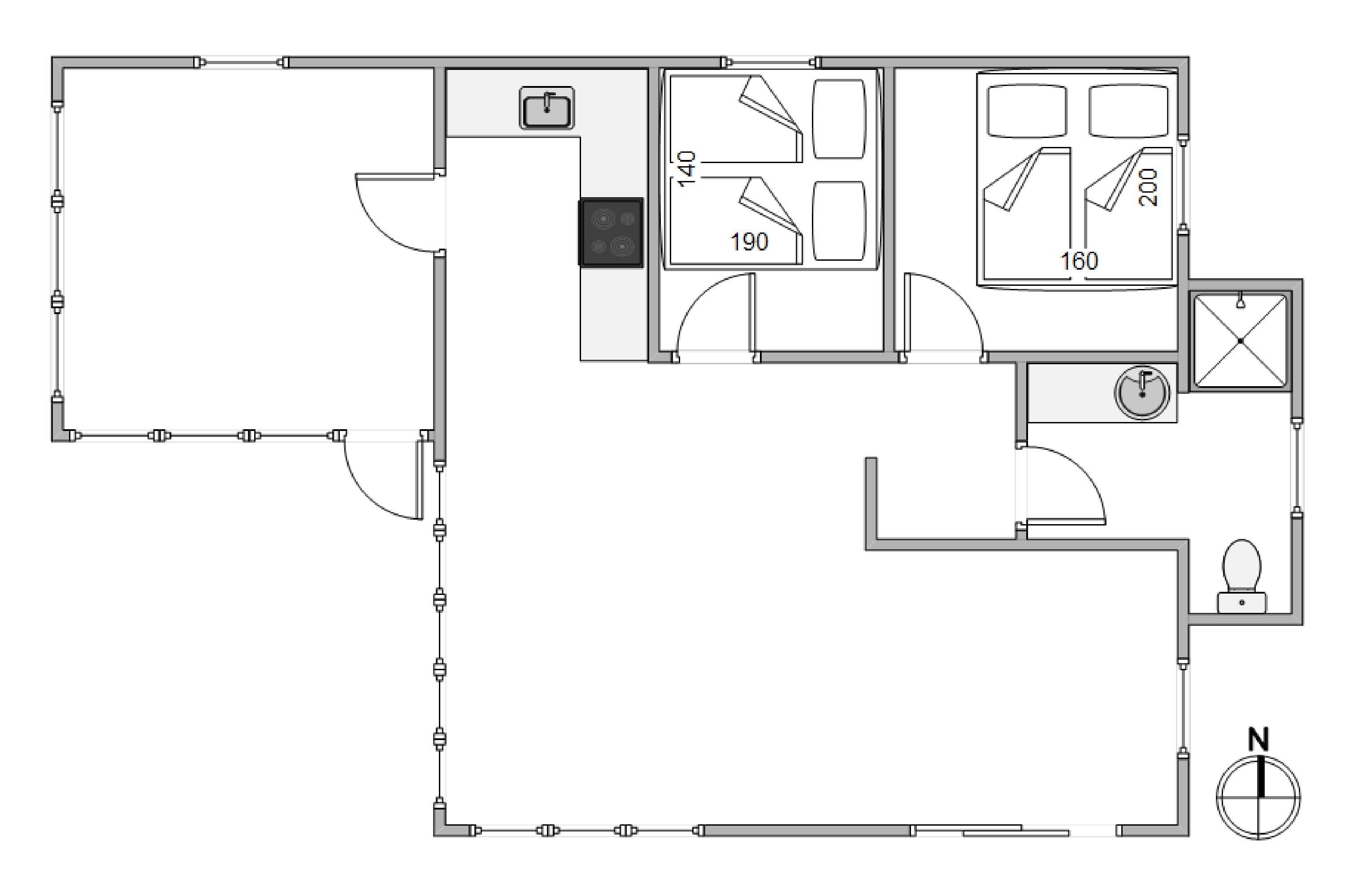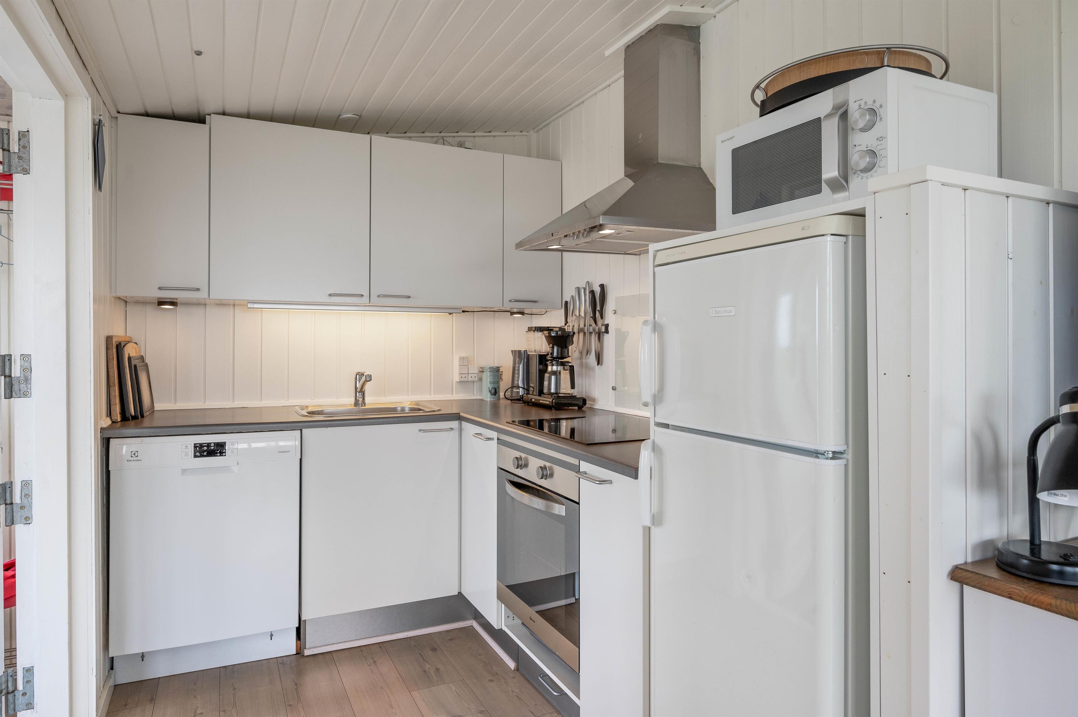 De mange vinduer slipper masser af sollys ind og giver jer desuden muligheden for at betragte den smukke udsigt hele døgnet rundt, fra sofaen såvel som under madlavningen, ligesom den fine udestue indbyder til mange hyggelige stunder med de nærmeste. To lysmalede dobbeltværelser, den ene med en ekstra køjeseng garanterer god nattesøvn, - den ene dobbeltseng er med en længde på 190 cm. måske ikke egnet til basketballspillere og andre lange personligheder.