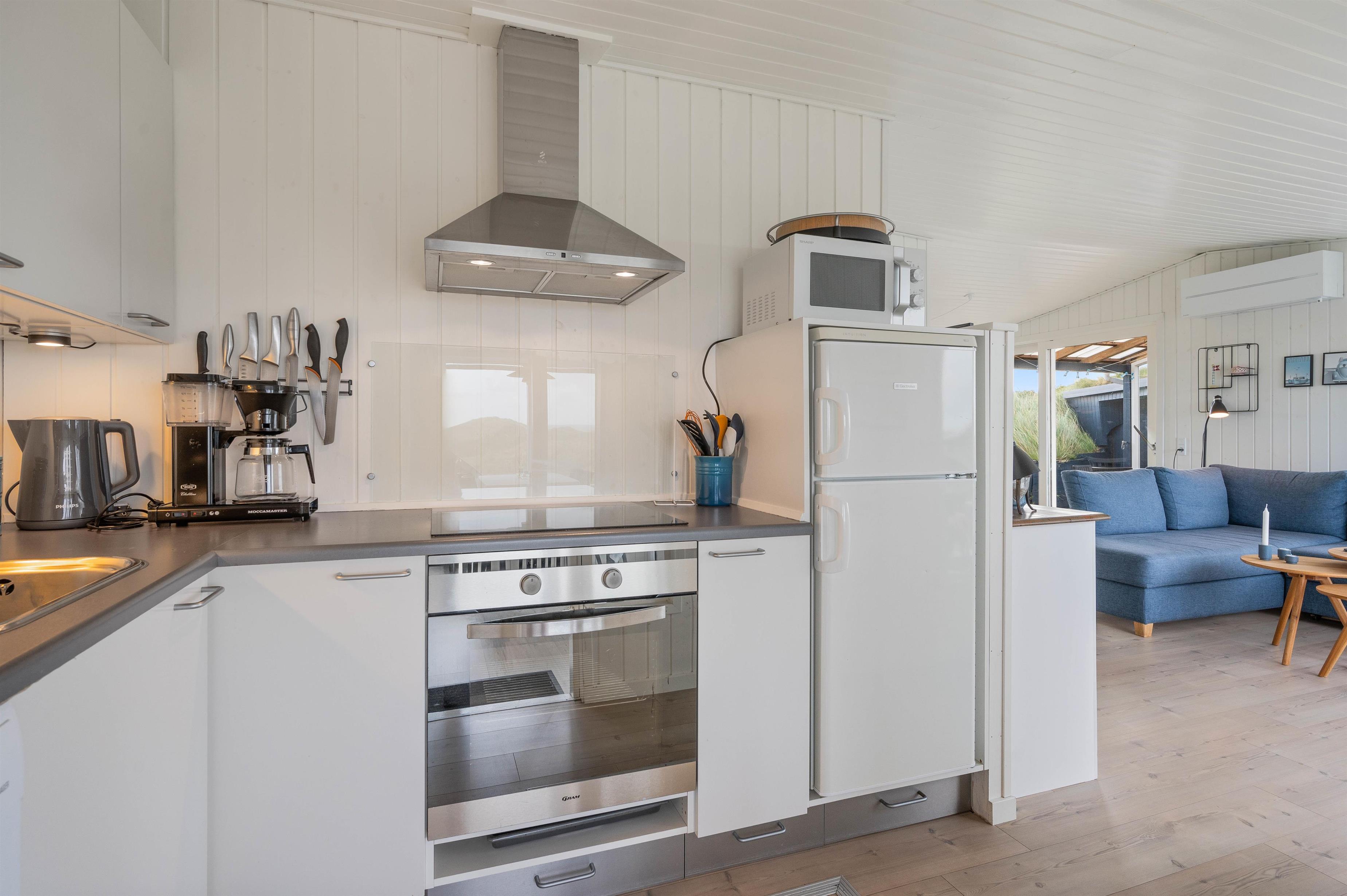 Det absolutte highlight er den fantastiske beliggenhed, og fra terrassen har I en hel fantastisk udsigt ud over det smukke ferieområde. Ikke nok med, at I kan betragte det smukke klitlandskab så langt øjet rækker – I har endda udsigt til det brusende Vesterhav.