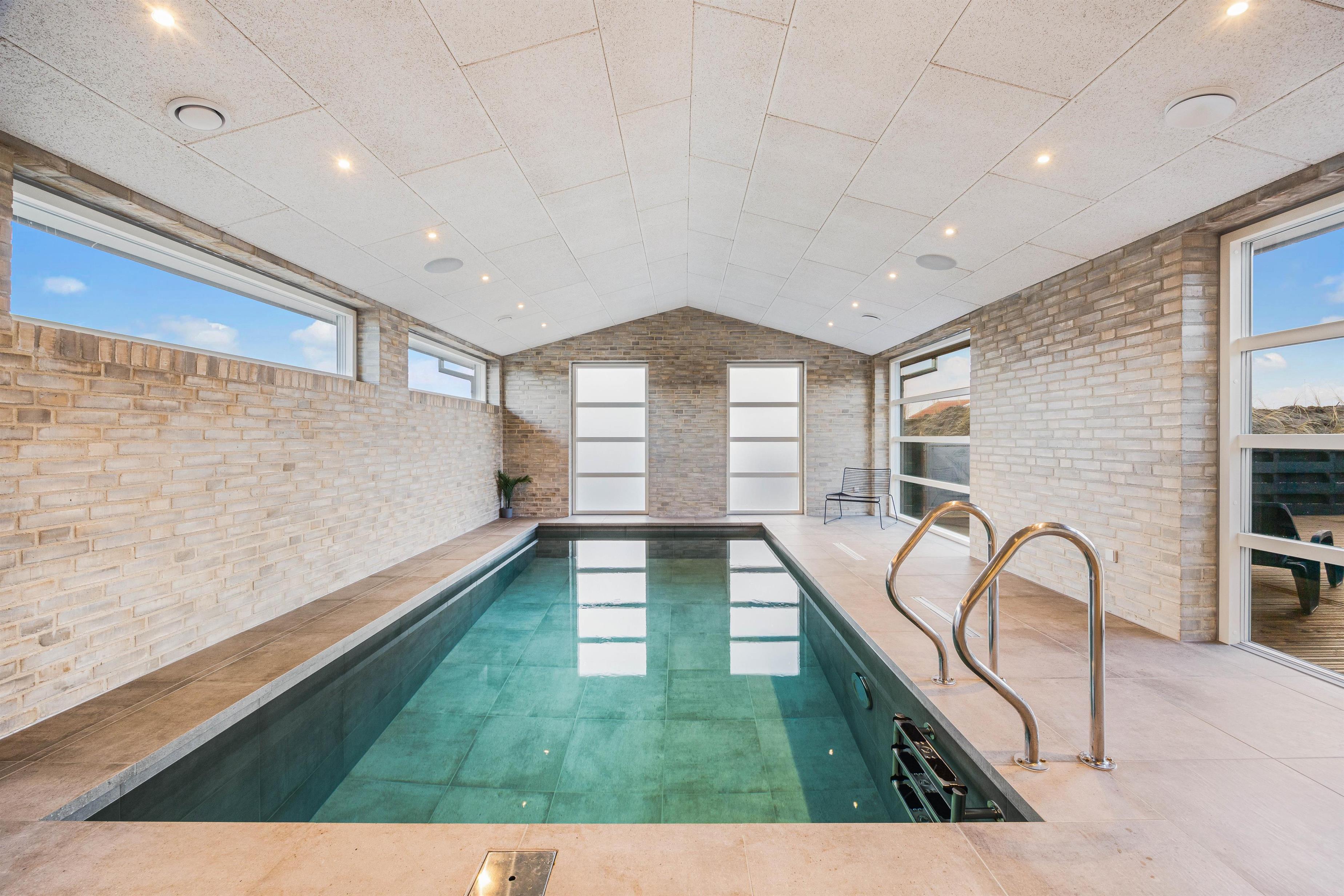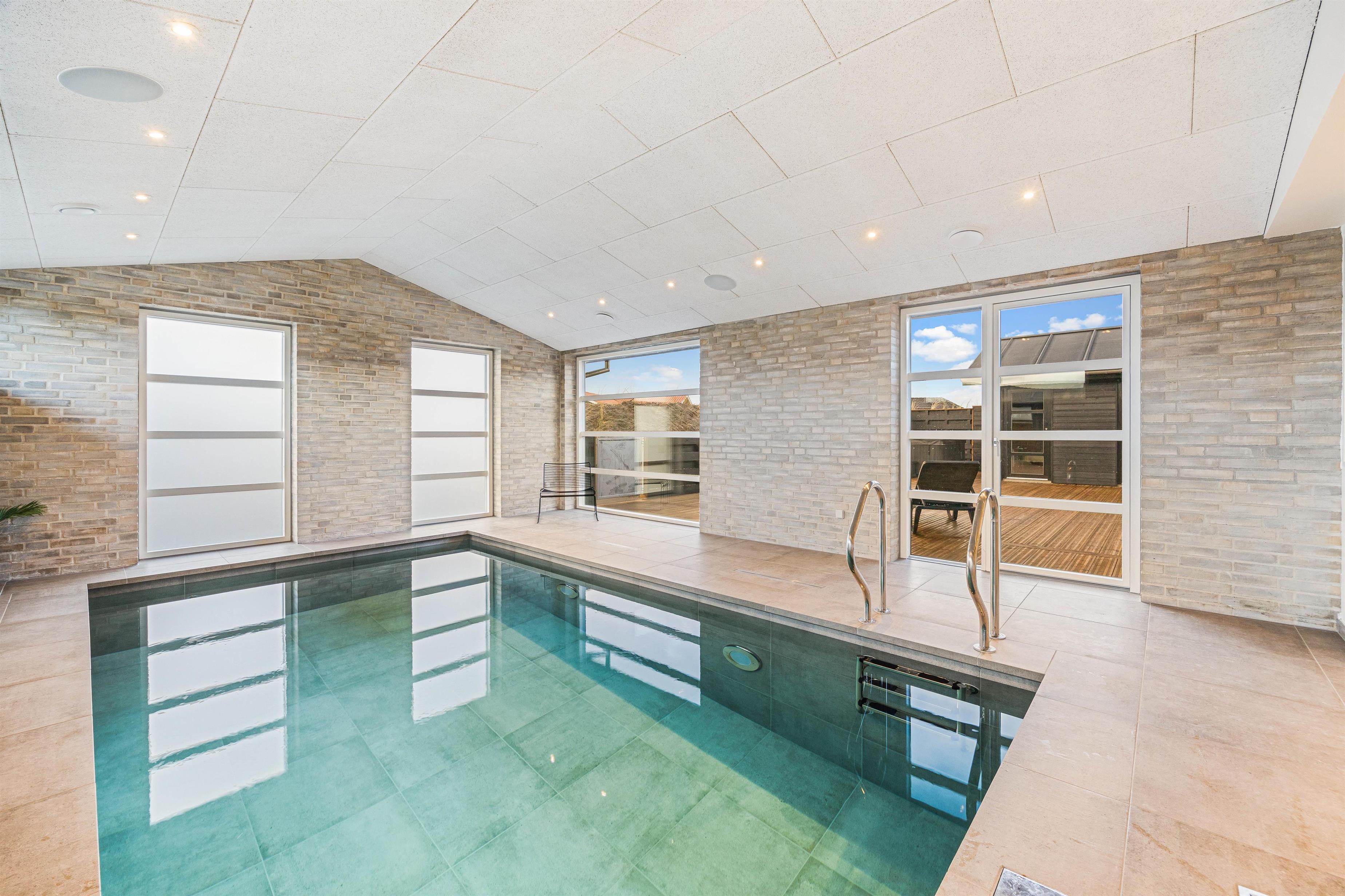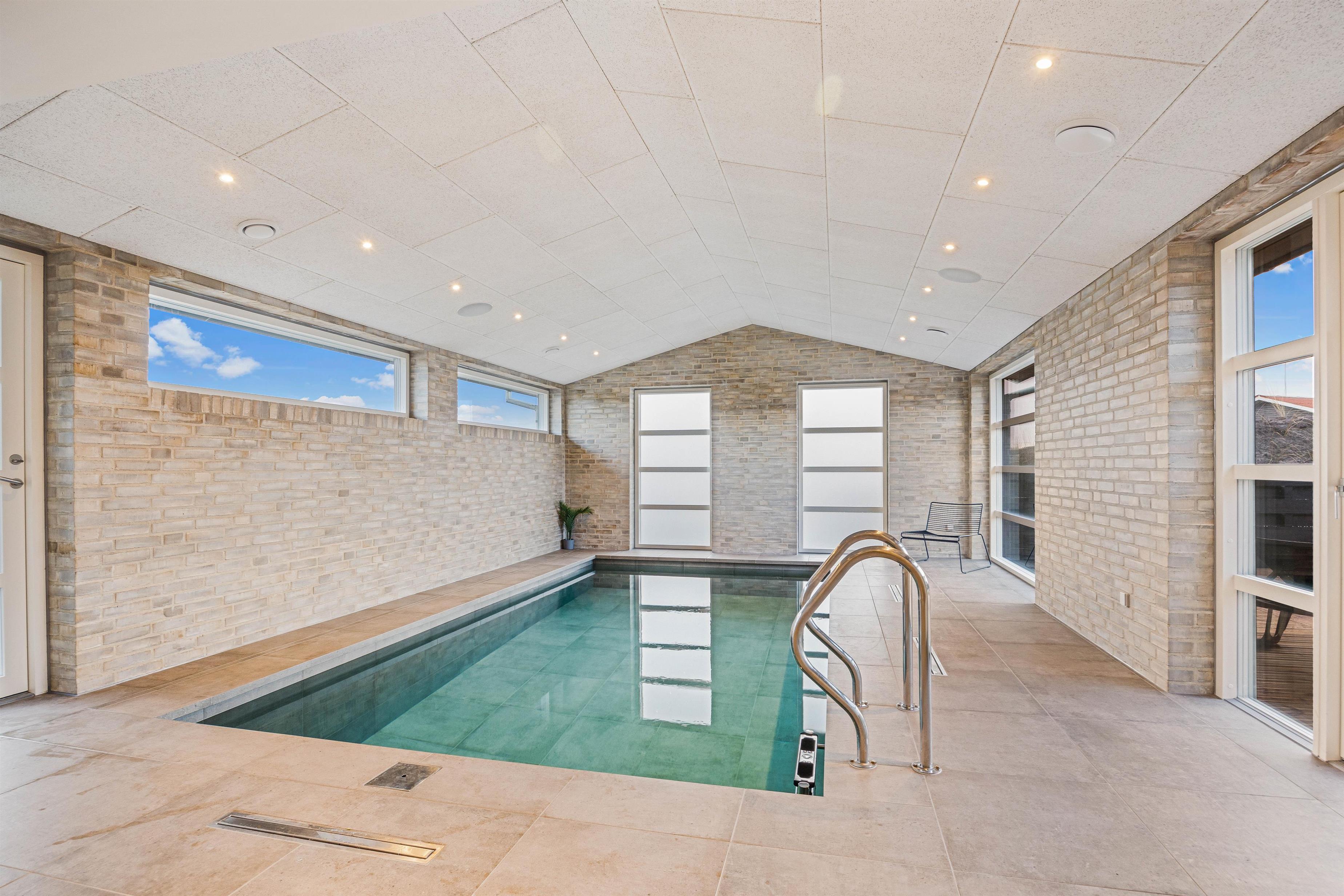 Kun 400 meter fra stranden ligger dette superlækre nyopførte sommerhus fra 2022 og indbyder til en fantastisk ferie for hele familien. Søger I et feriehus der oser af velvære og wellness så kunne dette 5-stjernede sommerhus på Holdvej 50 bestemt være en oplagt mulighed. Det moderne sommerhus på Holdvej 50 har både swimmingpool med svømmetræner, stor 6 personers udespa, udebruser, sauna, udehus med mulighed for aktiviteter, og ligger kun 400 meter fra havet. Huset er beliggende på en meget rolig lukket stikvej, hvor der kun er huse med indkørsel på den ene side af vejen.