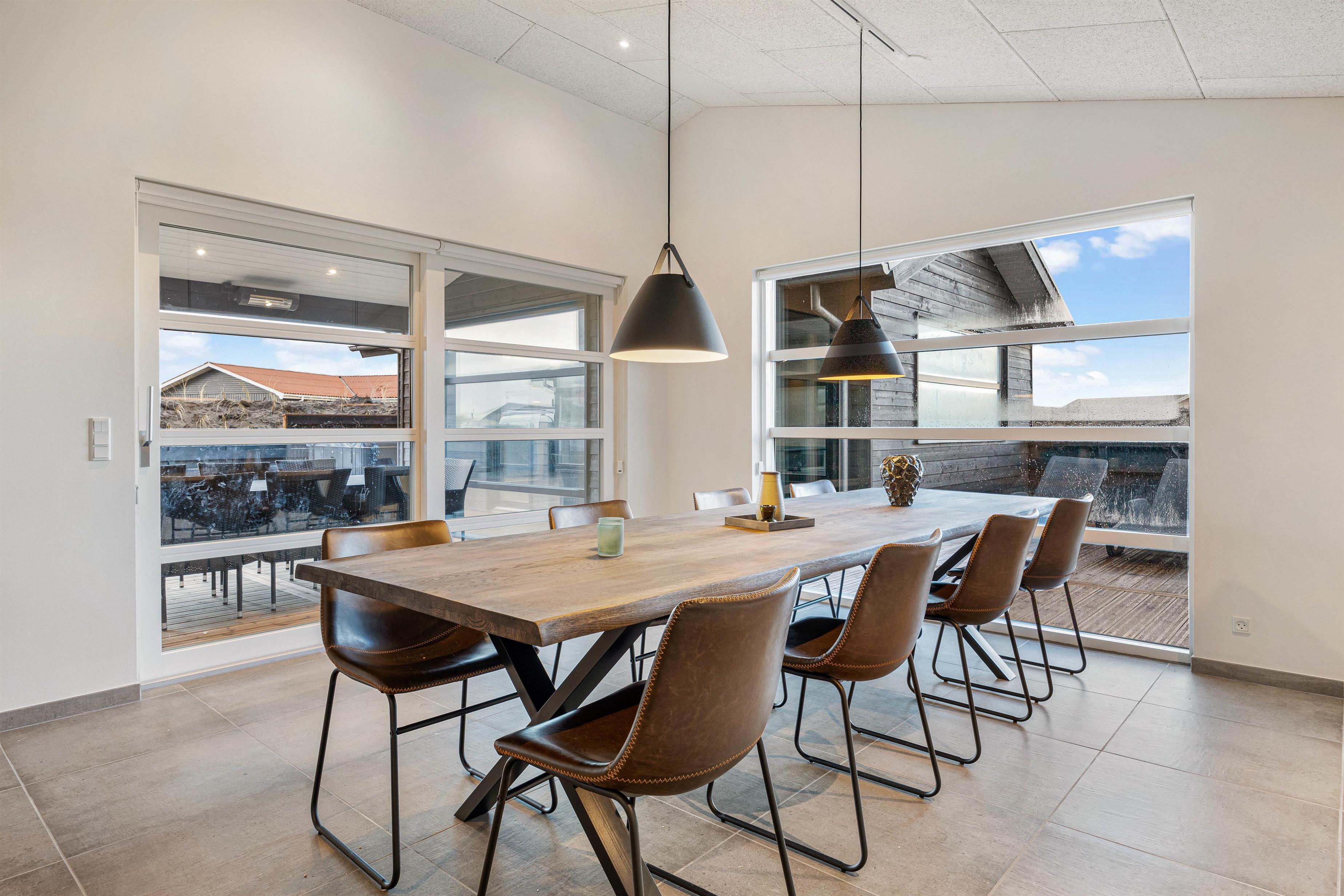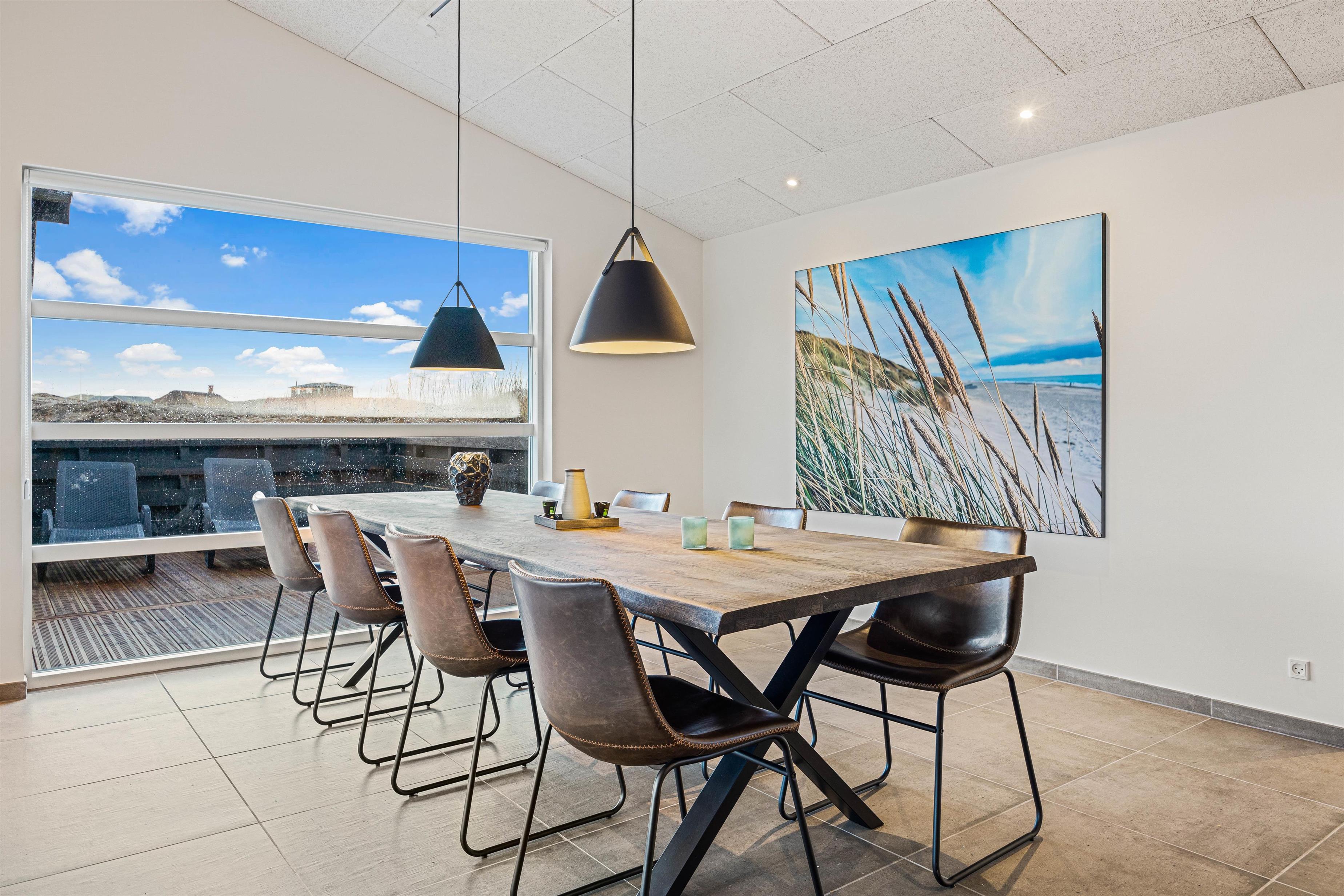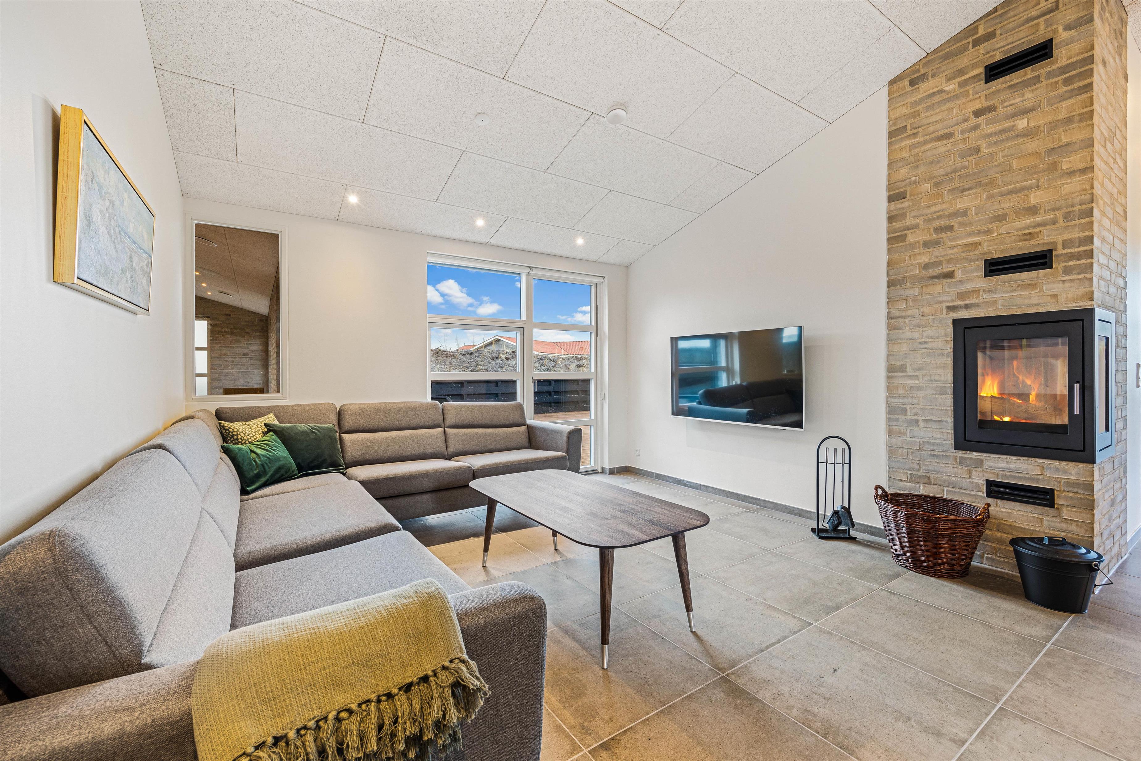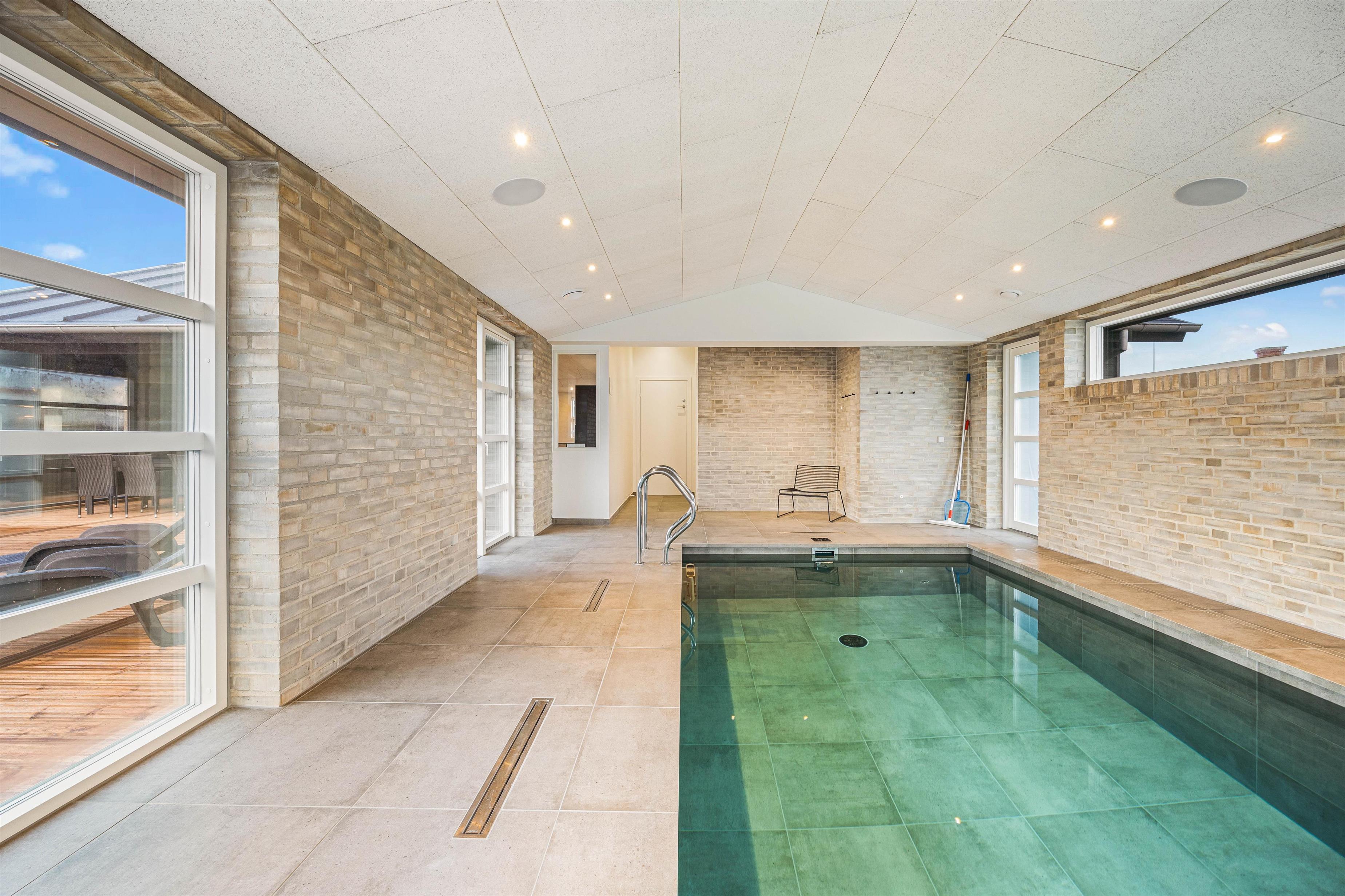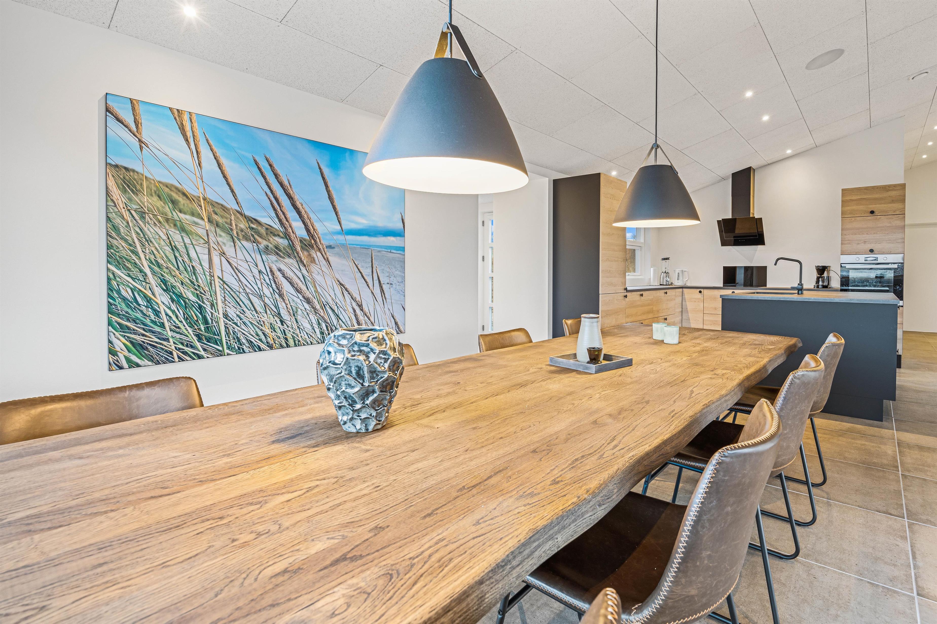 Den åbne stue med stort integreret køkken og pejs er husets hjerterum og her kan I tilbringe mange hyggelige feriestunder sammen med madlavning og planlægning af feriens aktiviteter. Huset er stilfuldt indrettet, derudover kan I nyde de mange naturbilleder mens I drikker en kop kaffe og læser en god bog i lænestolen. Eller hvad med et slag bordtennis, dart, pool eller arkadespil i husets udehus? Allerede fra morgenstunden af kan I nyde en dejlig svømmetur i saltvandspoolen med svømmetræner og slutte af med en velfortjent morgenmad. Sommerhuset på Holdvej 50 er udstyret med 2 Genvex ventilationsanlæg, som giver et meget behageligt bademiljø og indeklima. Der er to seperate trådløse musikanlæg i loftet, der giver dig mulighed for at nyde din yndlingsmusik, mens I slapper af i den hyggelige stue, samtidigt med at I kan høre deres yndlingsmusik.