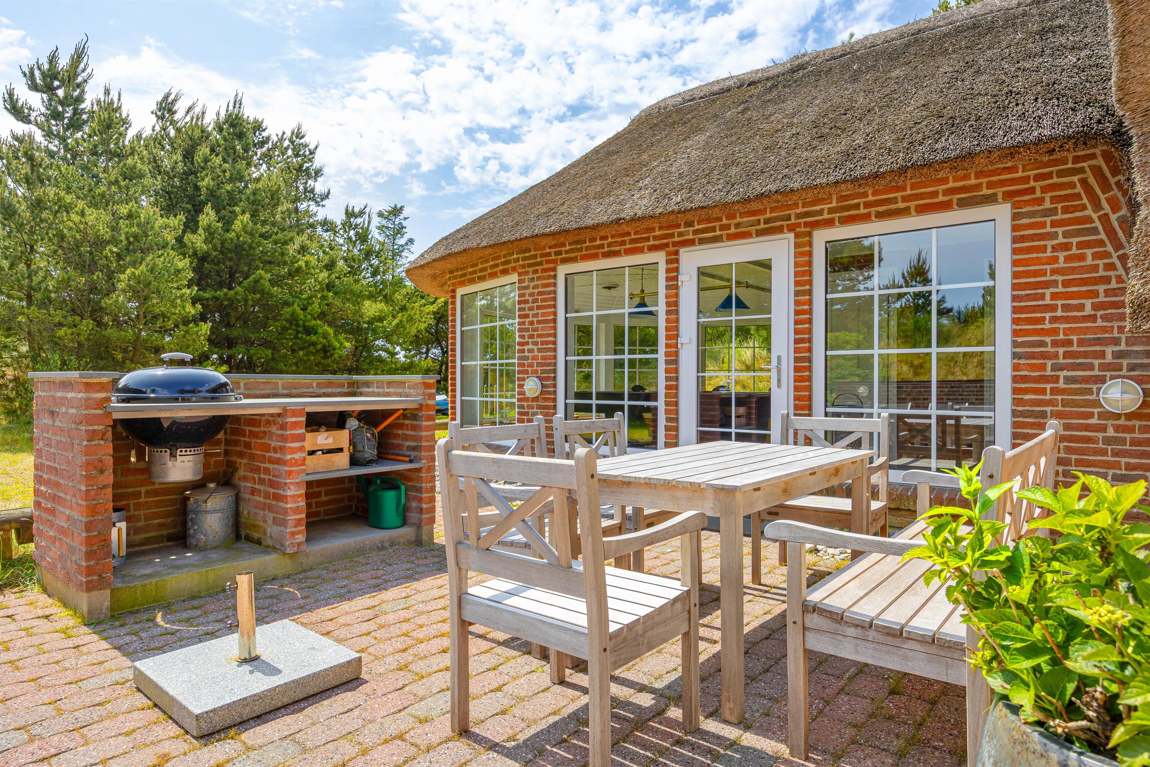 Dette hyggelige og stråtækte sommerhus på 156 m2, er blevet renoveret i 2020 så det fremstår pænt. Sommerhuset byder på høj komfort og hyggelige omgivelser. De 4 soverum er alle udstyret med dobbeltsenge, hvilket sikrer en god nats søvn for alle. Når temperaturen falder, kan I varme jer ved den charmerende brændeovn eller nyde saunaens afslappende varme.