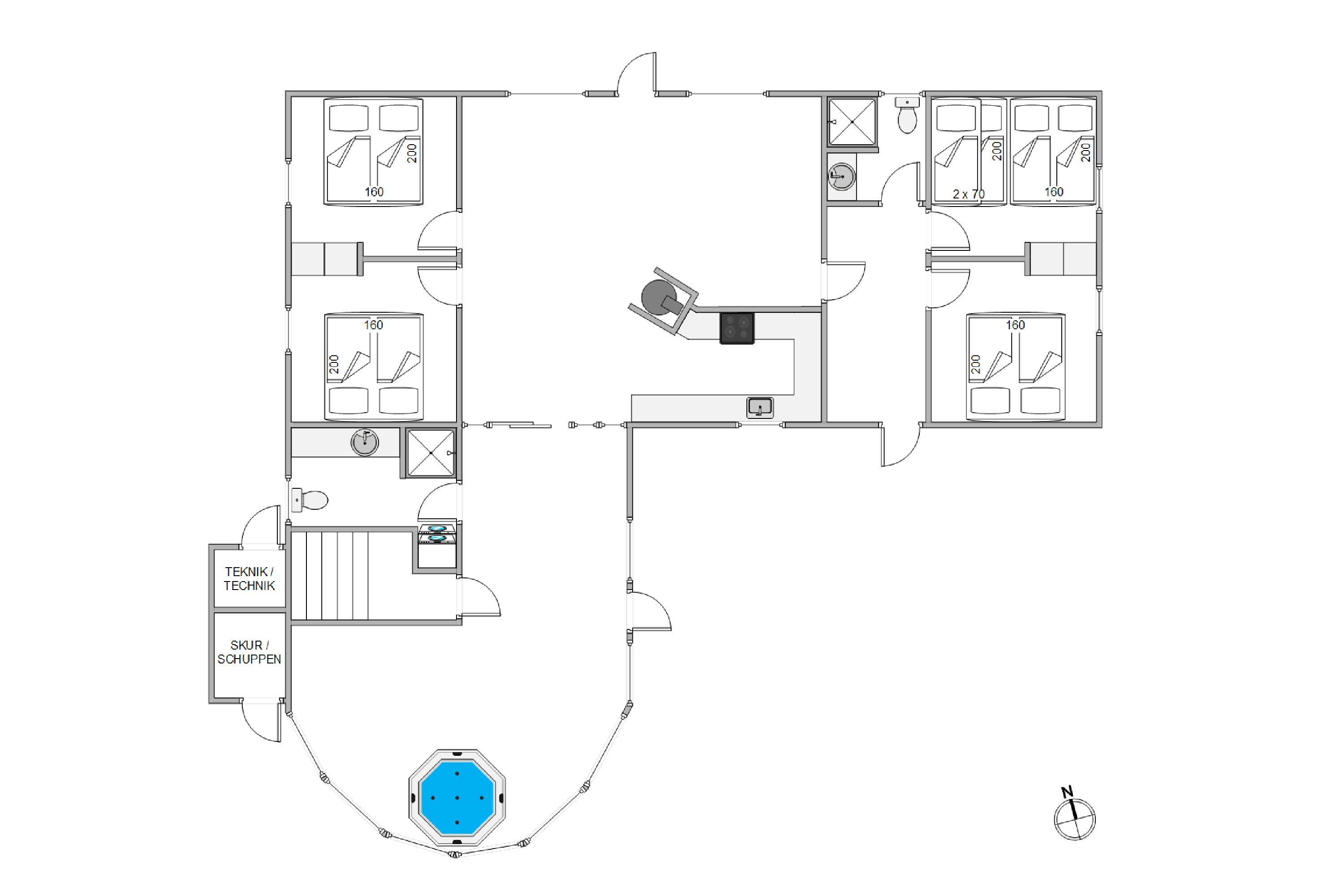 I vil sætte pris på sommerhusets praktiske faciliteter, som inkluderer en opvaskemaskine og en luft til luft varmepumpe, der sikrer et behageligt indeklima. Begge badeværelser er med gulvvarme, så kolde fødder ikke er et problem. For at sikre at hele familien kan samles, tillader sommerhuset at I kan medbringe 1 enkelt hund