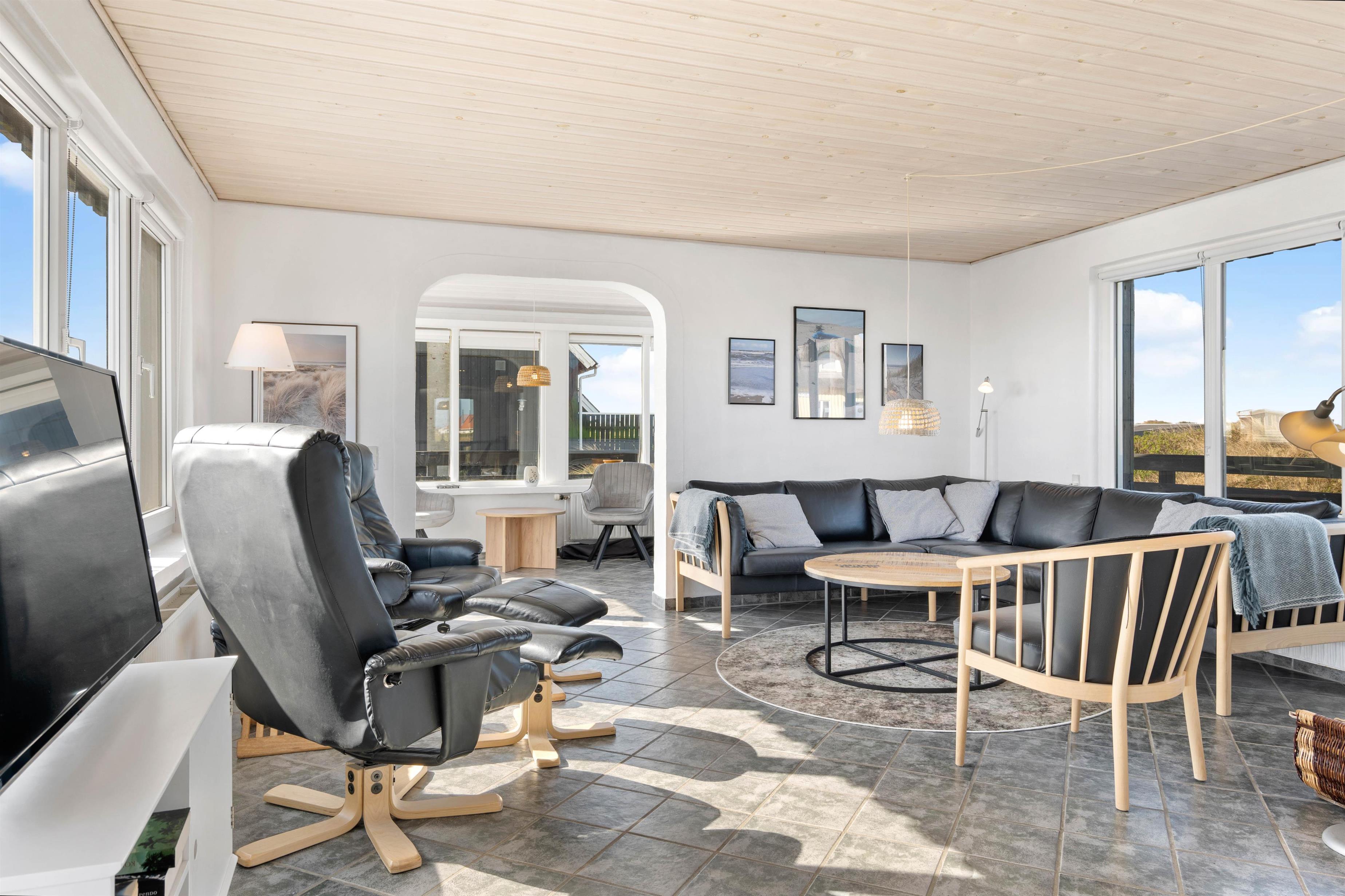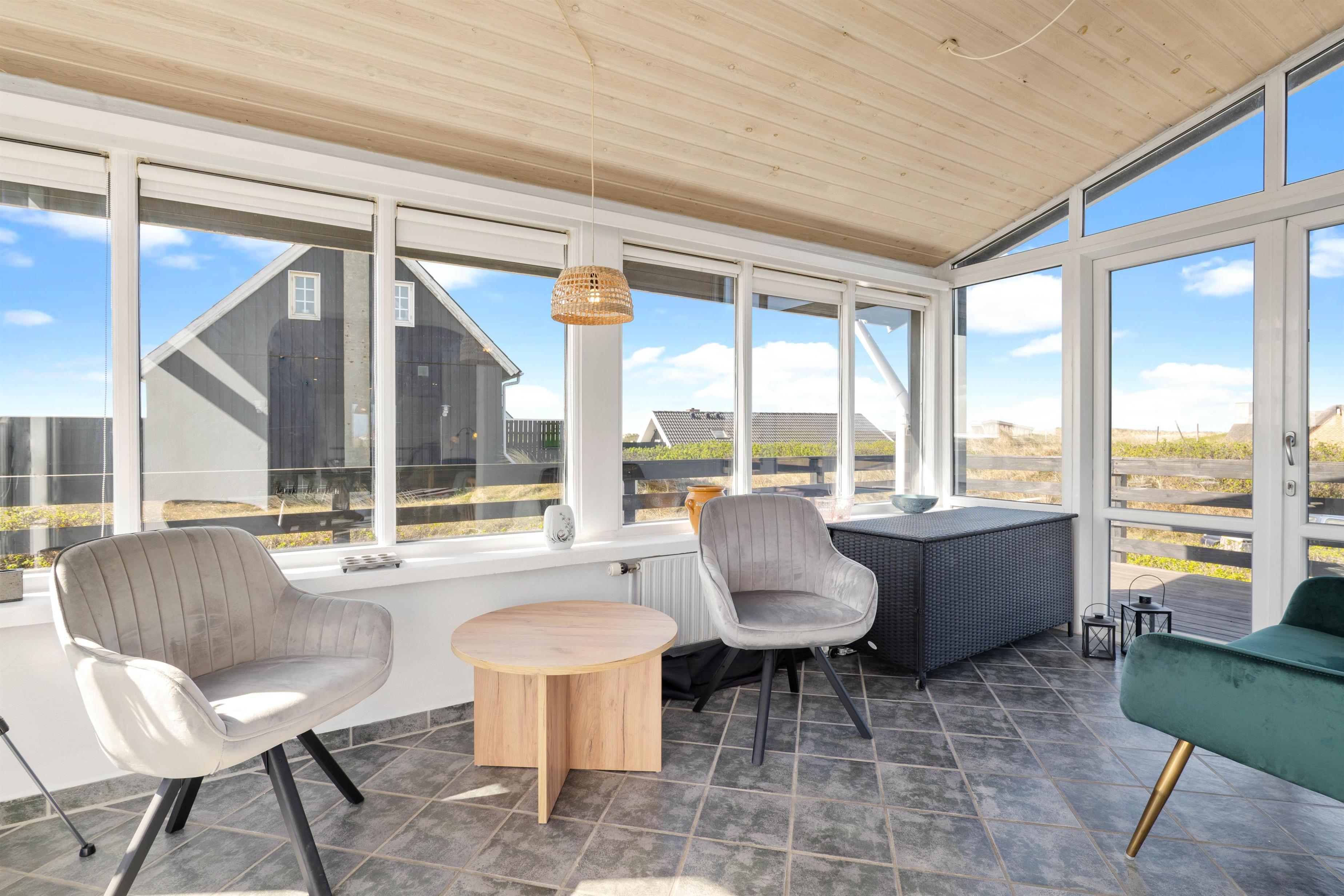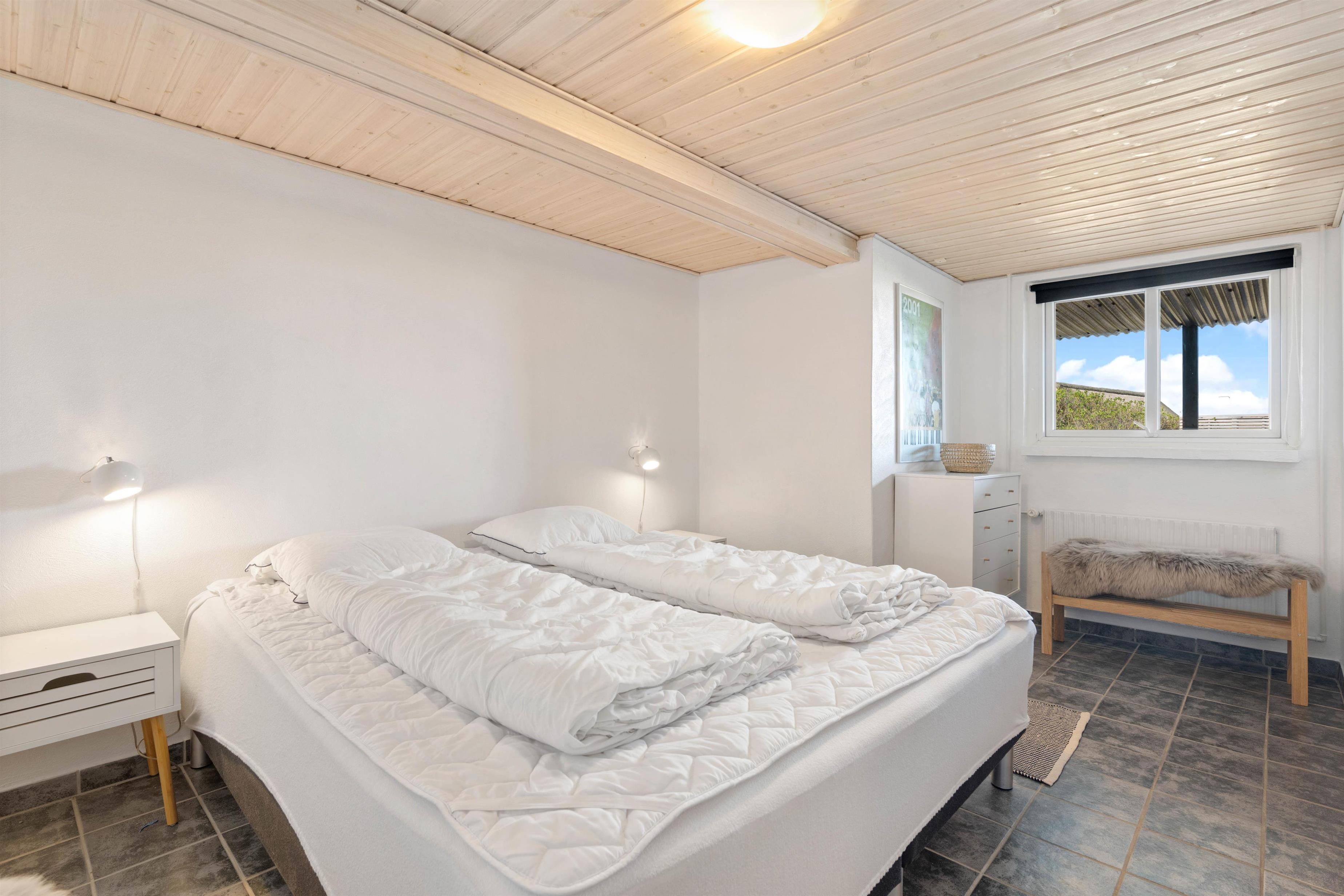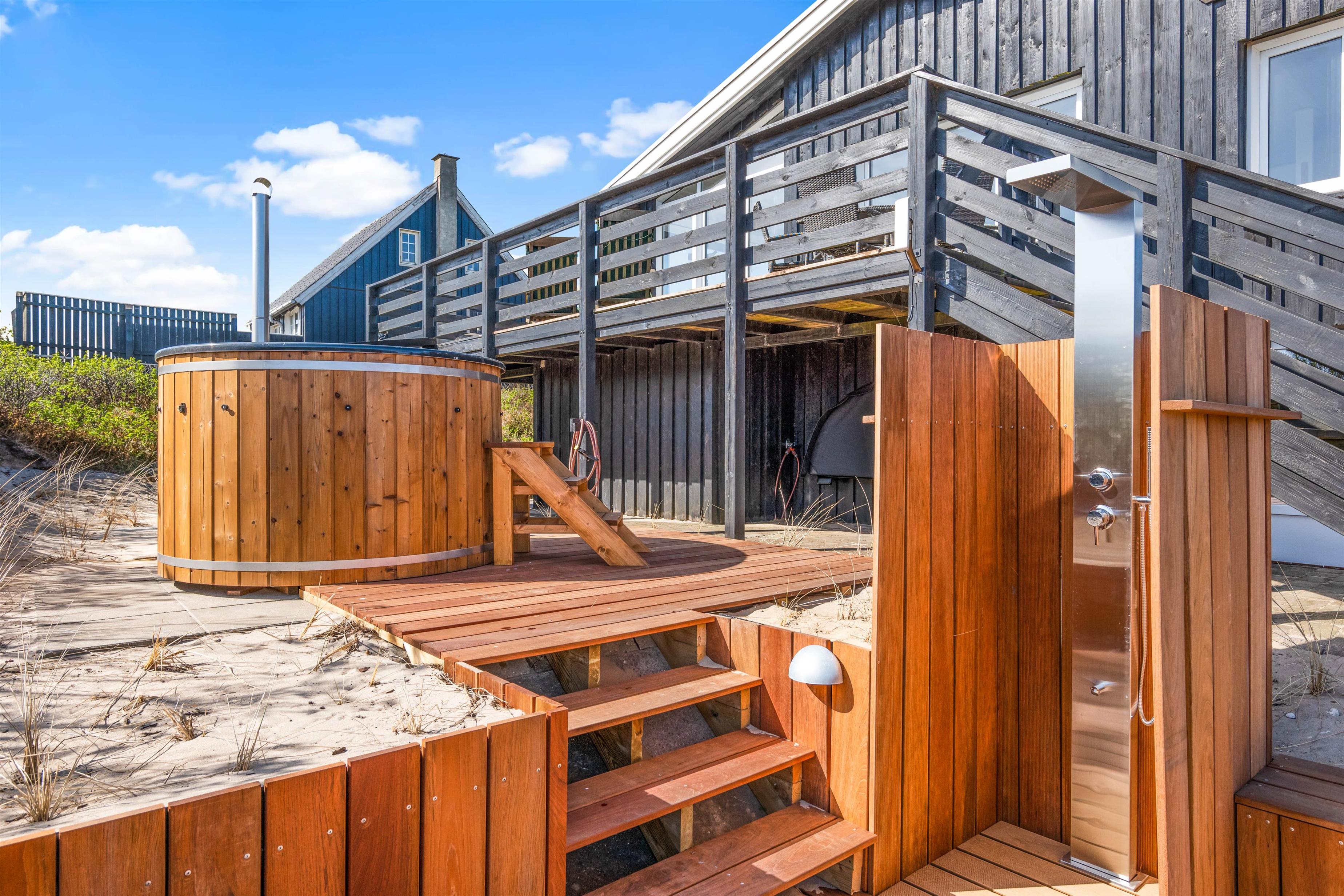 Kun et stenkast – mere præcist 175 meter – fra Søndervigs hvide sandstrand ligger dette skønne sommerhus og venter på jer. Her får I et feriehus fordelt på to plan med plads til 5 personer, og ikke mindst den lækreste terrasse med vildmarksbad, saunatønde og udendørsbruser. Hele herligheden ligger kun en lille gåtur fra Søndervigs bymidte. Der er derudover installeret en ladeboks ved feriehuset, hvis I ankommer med el-bil, så I uden problemer har mulighed for at få ladet bilen op. I skal blot huske at medbringe jeres eget ladekabel.