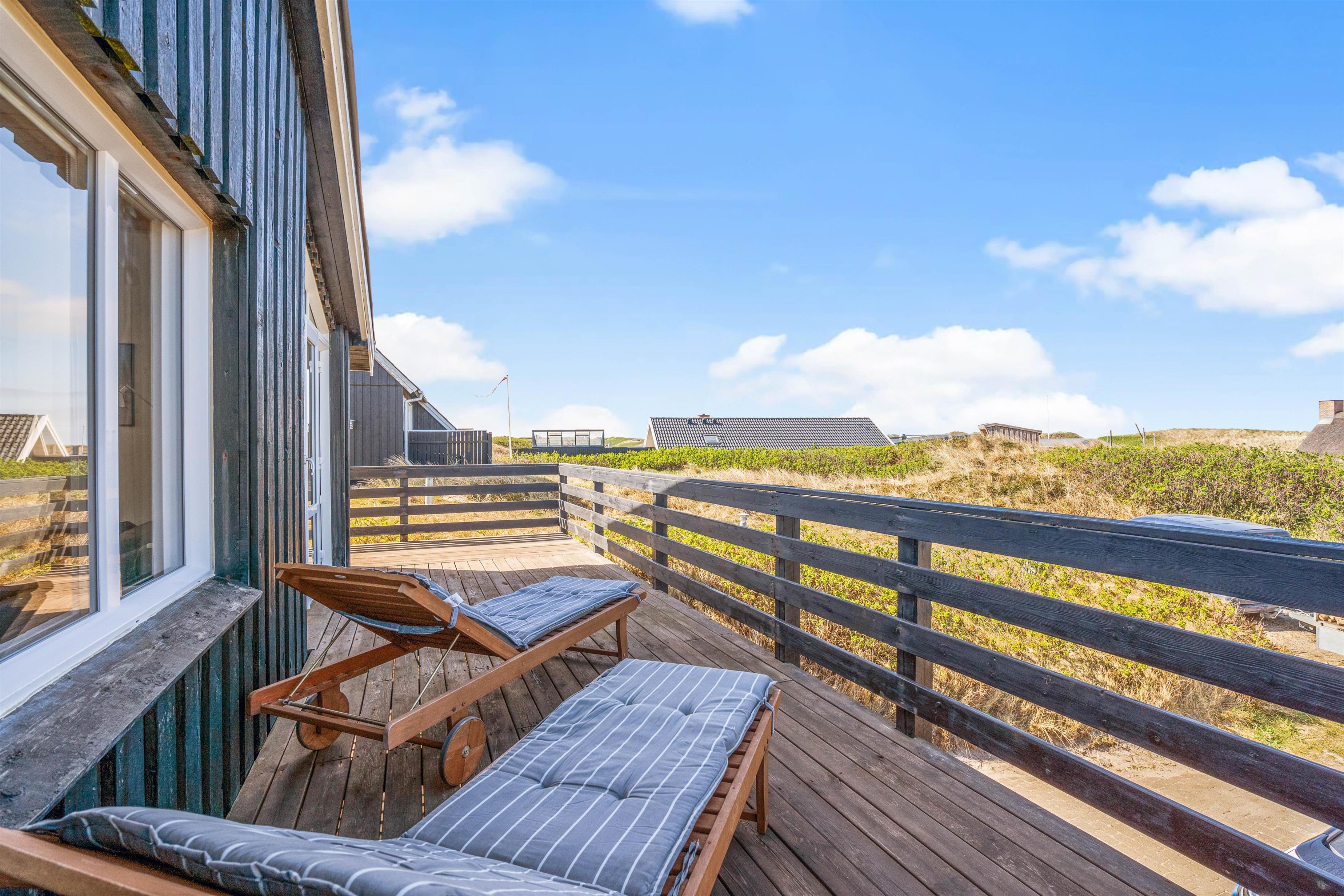 Dertil kommer naturligvis gode havemøbler, liggestole og en praktisk grill, hvorpå I hurtigt kan tilberede dagens feriemiddag. En sidste lille bonus er udebruseren, hvor I kan skylle fødderne rene for sand efter en tur på stranden. Udebruseren kan benyttes fra april til november.