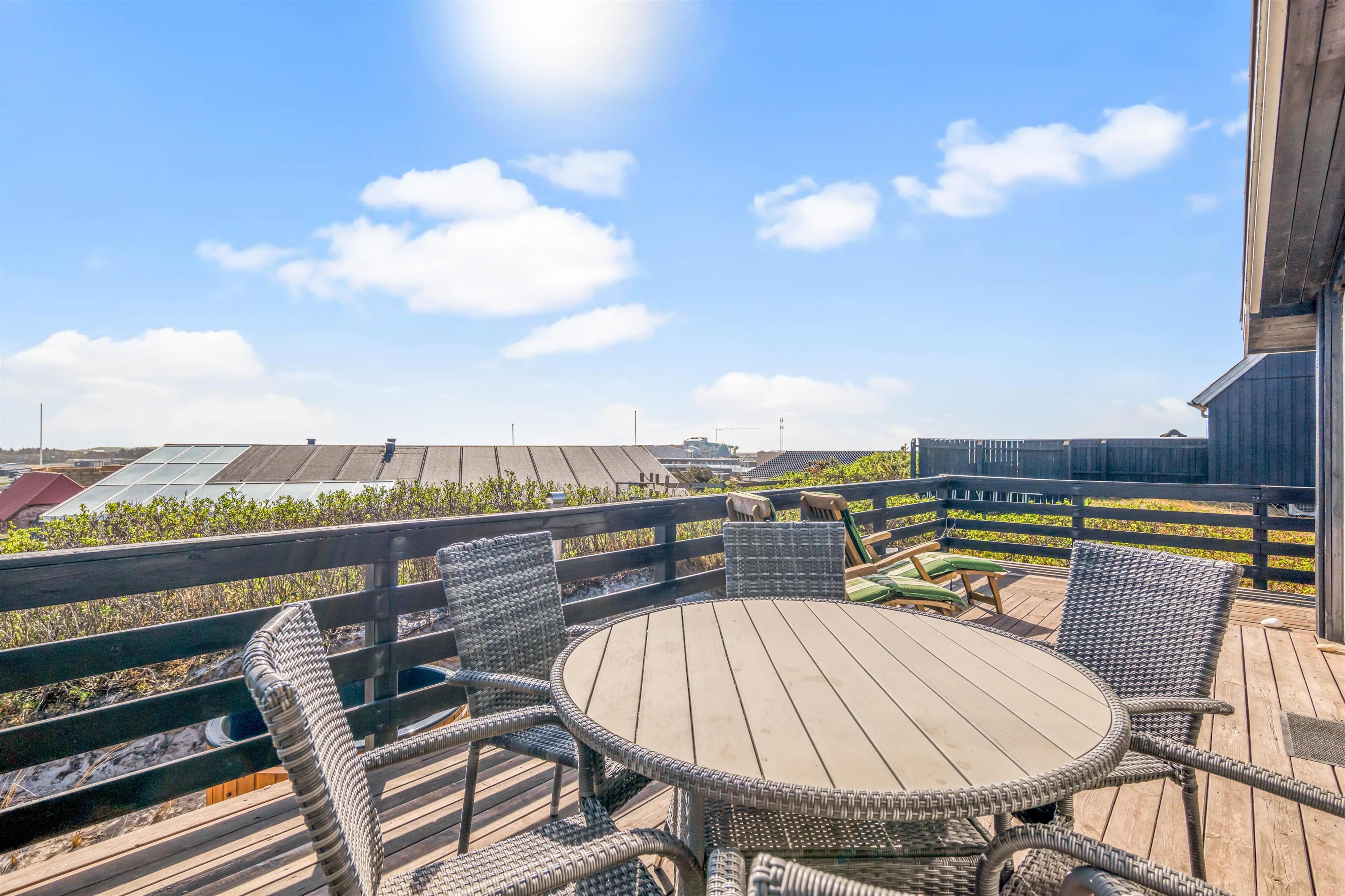 Der er masser af mulighed for at slappe af og tanke ny energi på Lodbergsvej 281. Et af feriehusets highlights er den fantastiske terrasse, hvor der, ud over alsidige muligheder for at nyde de flotte omgivelser, venter jer et stort vildmarksbad og en lækker udesauna. I får med andre ord jeres helt egen lille wellnessoase på terrassen.