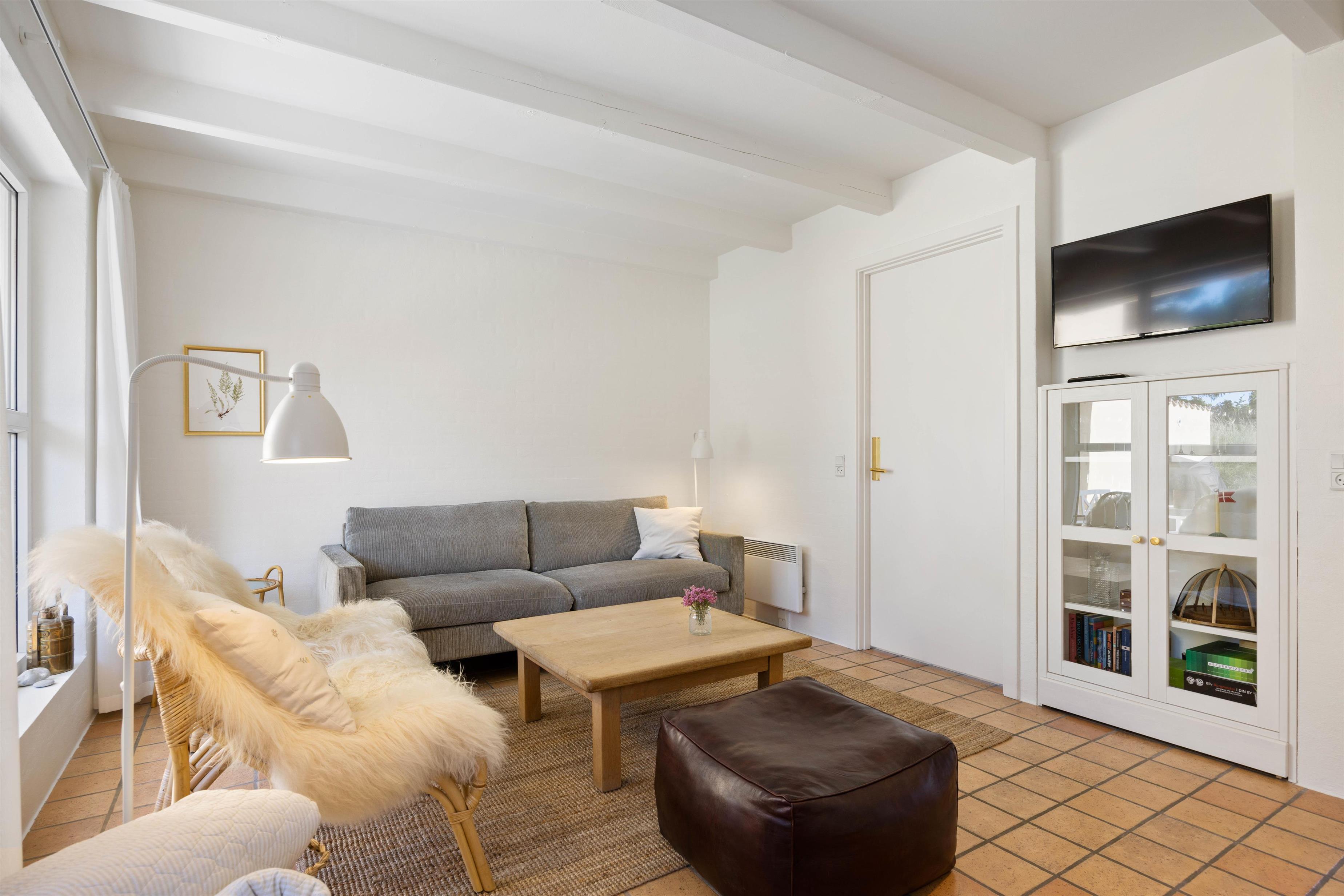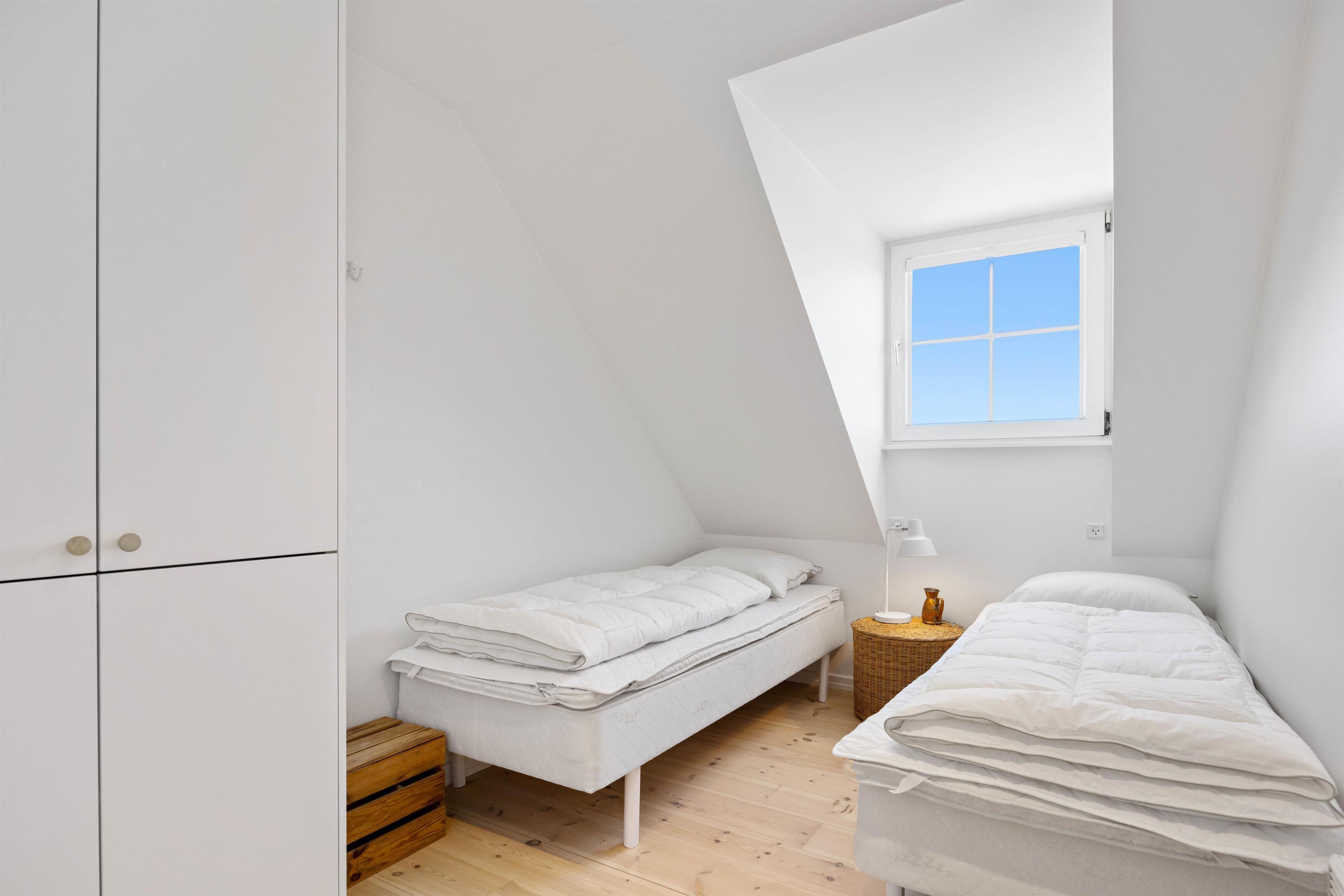 I stuen er der lækre kurvestole og en skøn sofa, som indbyder til filmhygge, brætspil og kvalitetstid med familie og venner. Køkkenalrummet/stuen har en indbygget brændeovn, som I kan bruge til de lidt koldere dage eller blot for hyggens skyld. Ferielejligheden er indrettet med tre soveværelser, som alle sammen har et fantastisk lysindfald og den nordiske, hyggelige indretning går igen her. Der er også mulighed for at vælge, om man som forældre vil sove nedenunder og give børnene førstesalen, eller man kan som vennepar have en etage hver.