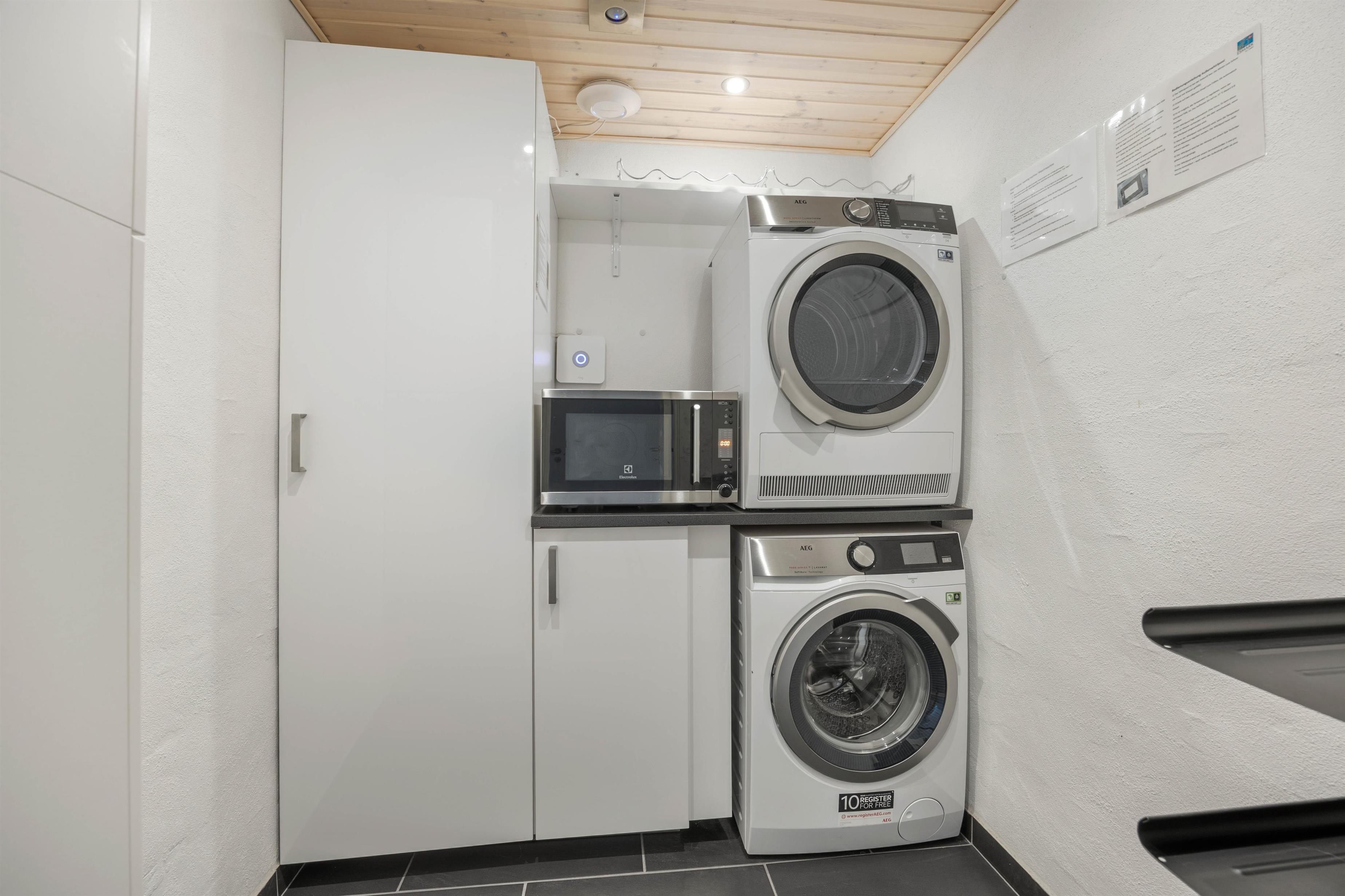 Køkkenet er fuldt udstyret med blandt andet en opvaskemaskine, så der er mere tid til at nyde samværet. Der er også vaskemaskine og tørretumbler til de øjeblikke, når I lige skal ordne lidt tøjvask.