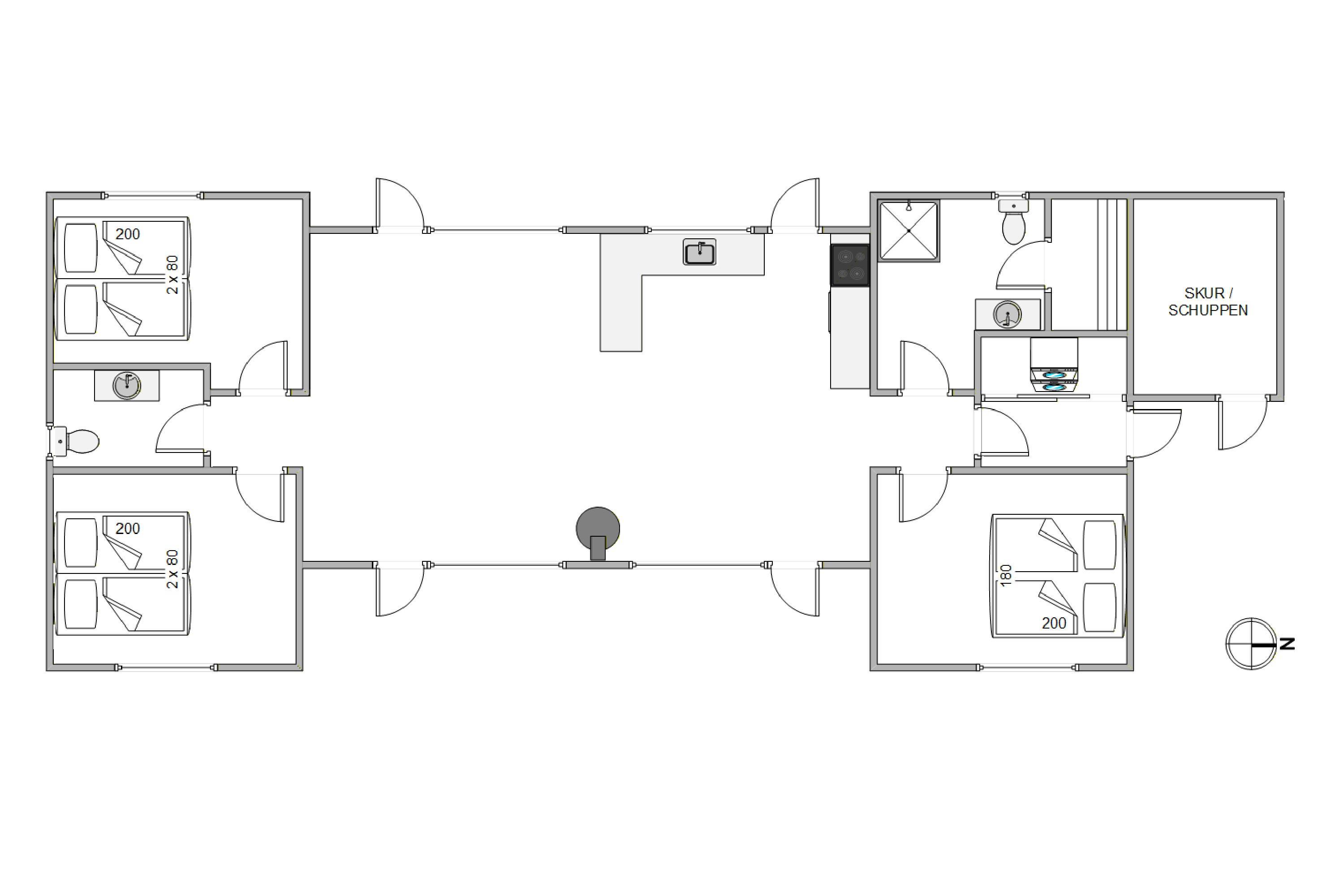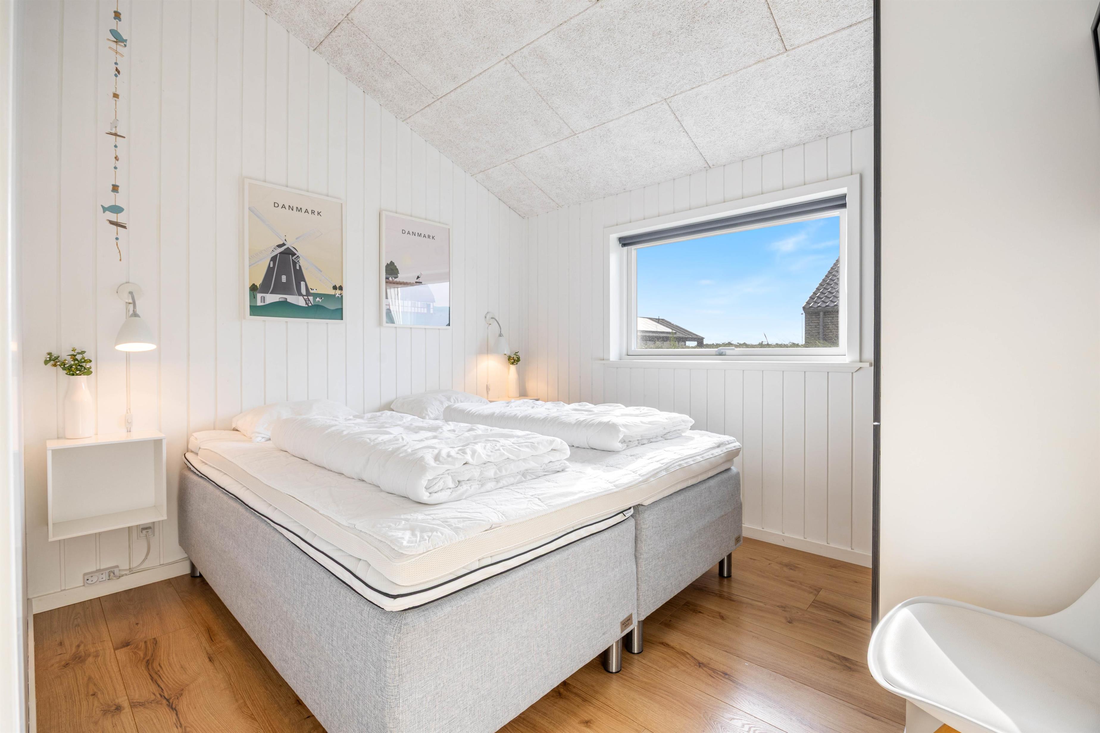 Sommerhuset er flot og hyggeligt indrettet, så du med det samme kan føle dig godt tilpas og mærke feriestemningen. Der er også en god rumfordeling to soverum og et gæstetoilet i den ene ende og et soverum samt badeværelset i den anden. Så har du nemlig mulighed for at give børnene, vennerne eller bedsteforældrene en ‘afdeling’ for dem selv.