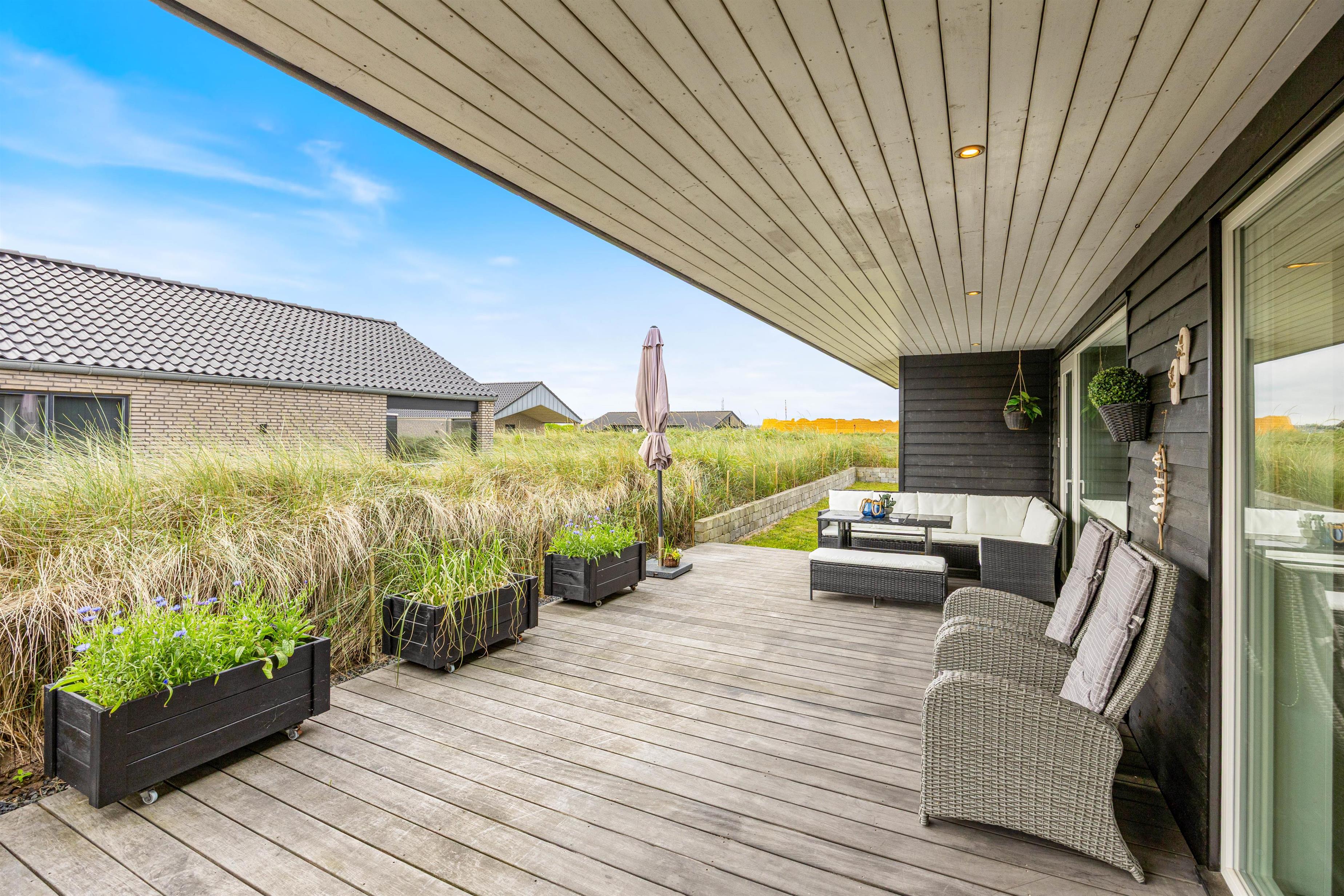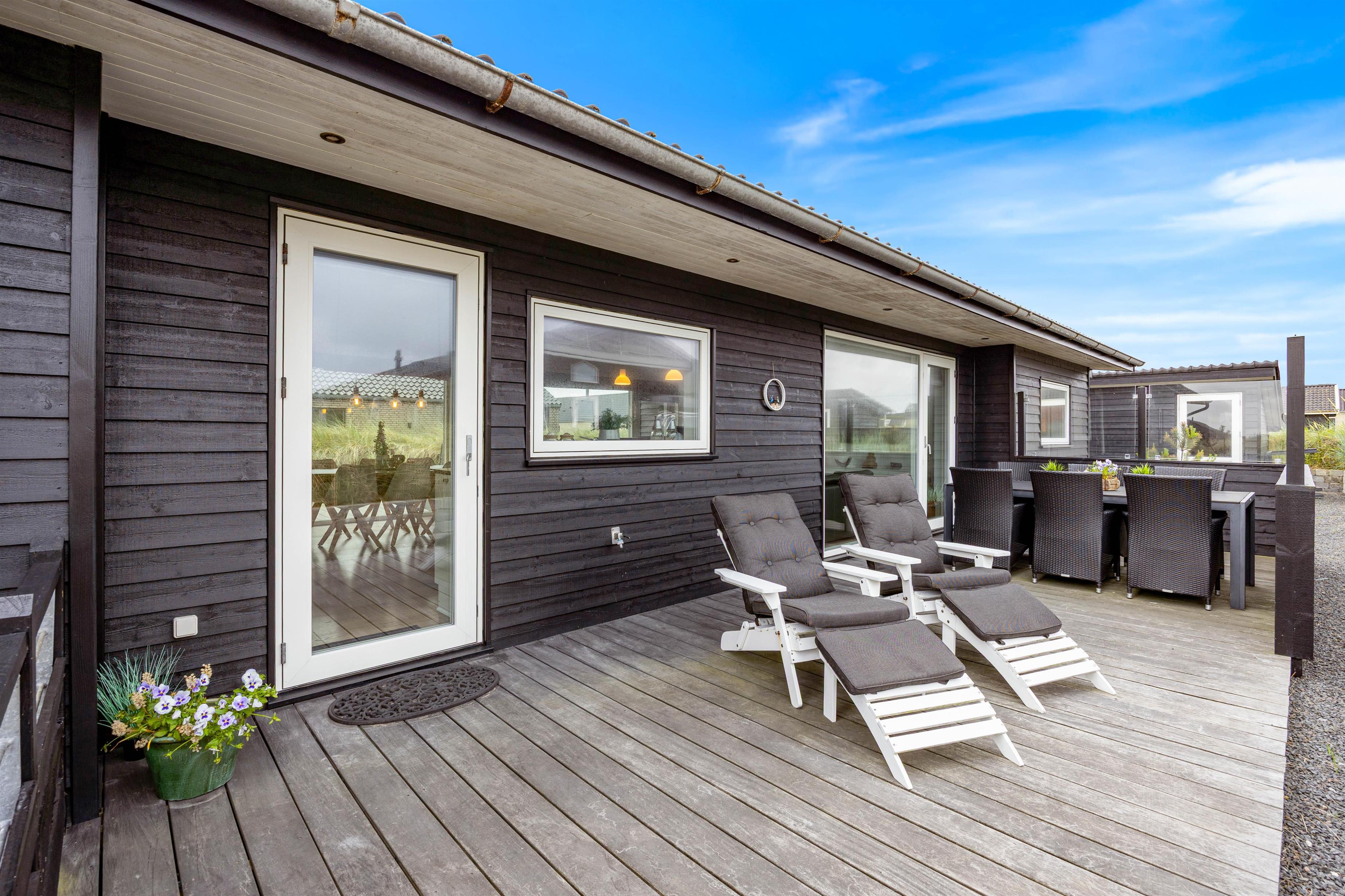 Sommerhuset har også dejlige terrasser, så I kan tilbringe de gode solskinsdage og grillaftener ude i det fri. Da terrasserne er fordelt omkring sommerhuset, vil du næsten altid kunne finde en plads med læ.
