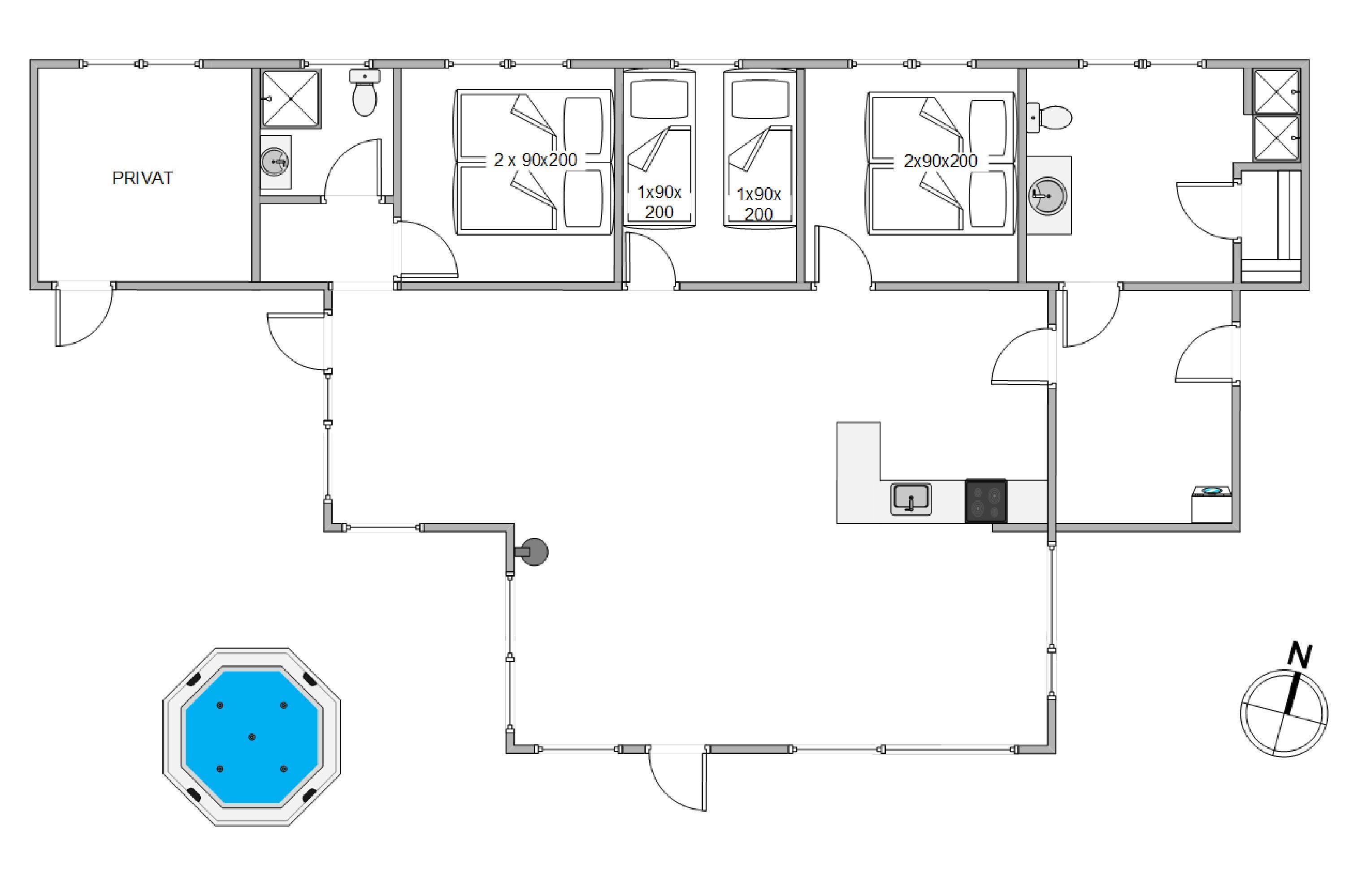 Et absolut highlight ved dette 5-stjernede sommerhus er husets egen udespa med plads til 5 personer! Der er intet bedre end at kunne sætte sig ned i det varme vand efter en lang dag med mange skridt på skridttælleren. Det allerbedste ved et udendørs spabad er, at det kan benyttes året rundt. Det er en helt speciel oplevelse at sidde i spaen og kigge op på den mørke stjernehimmel. En rigtig wellness-oplevelse.