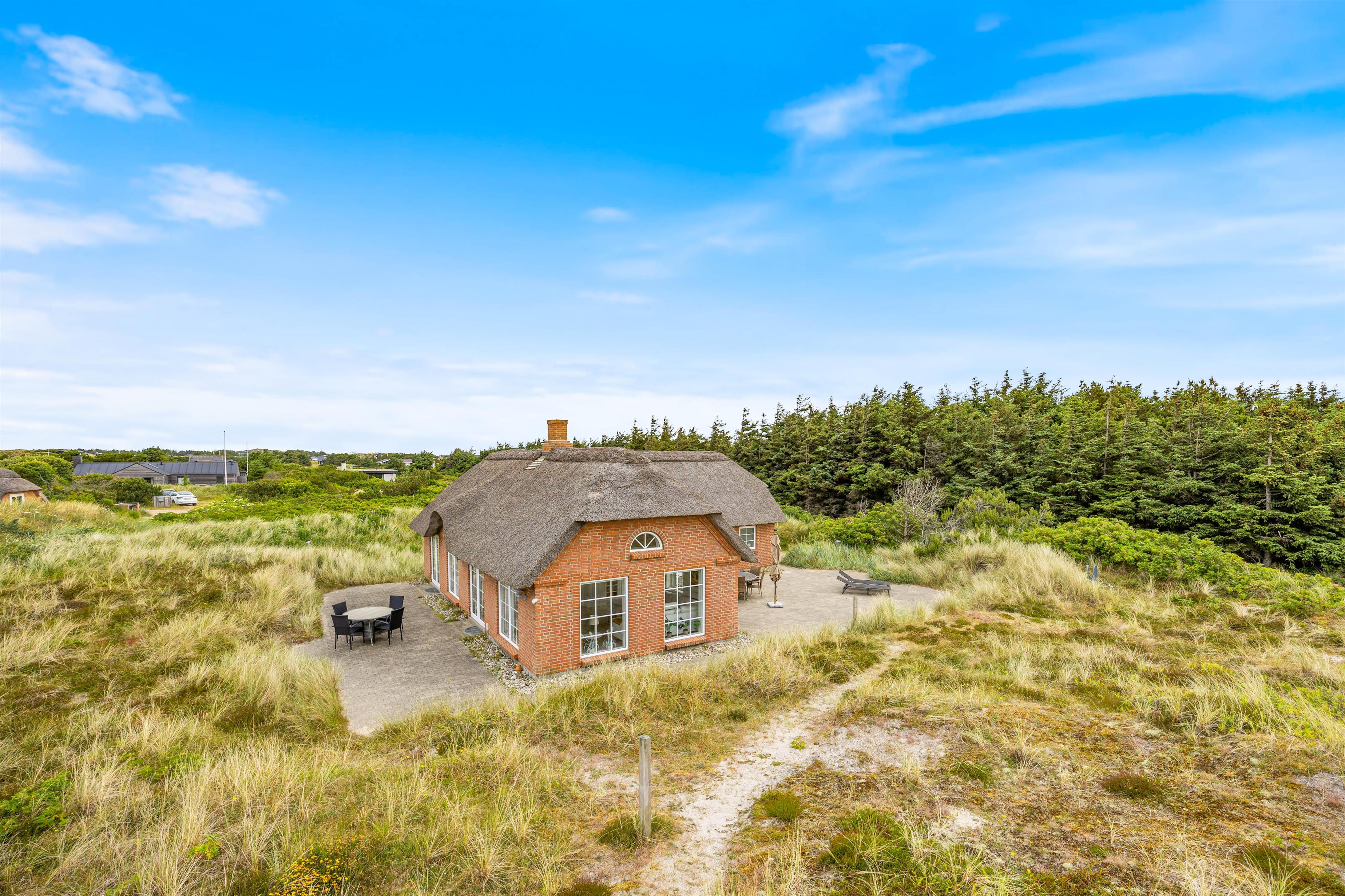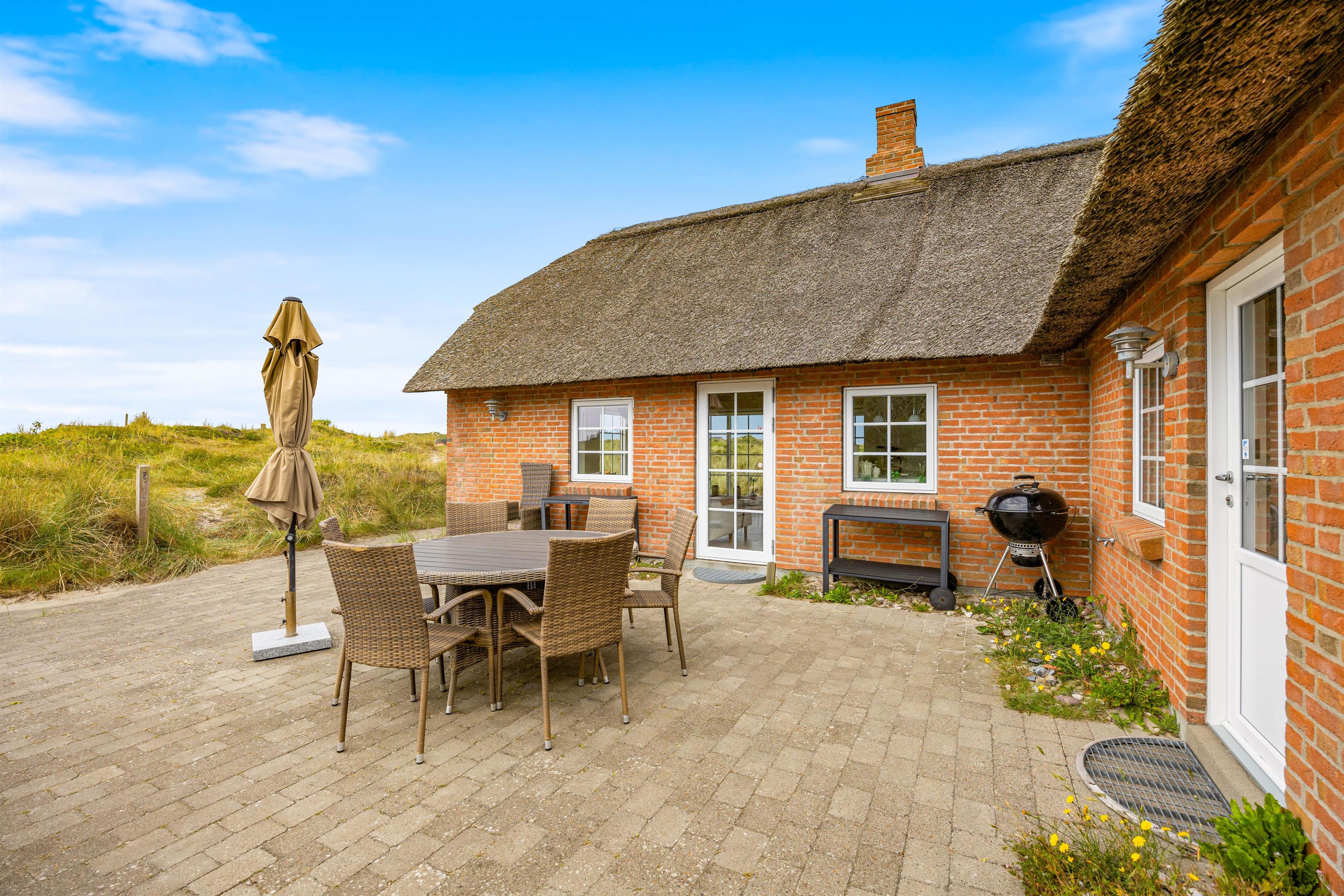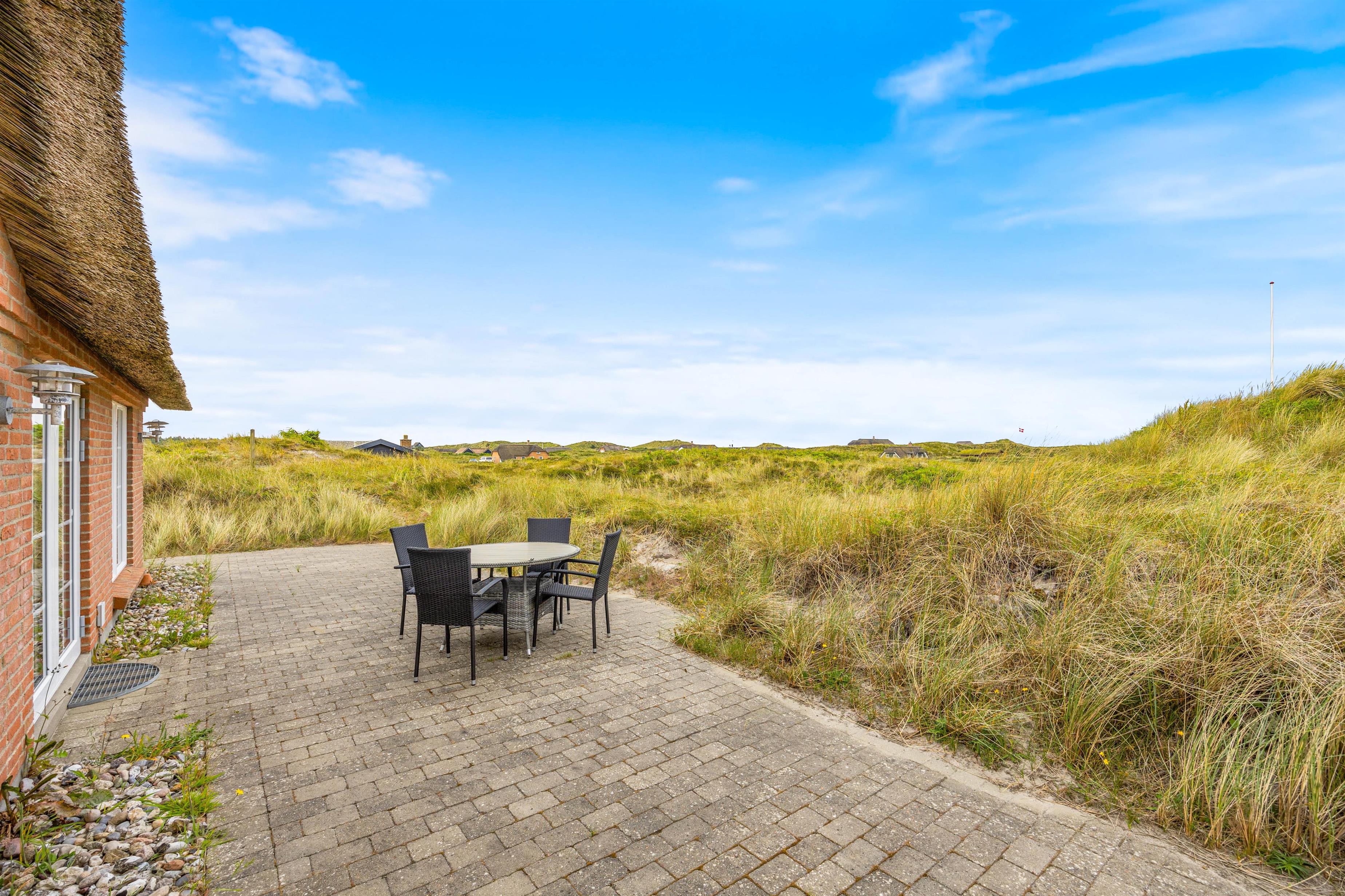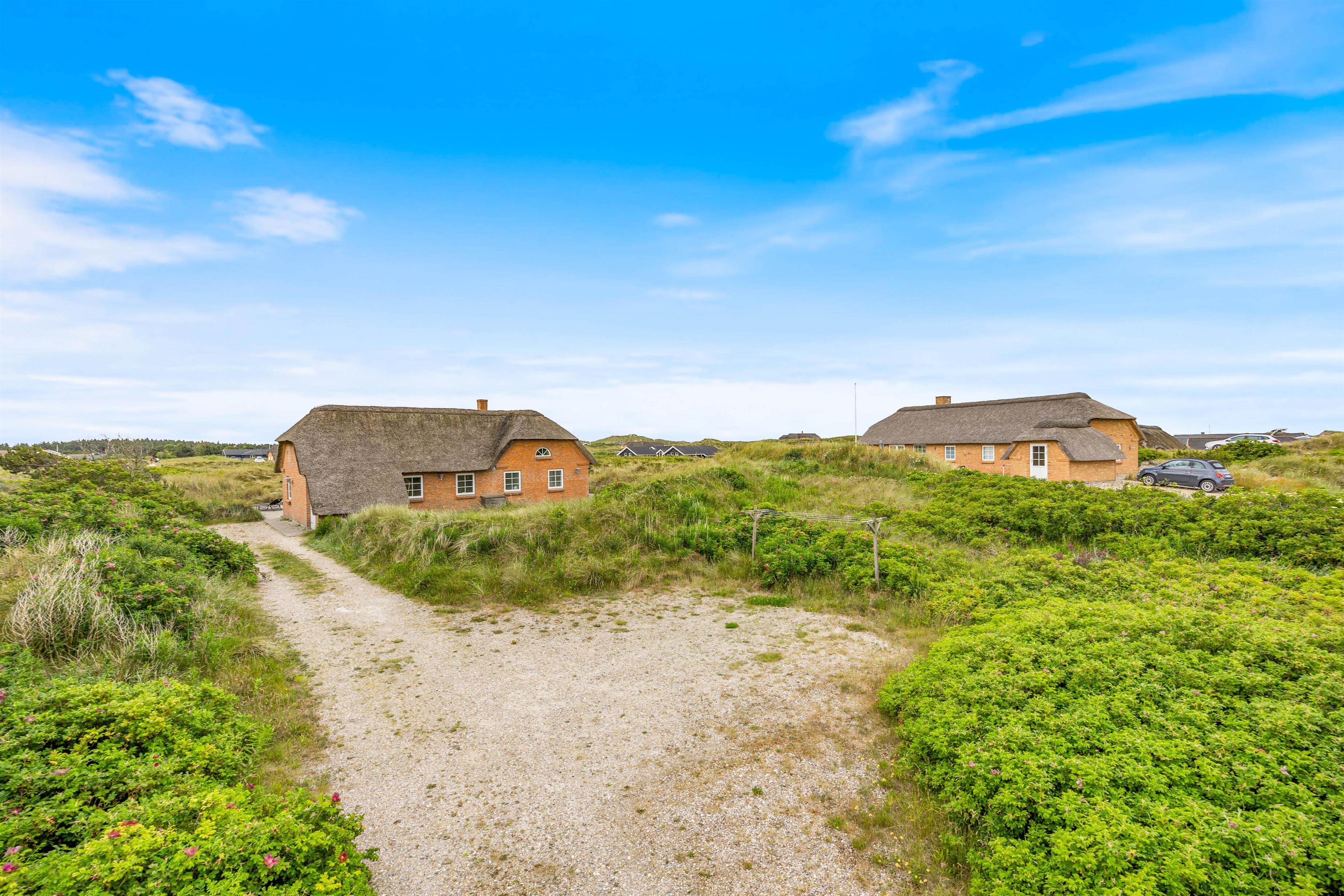 Kun 350 meter væk ligger Vesterhavet og kalder på jer. Følg bølgernes brusen hele vejen gennem klitlandskabet ned til den smukke strand, som er et paradis for både små, store og firbenede feriehusgæster.