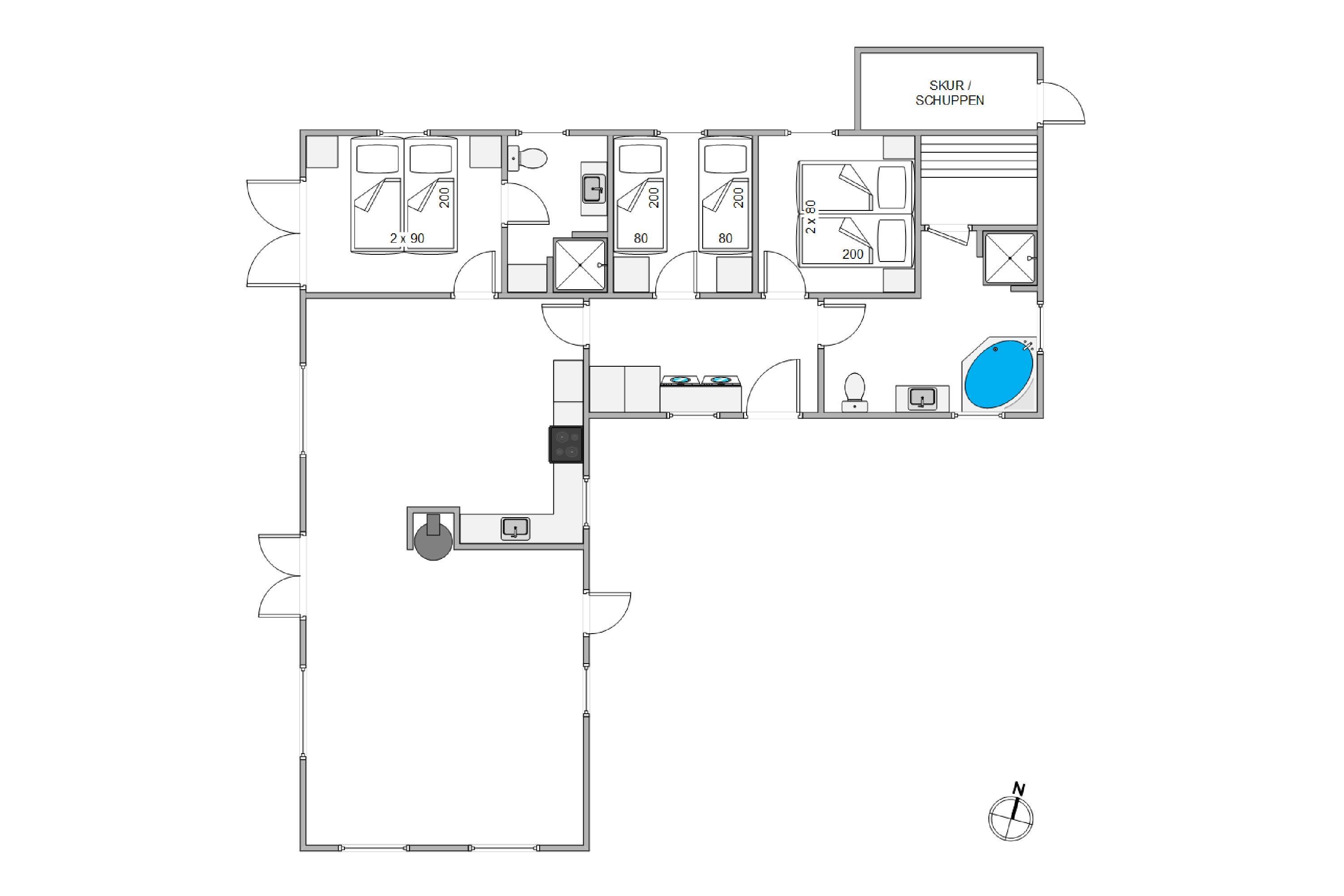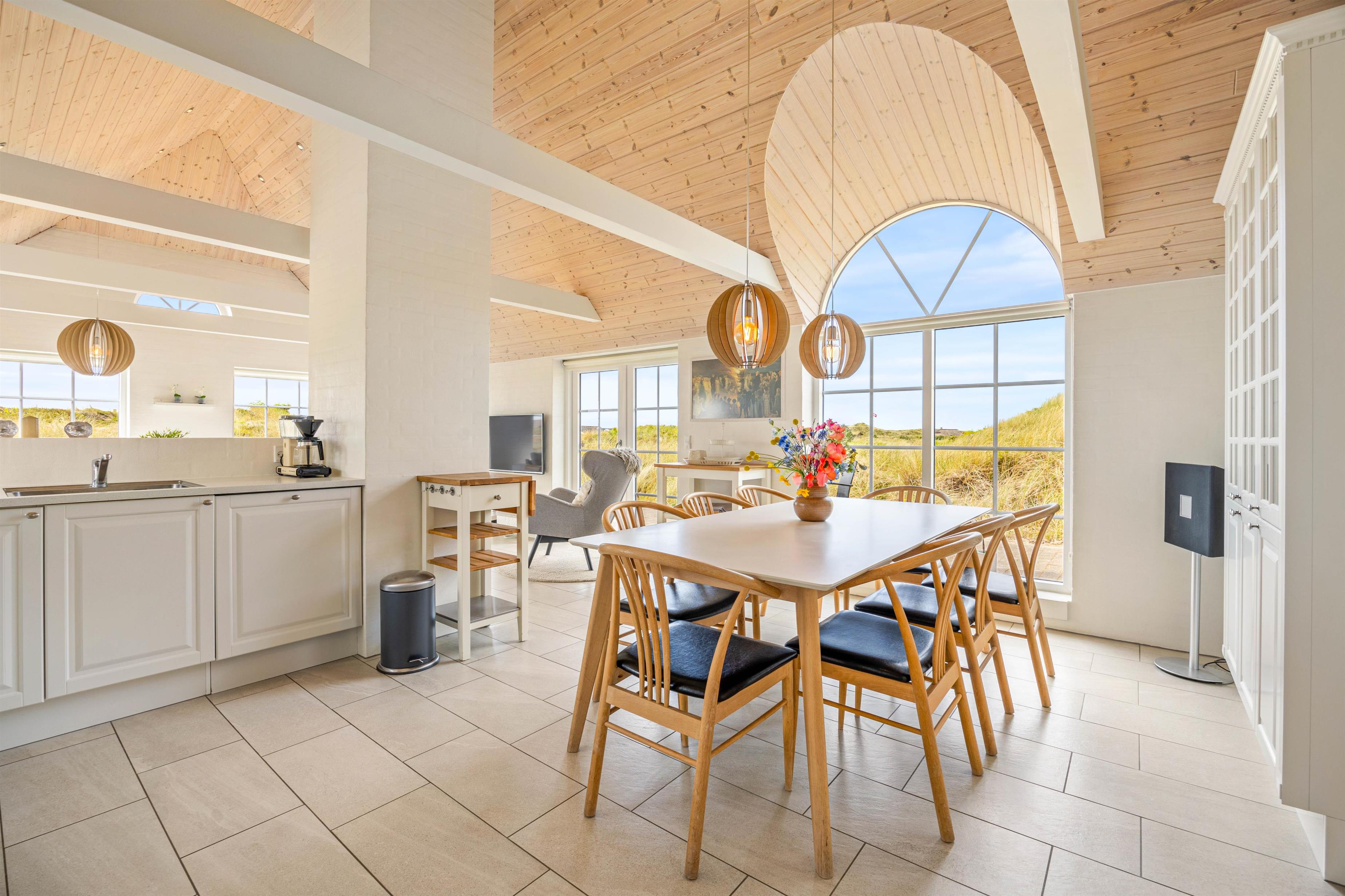På Jens Jensens Vej 43 er der ingen tvivl om, at der kommer til at herske kærlighed ved første blik, når I træder ind i det 100 m2 store feriehus. Her vil I blive modtaget af de flotteste, lækre omgivelser med en stilfuld indretning og en masse lyse elementer og store vinduer, der skaber både rummelighed og en behagelig atmosfære.