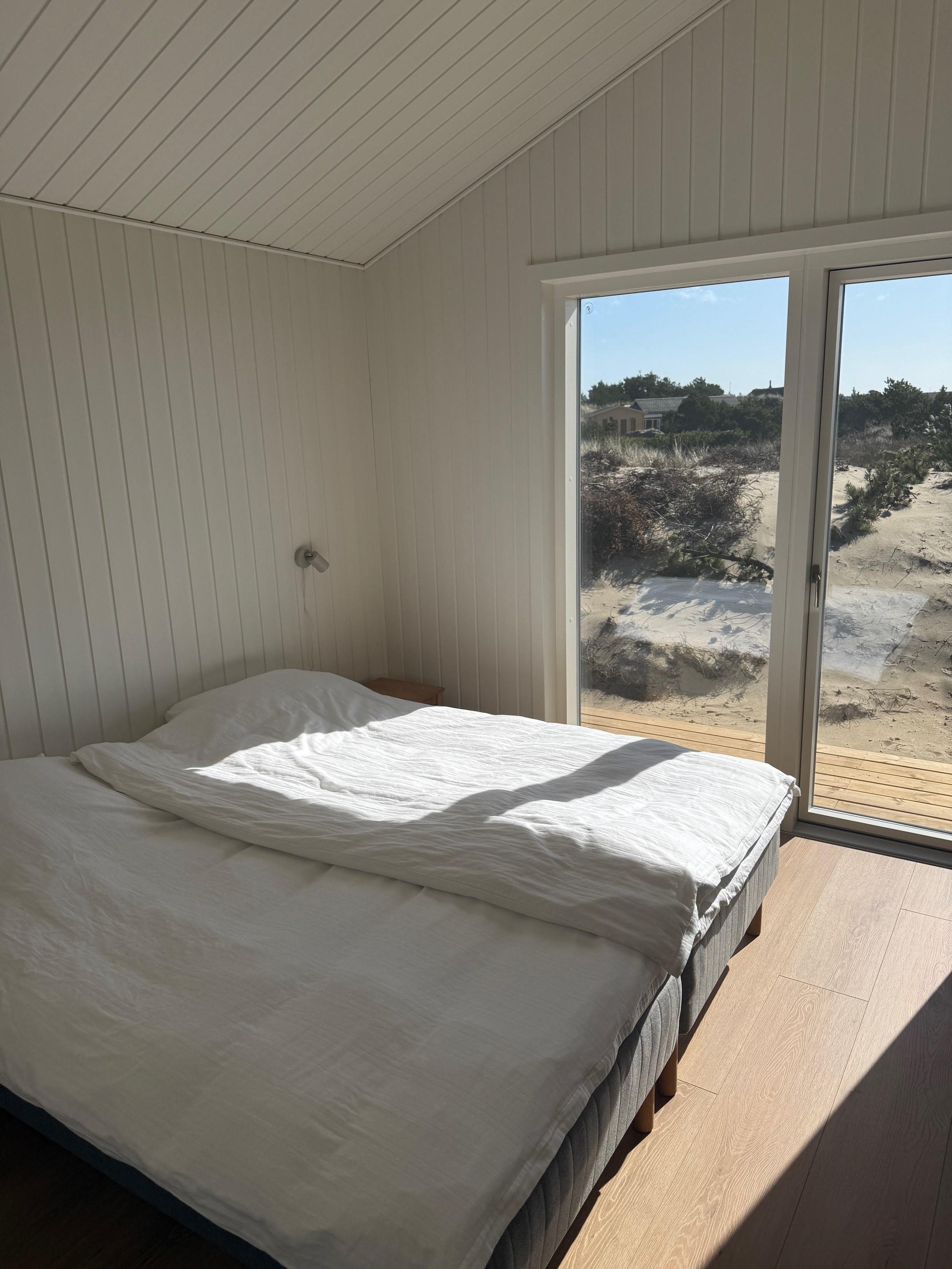 Indretningen er skabt til, at I både kan være sammen og trække jer tilbage. Sommerhuset rummer i alt tre soverum med en dobbeltseng og fire enkeltsenge, hvilket gør det let at fordele sovepladserne, uanset om I rejser som par, familie eller venner. Der er to badeværelser med gulvvarme, som især er behageligt at træde ud på efter et godt bad.