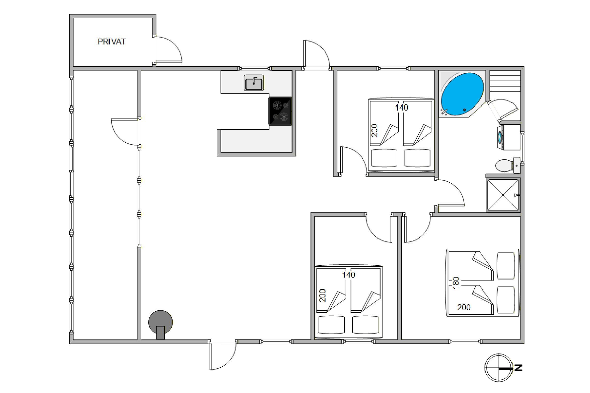 Huset er til 6 personer, og sovepladserne er fordelt på 3 soverum med hver en dobbeltseng. I det velindrettede badeværelse er der foruden gulvvarme, også spa og sauna, så man også har mulighed for lidt wellness på ferien, hvilket vil være en god afslutning på en dejlig efterårsdag i naturen.