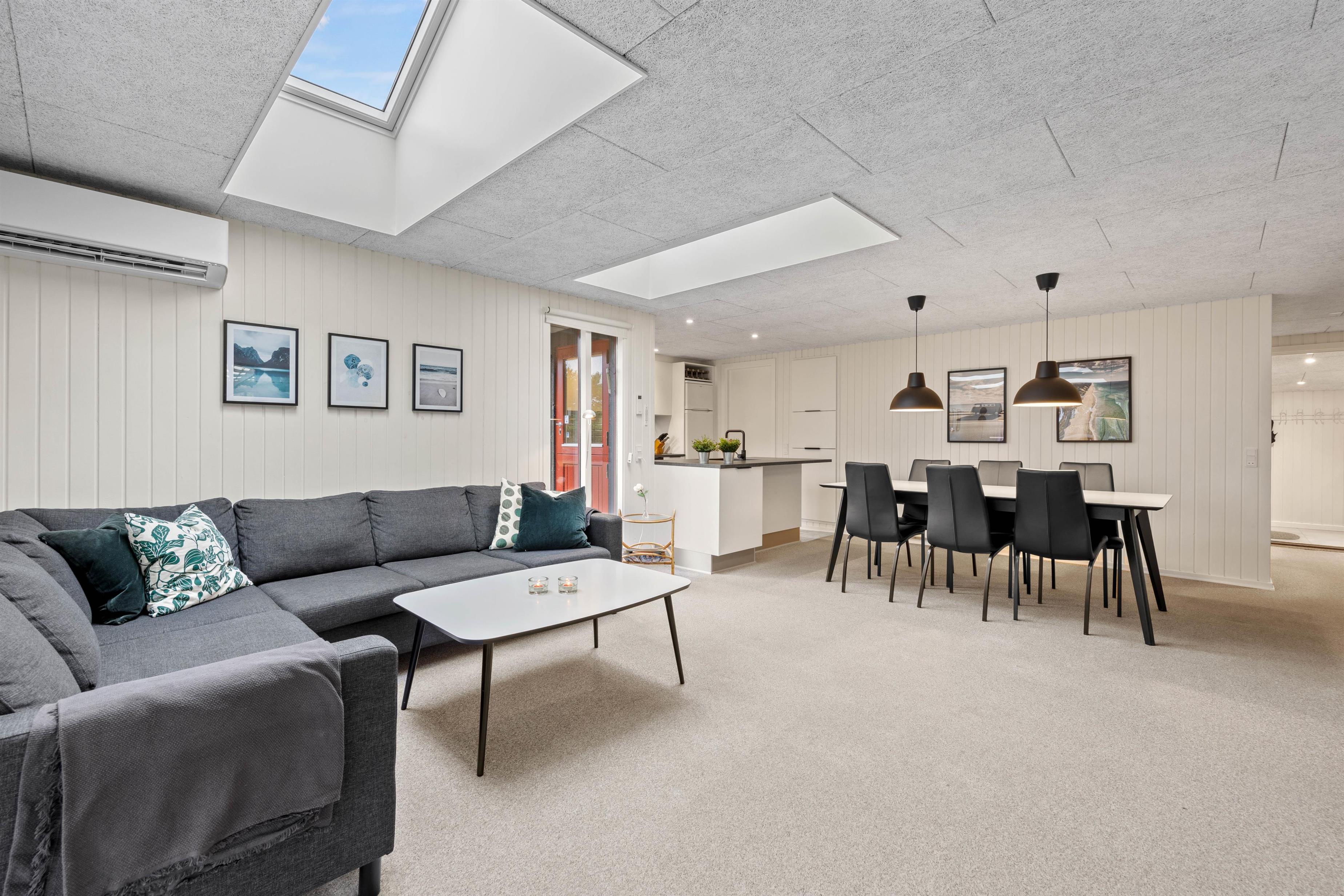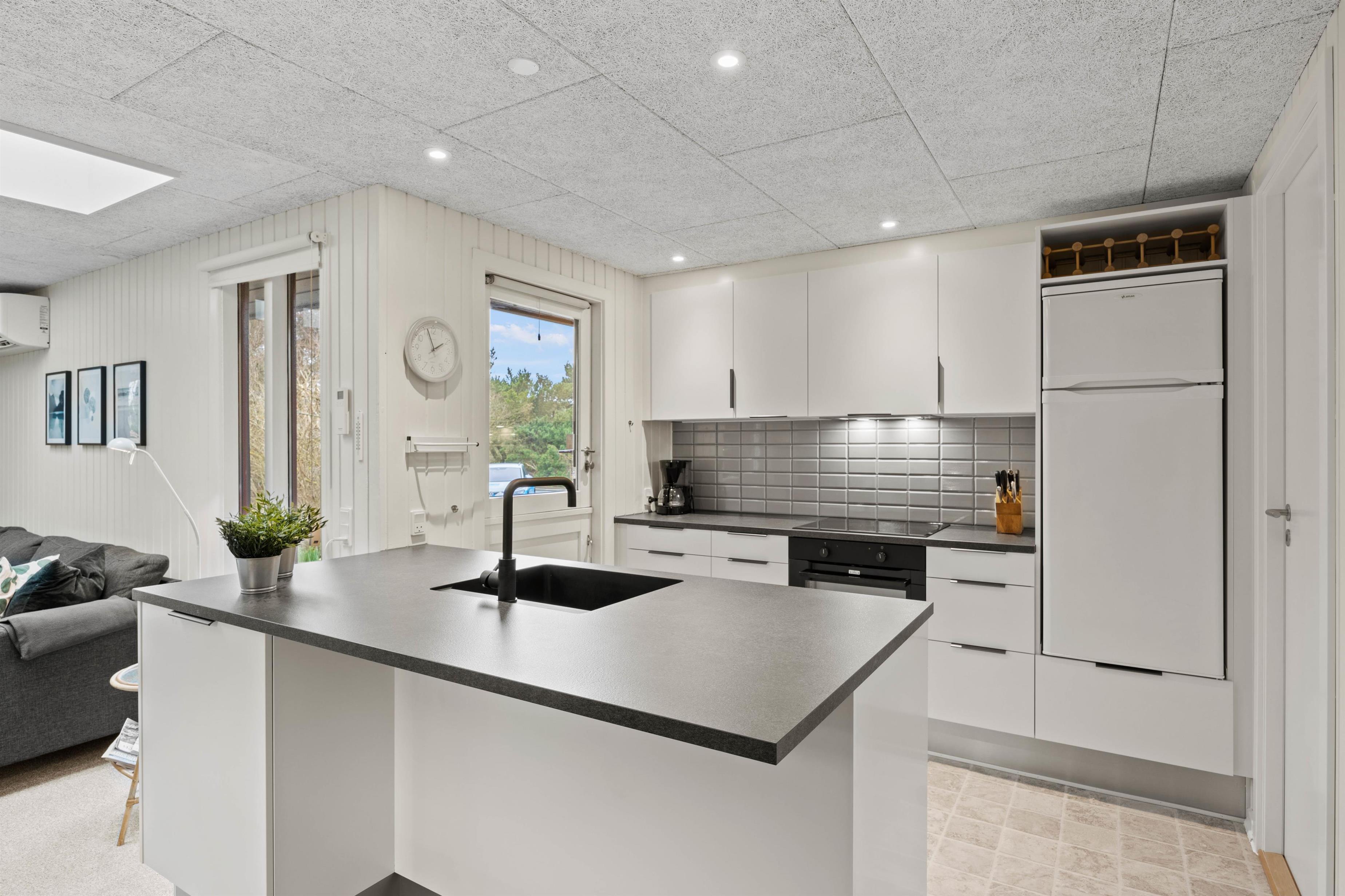 Sommerhuset ligger på ferieadressen Marehalmen 2 og indbyder til gode ferieoplevelser og råhygge. Hjertet af sommerhuset er den store opholdstue, som ligger i åben forbindelse med spiseafdelingen og det helt nye køkken der er fra 2024. Her kan hele familien samles til timevis af familiehygge, madlavning, sjove spil eller blot fordybelse i en god bog med den knitrende lyd fra brændeovnen i baggrunden.