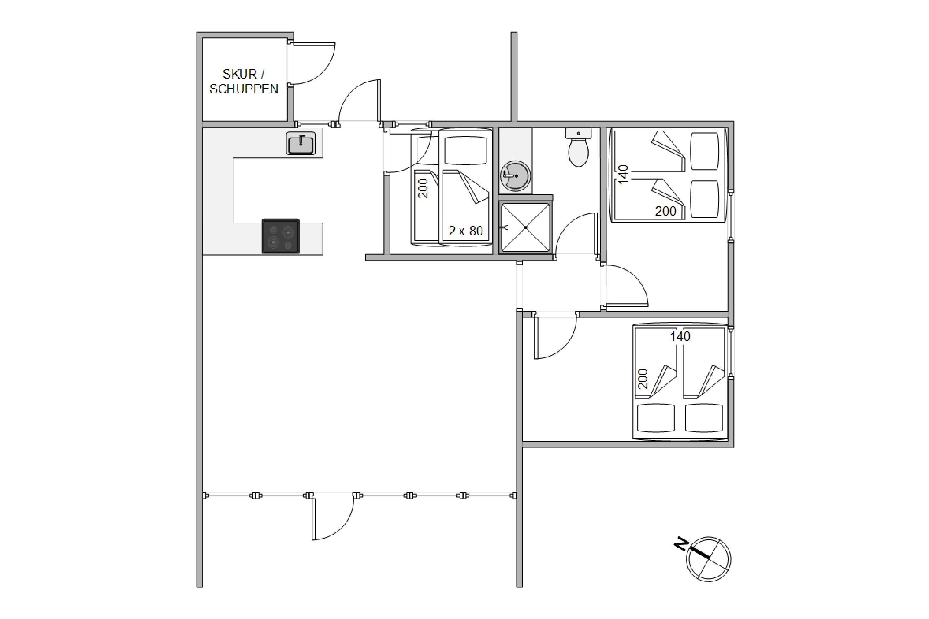 Sommerhusets indretning er perfekt for både familier og vennegrupper. Her finder I 3 gode soverum, der sikrer en god nats søvn efter dagens eventyr. Sommerhusets badeværelse er udstyret med gulvvarme for ekstra komfort, hvilket især er skønt på kølige morgener. Køkkenet er veludstyret og har desuden en opvaskemaskine, hvilket gør madlavningen både nemmere og mere bekvem.
