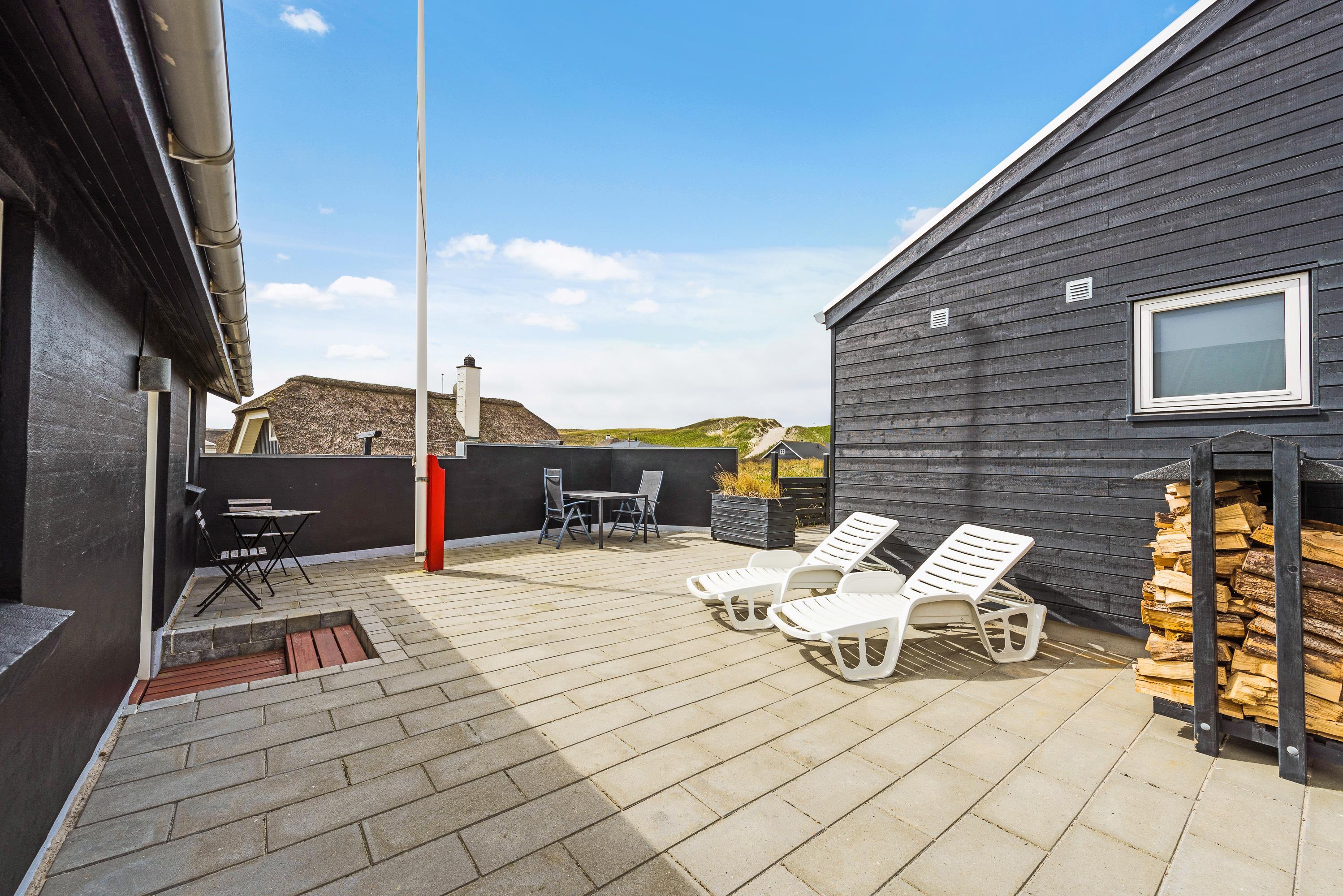 Den åbne terrasse indbyder også til masser af afslappende feriestunder i liggestolene, mens solen bager og stilheden hersker. Her kan I på bedste vis gemme hverdagens strabadser væk og nyde feriefreden i fulde drag.