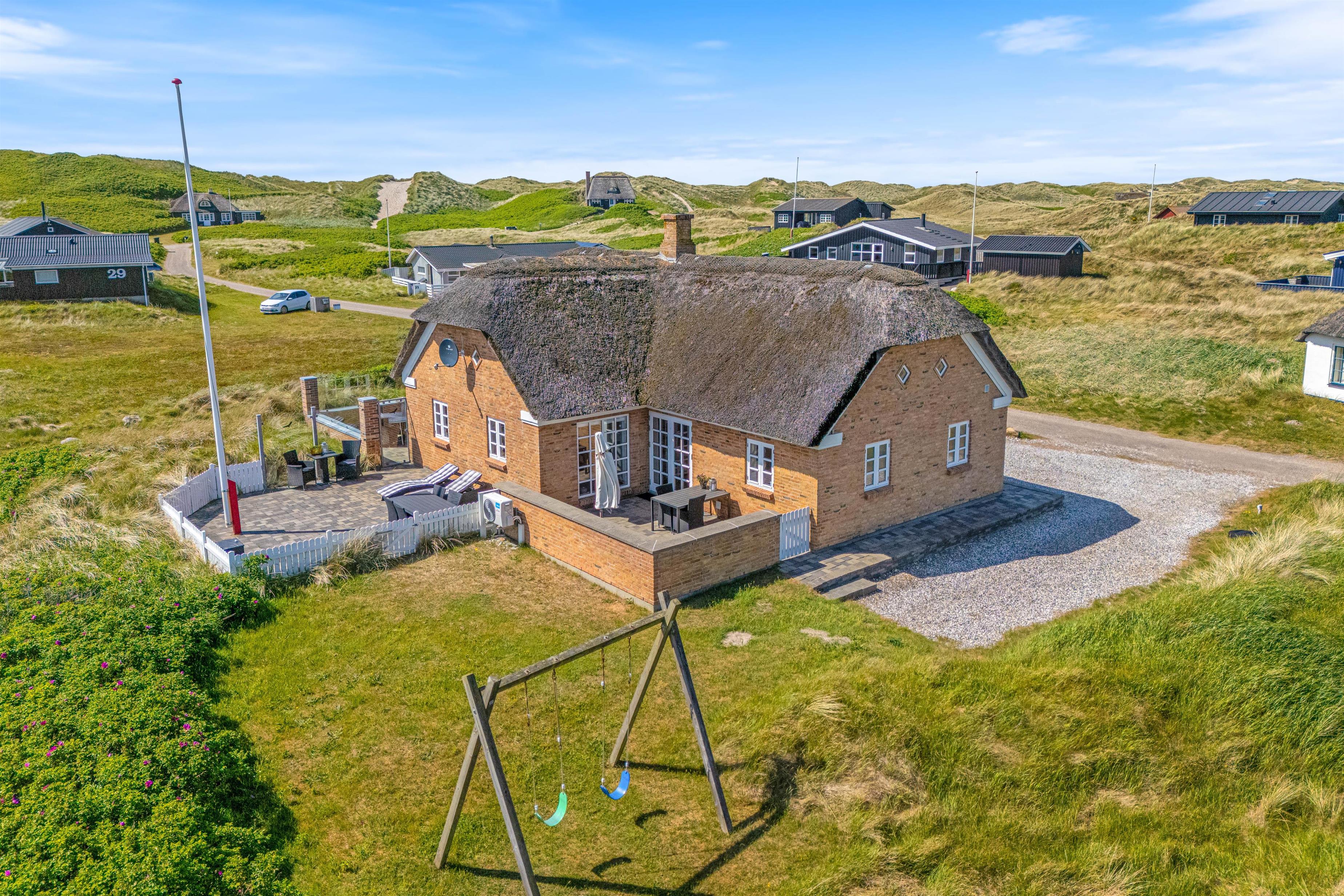 Ønsker I at holde ferie ved den jyske vestkyst, så kunne feriehuset på Sand Holms Vej 27 bestemt være en oplagt mulighed. Herfra er der kun 200 meter til det brusende Vesterhav. Efter en dejlig spadseretur langs vandet, sørger brændeovnen for ægte sommerhusatmosfære. På naturgrunden er etableret både gyngestativ og sandkasse, som helt sikkert vil være et hit blandt de små i familien.