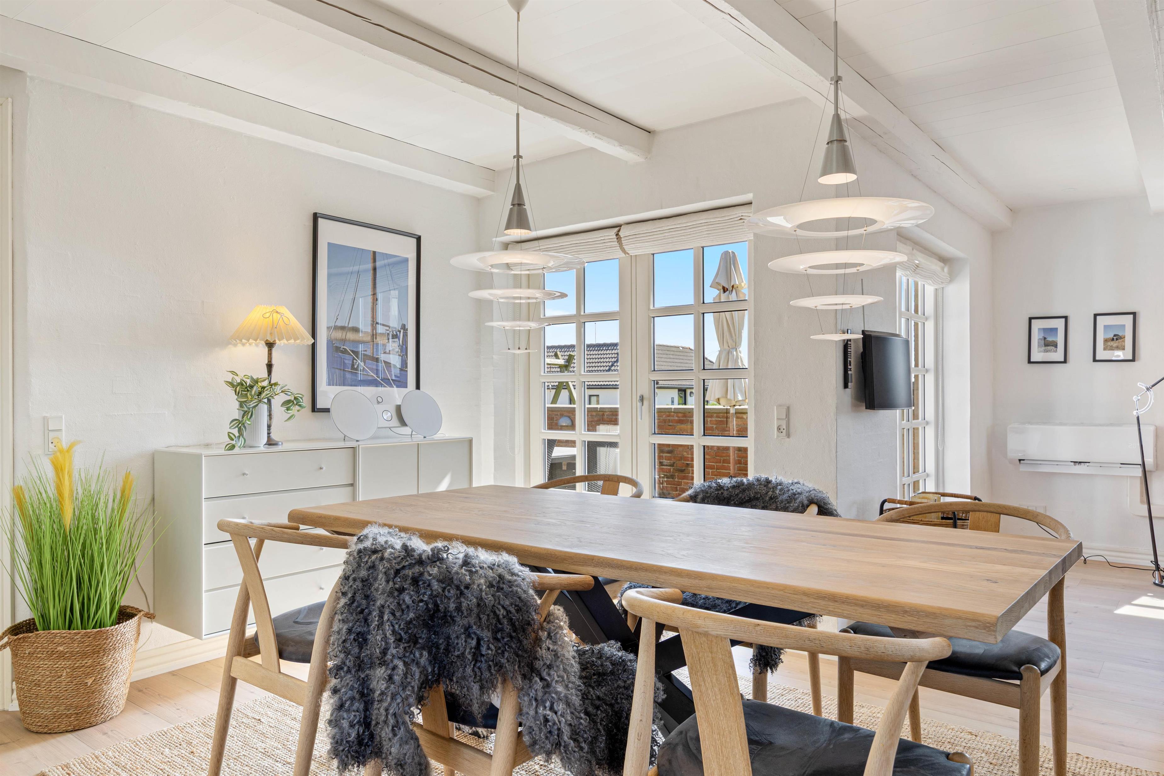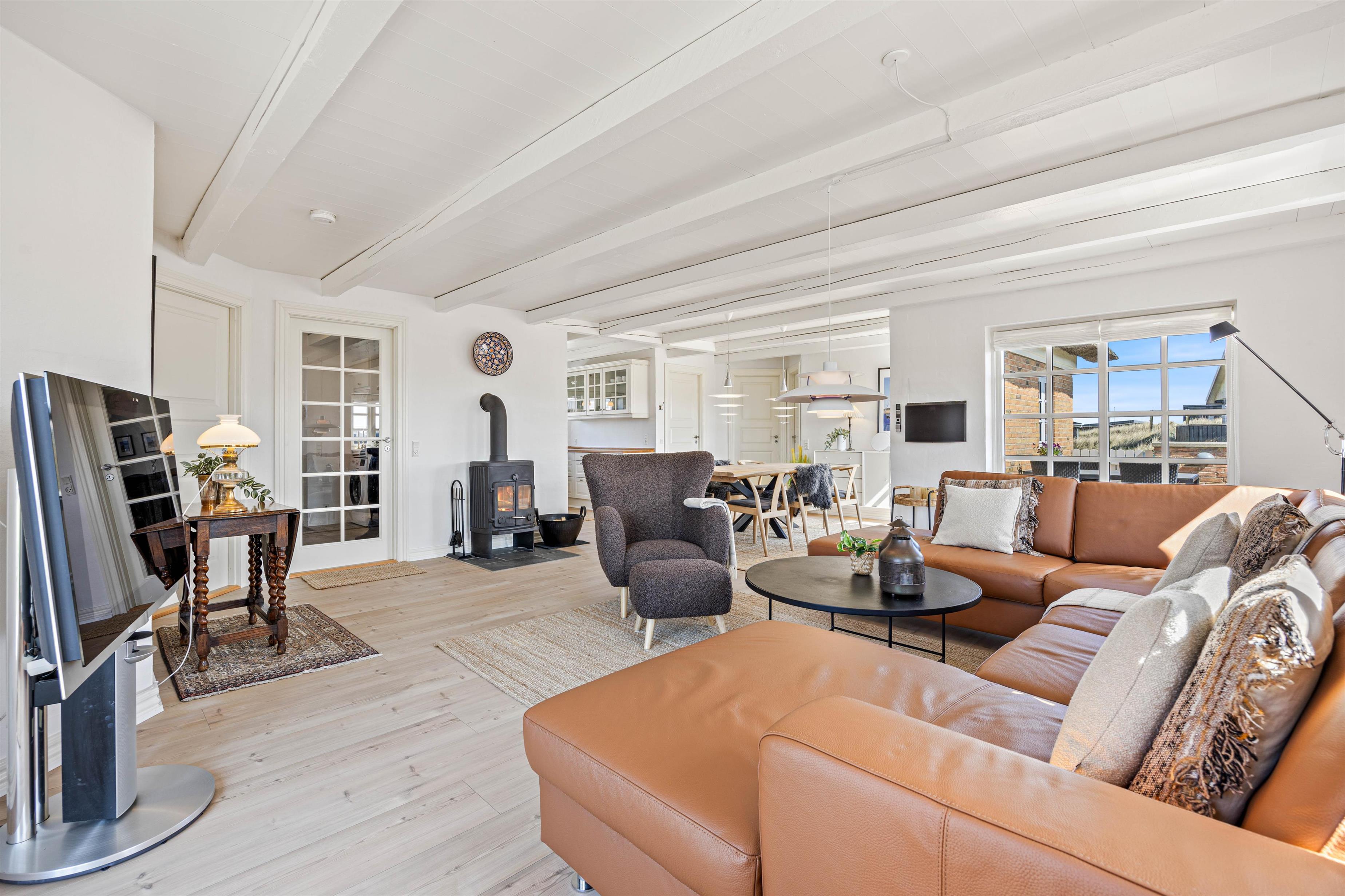 Den energivenlige luft-til-luft varmepumpe sørger for et konstant og behageligt indeklima. Derudover er der alle de fornødne, moderne bekvemmeligheder der skal til for at holde en afslappende ferie. Her er både opvaskemaskine, vaskemaskine og tørretumbler.