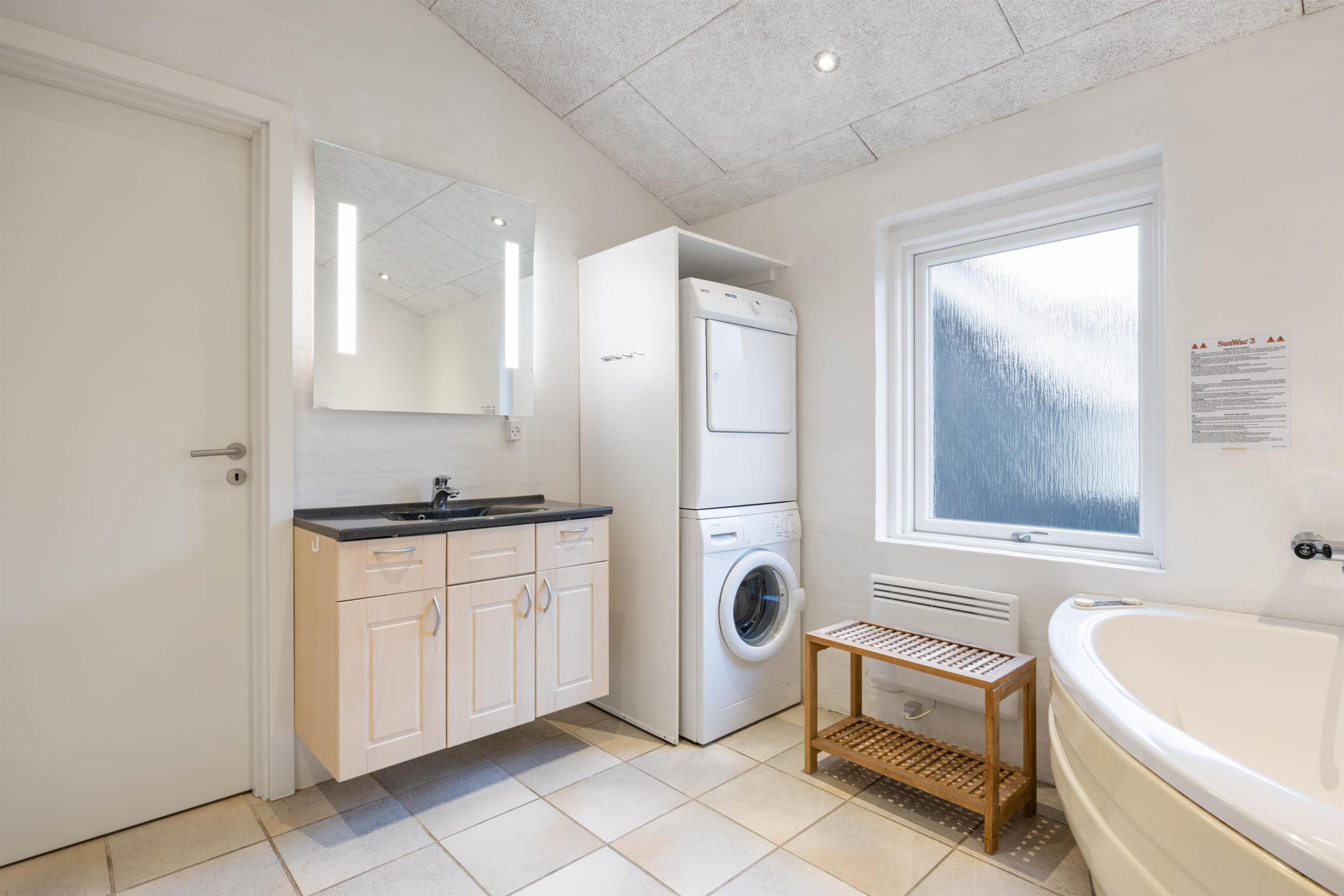 Dette sommerhus er skønt indrettet med store lyse og smagfuldt møblerede rum. Loftet går til kip, så her er en fantastisk højde på rummene. Ydermere sørger de mange store vinduer for et godt lysindfald, hvilket der til at skabe det helt rigtige feriemiljø for jer. I sommerhuset er der plads til seks personer i tre gode soveværelser. To af værelserne er med dobbeltseng og fra det ene af værelserne er der direkte udgang til terrassen. I det tredje værelse er der to seperate senge og en rigtig hyggelig hems.