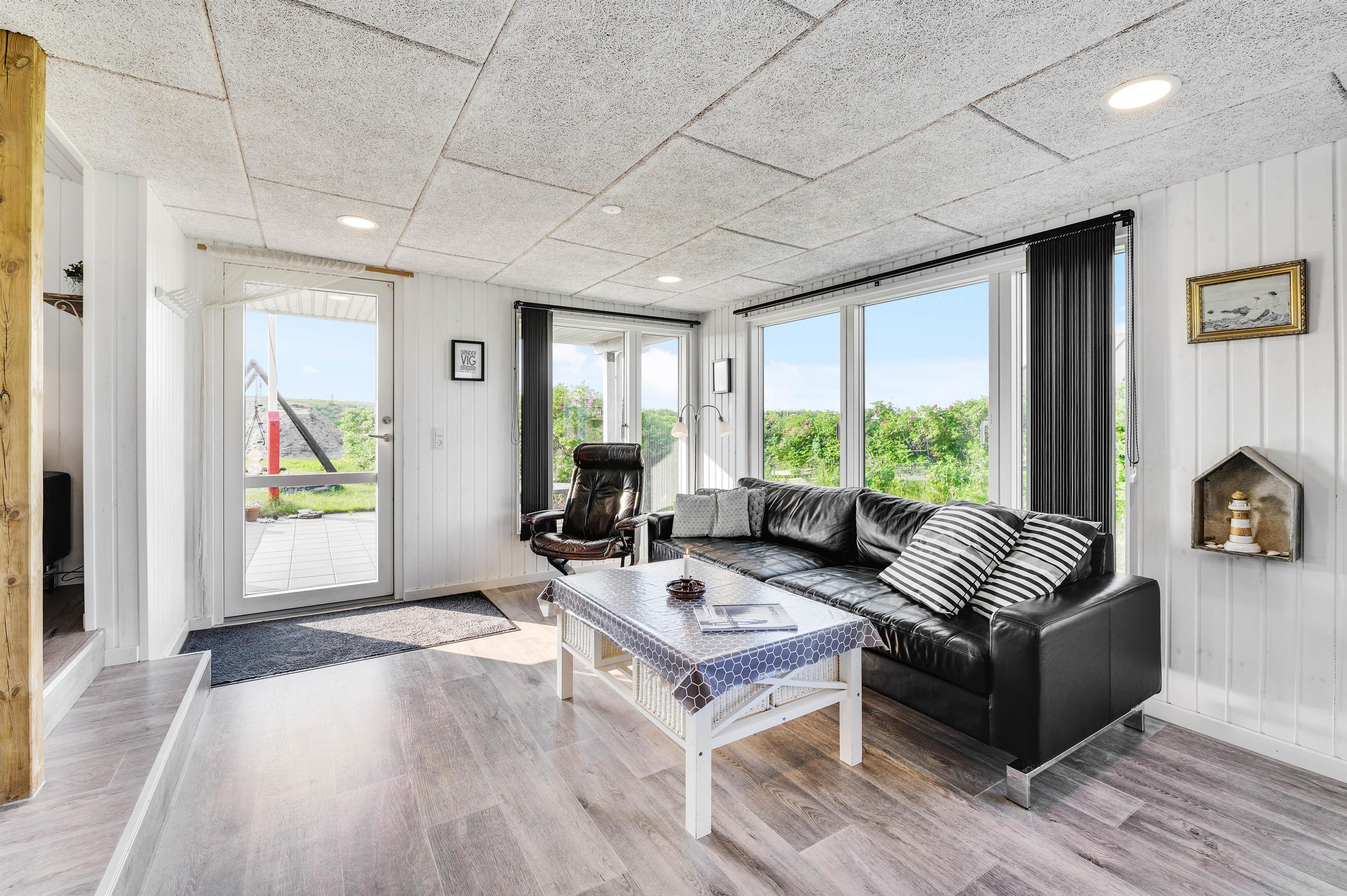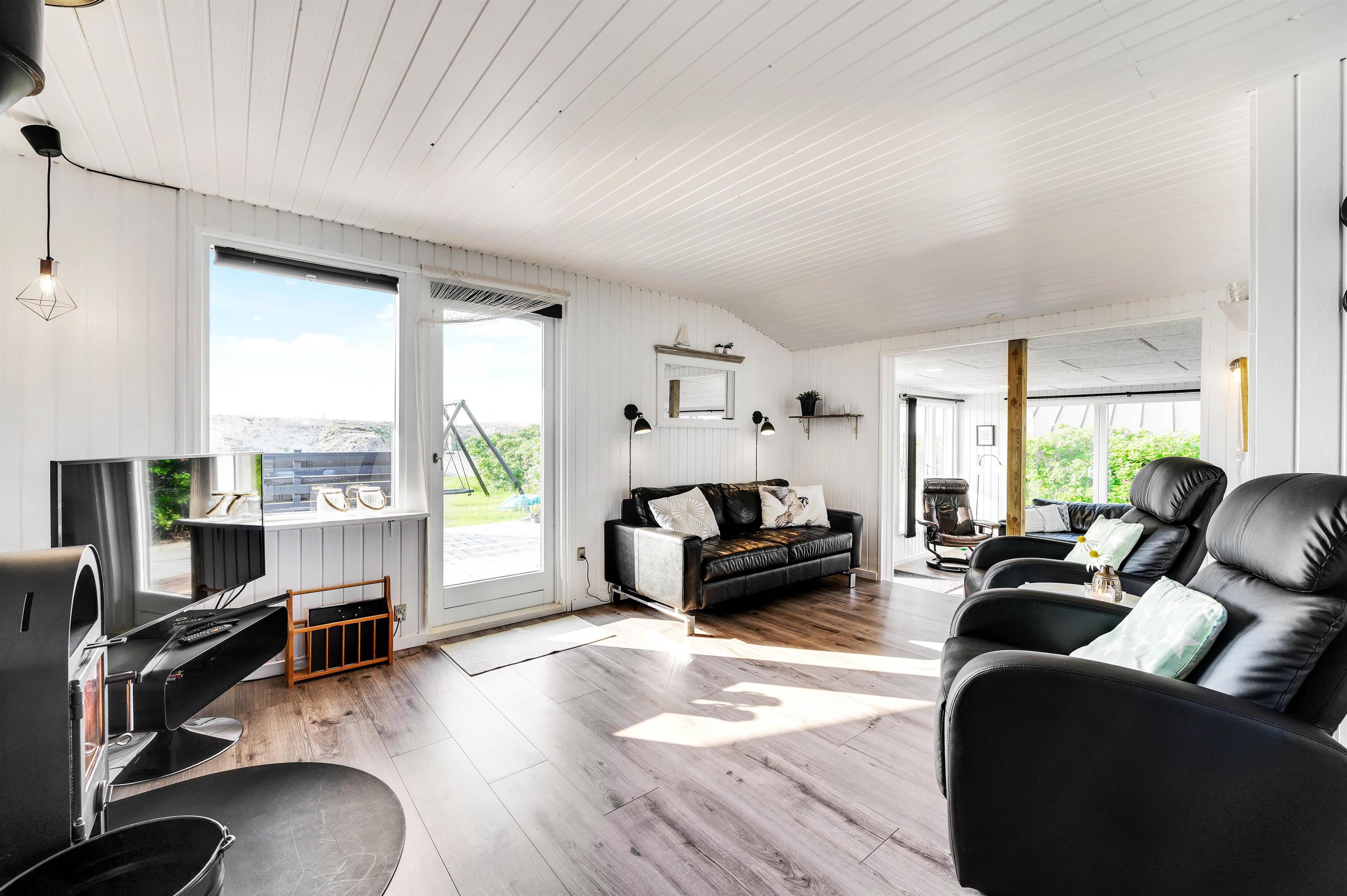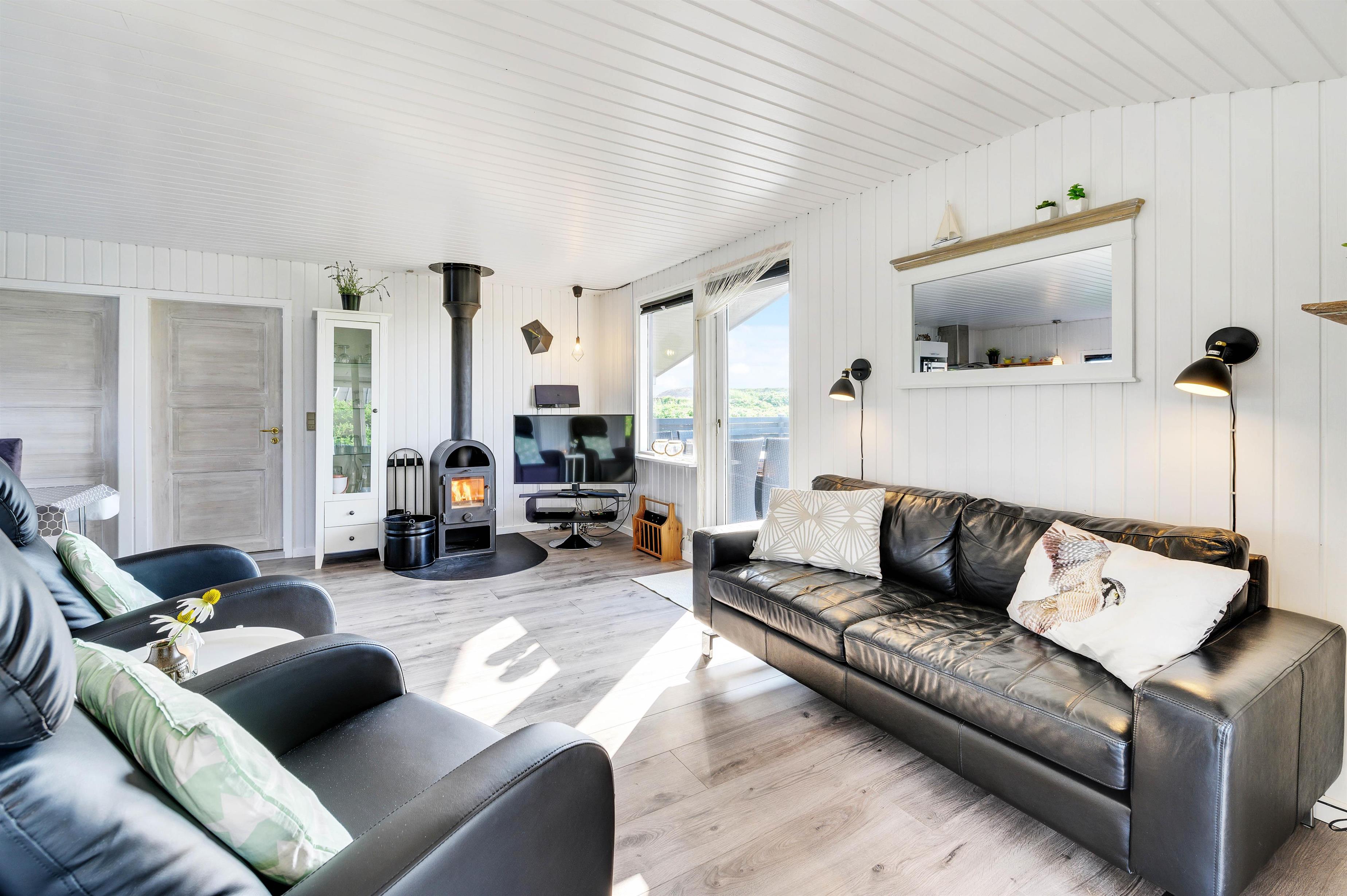 Den hyggelige og charmerende indretning gør, at I vil føle jer godt tilpas i samme øjeblik, I træder indenfor i sommerhuset. Her er virkelig rart at være. De lyse panelvægge og store vinduespartier bidrager til gøre sommerhuset lyst og indbydende, og det er noget nær umuligt ikke at lade blikket vandre ud gennem vinduerne mod omgivelserne udenfor.