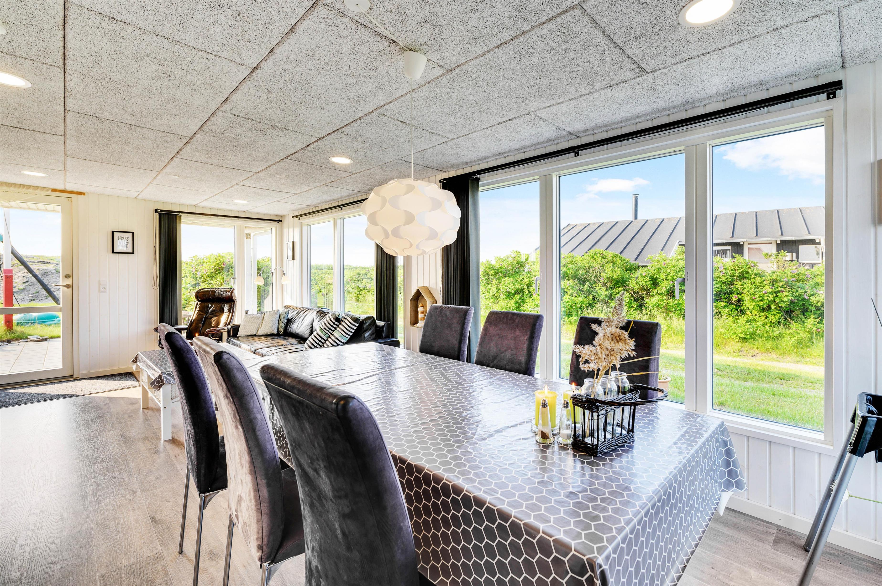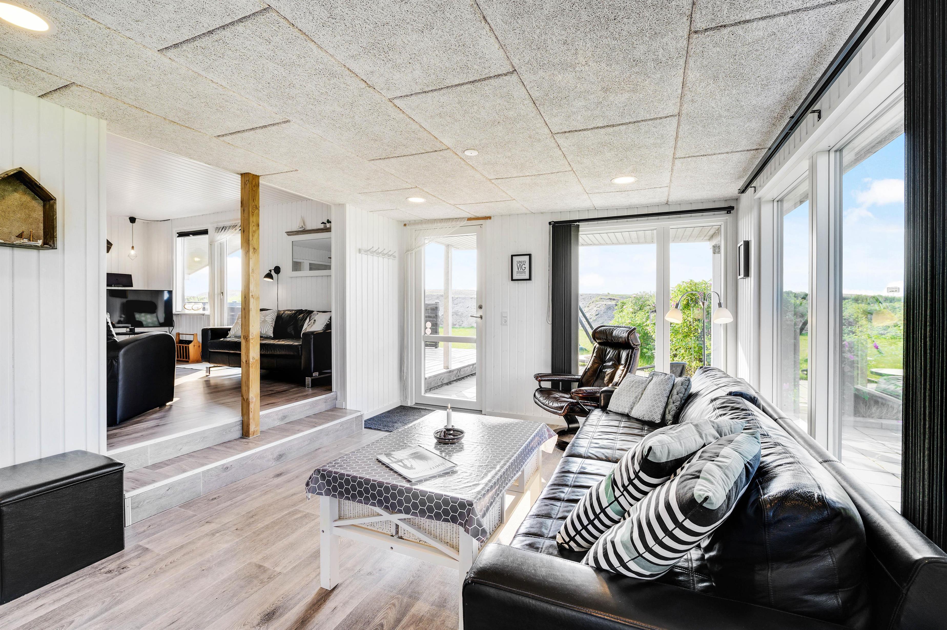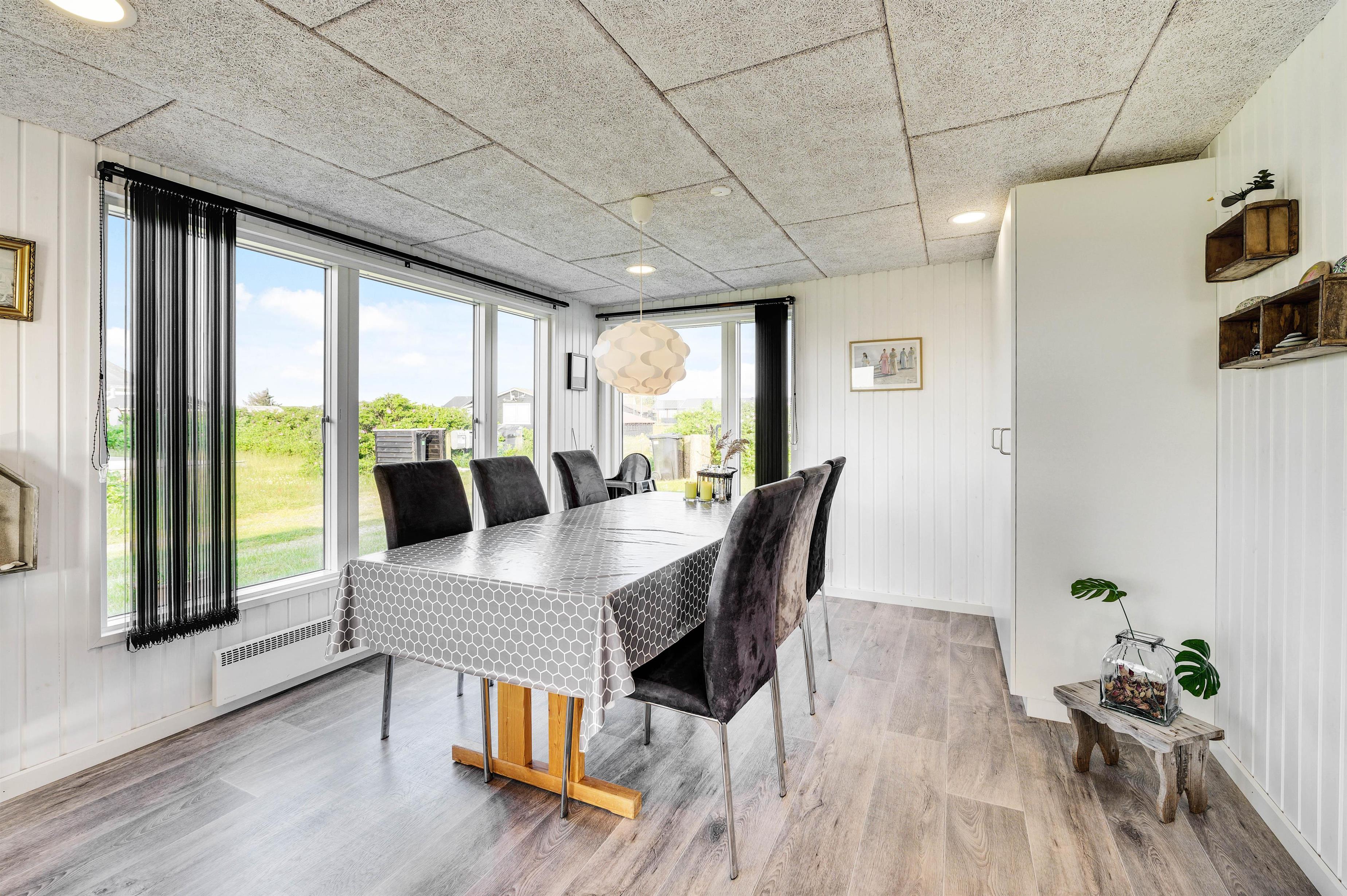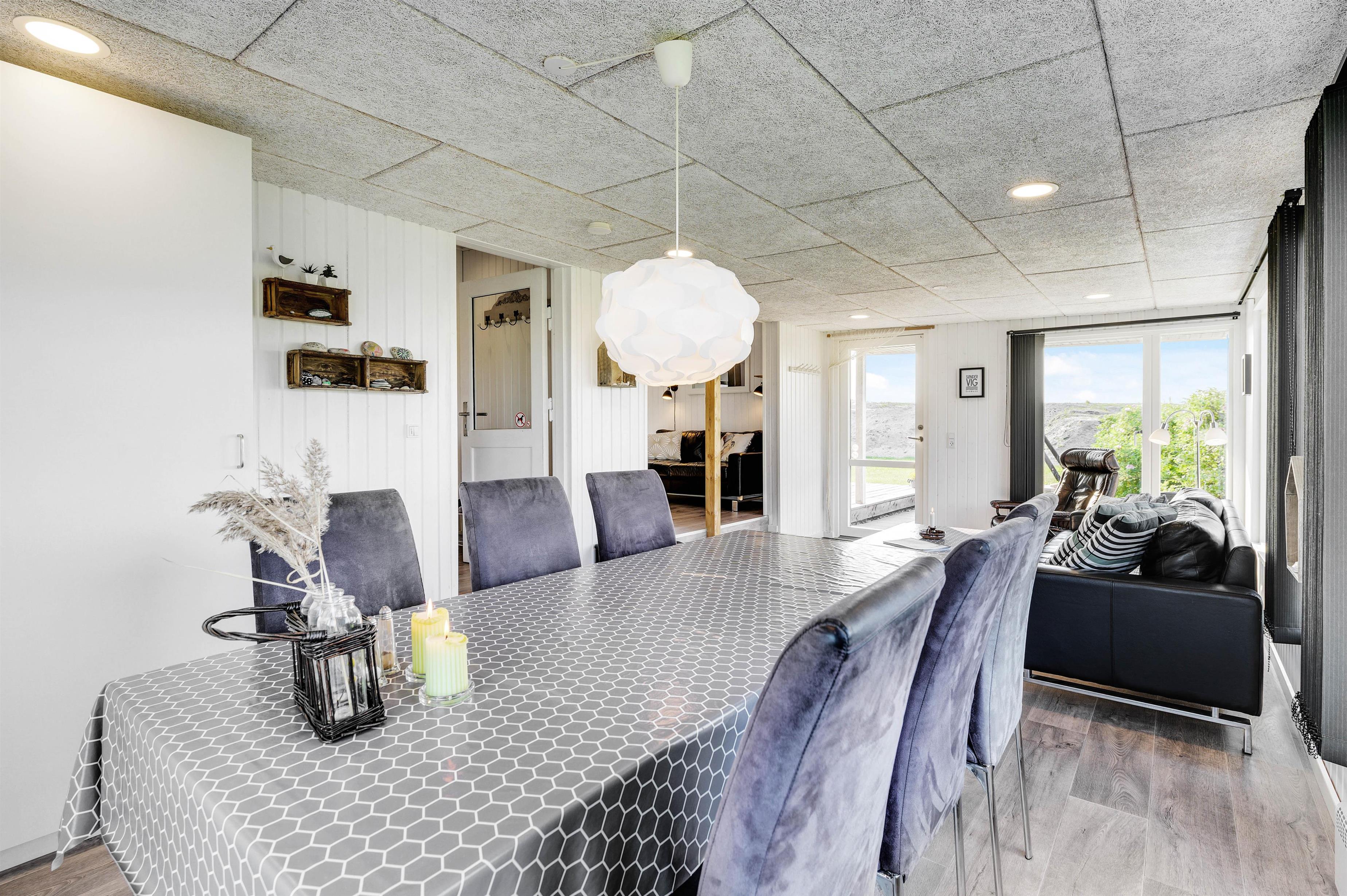 Den hyggelige og charmerende indretning gør, at I vil føle jer godt tilpas i samme øjeblik, I træder indenfor i sommerhuset. Her er virkelig rart at være. De lyse panelvægge og store vinduespartier bidrager til gøre sommerhuset lyst og indbydende, og det er noget nær umuligt ikke at lade blikket vandre ud gennem vinduerne mod omgivelserne udenfor.