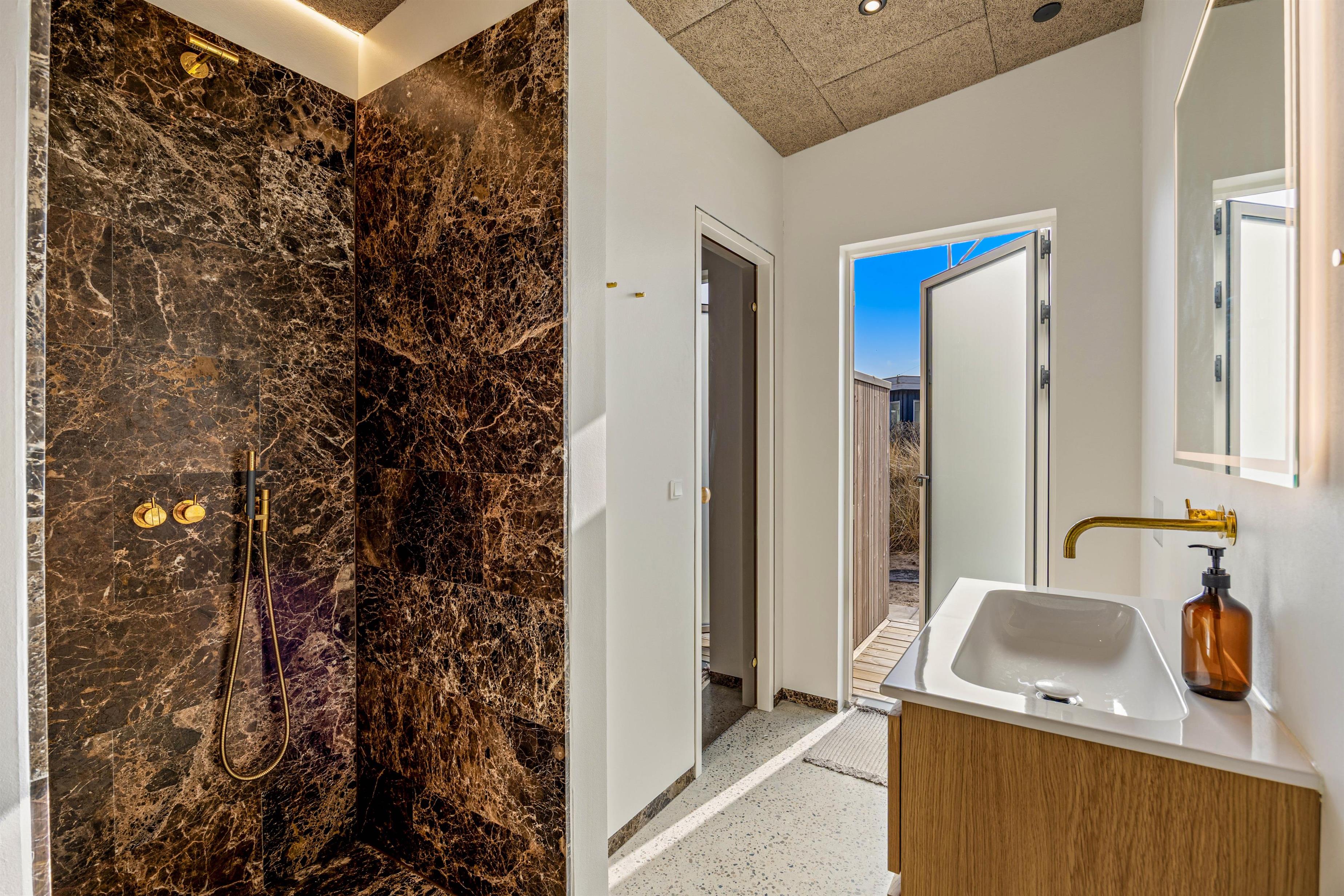 Sommerhuset har 2 badeværelser, hvoraf det ene har en sauna, perfekt til afslapning hele året rundt.