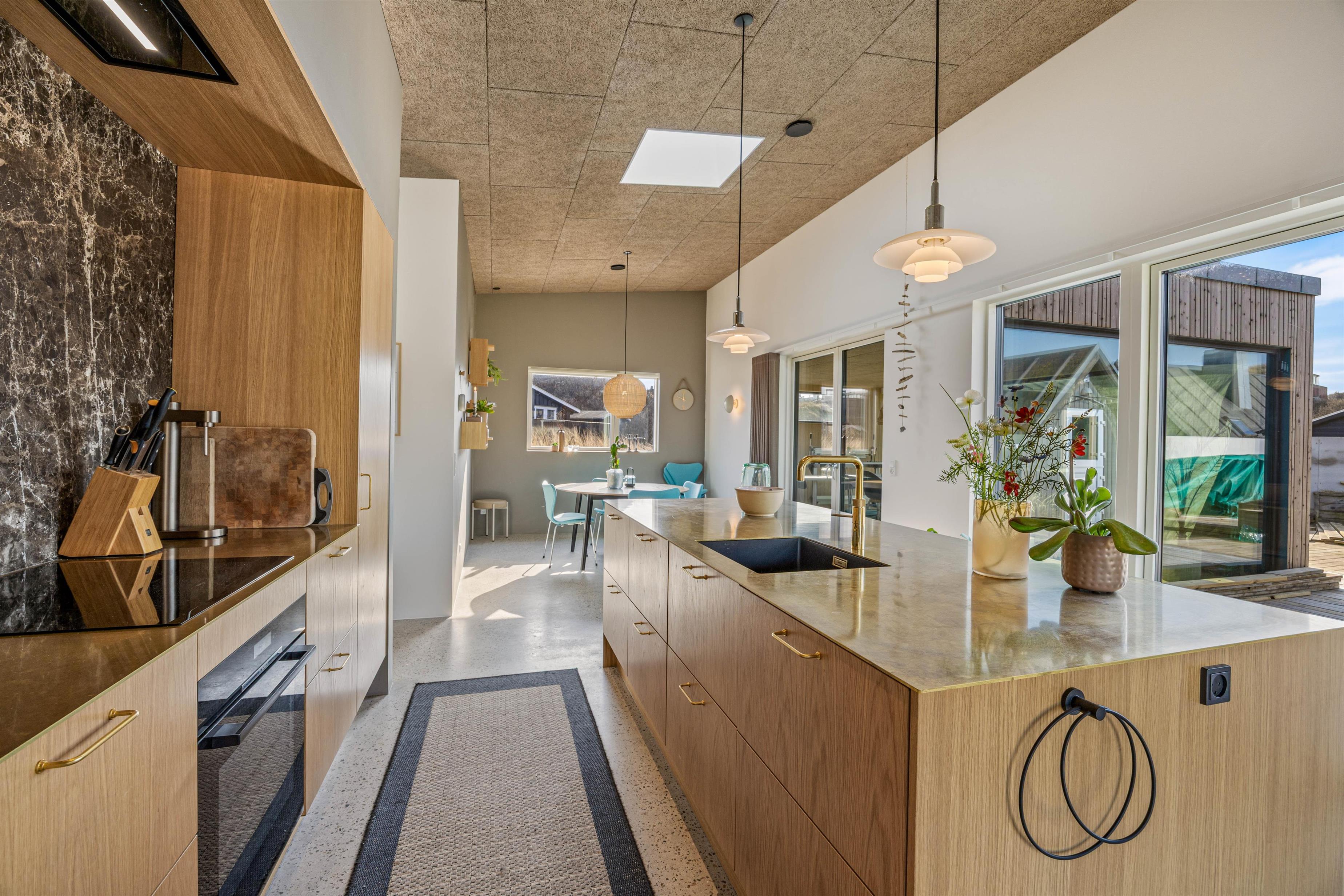 Det veludstyrede køkken indbyder til lækker madlavning, og med opvaskemaskinen kan I nøjes med at nyde tiden sammen. Saml familien eller vennerne omkring spisebordet, spil brætspil, eller planlæg de kommende feriedage. Sommerhuset har også en stor udestue, perfekt til både vinter og sommer, hvor I kan nyde morgenkaffen og samtidig få følelsen af at være udendørs.