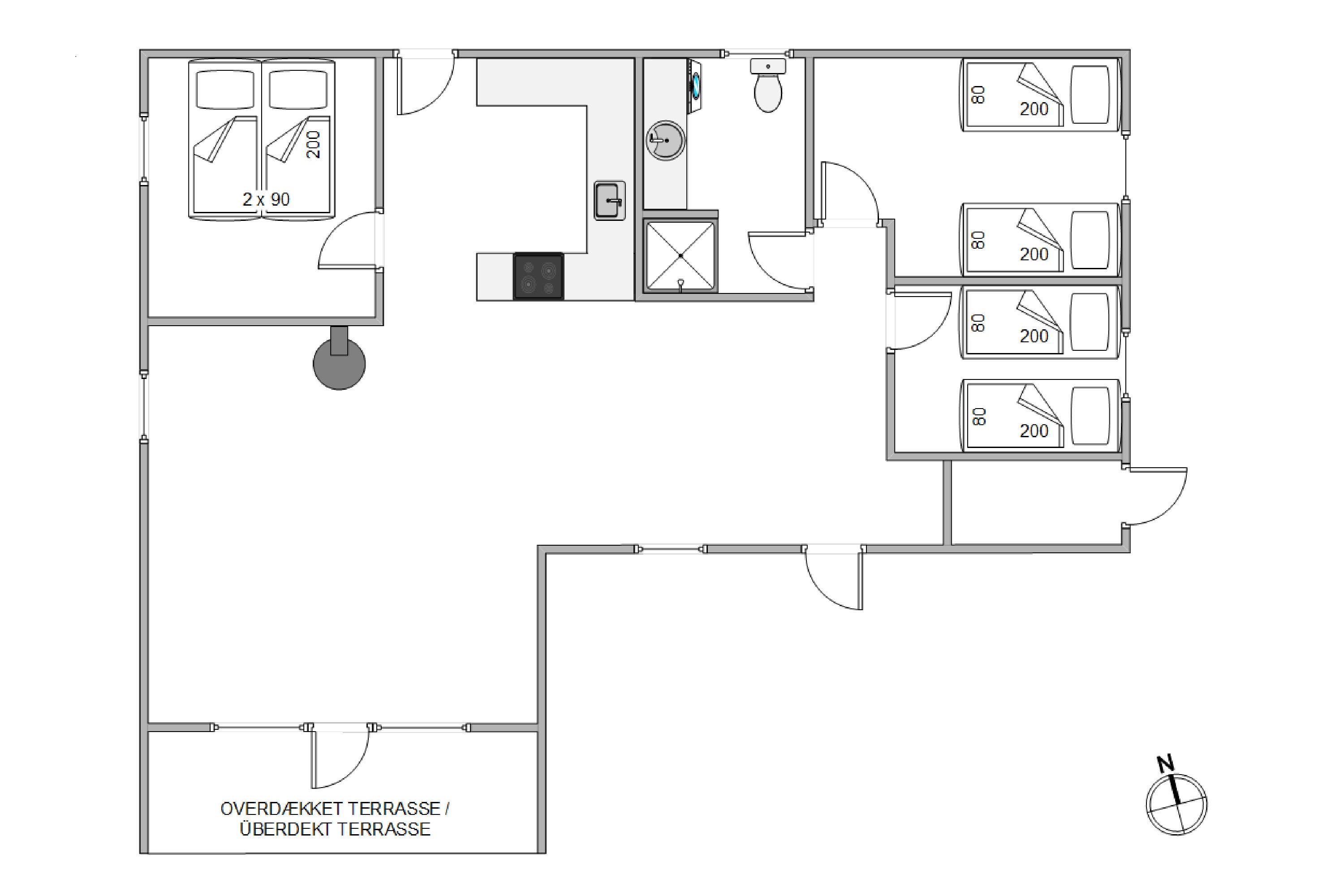 Den klassiske feriehusstemning fortsætter, når I træder ind i sommerhuset, men dog med et moderne twist, som sørger for en god og komfortabel standard i feriehuset. De sorte loftsbjælker skaber en god kontrast og dybde i indretningen, som inviterer til hyggestunder sammen med familien. Uanset om I opholder jer i den hyggelige tv-stue, som ligger i åben forbindelse med køkkenet, eller i spiseområdet, så er der plads til, at hele familien kan være samlet. Sommerhuset har 3 gode soverum med plads til 6 personer. Sommerhuset er selvføgelig komfortabelt indrettet med opvaskemaskine, tørretumber og vaskemaskine.