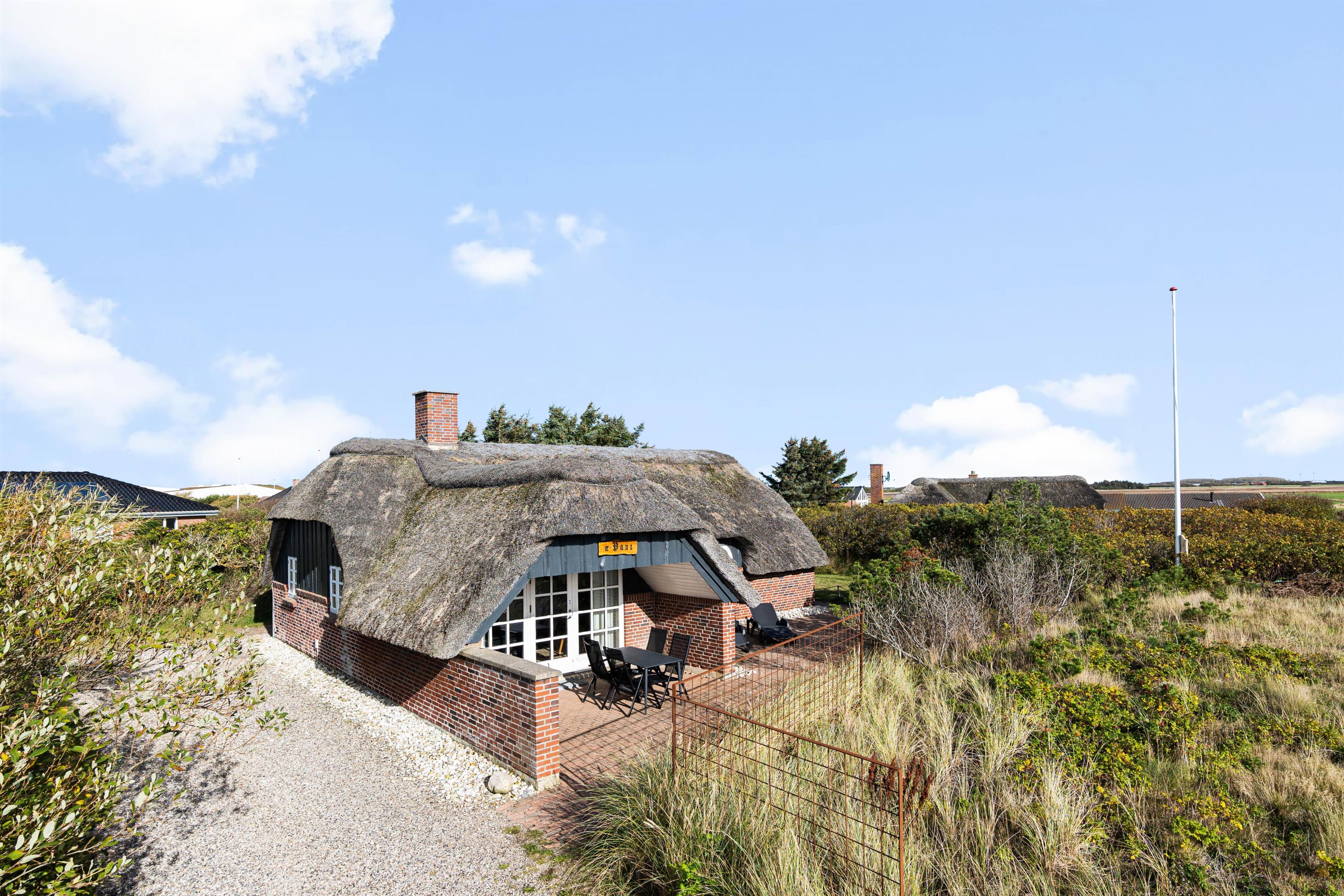 Feriehuset på Nordsøvej 81 emmer af dansk sommerhusstemning både ude og inde. Det flotte stråtag får feriehuset til at smelte sammen med omgivelserne. Fra stuen har I direkte adgang til den primære terrasse, som er afskærmet i begge sider og delvist overdækket. Det betyder, at I kan sidde på terrassen helt ugeneret. Den delvist overdækkede terrasse sørger samtidig for, at I kan siddde ude lidt længere – selv når aftensolen er gået ned, og duggen er faldet. Terrassen er derfor oplagt til hyggelige grillaftener på dejlige, lune sommeraftener. Dine hunde vil nyde de lange gåture i den friske natur, at slappe af i skyggen på terrassen og selvfølgelig at være sammen med jer.