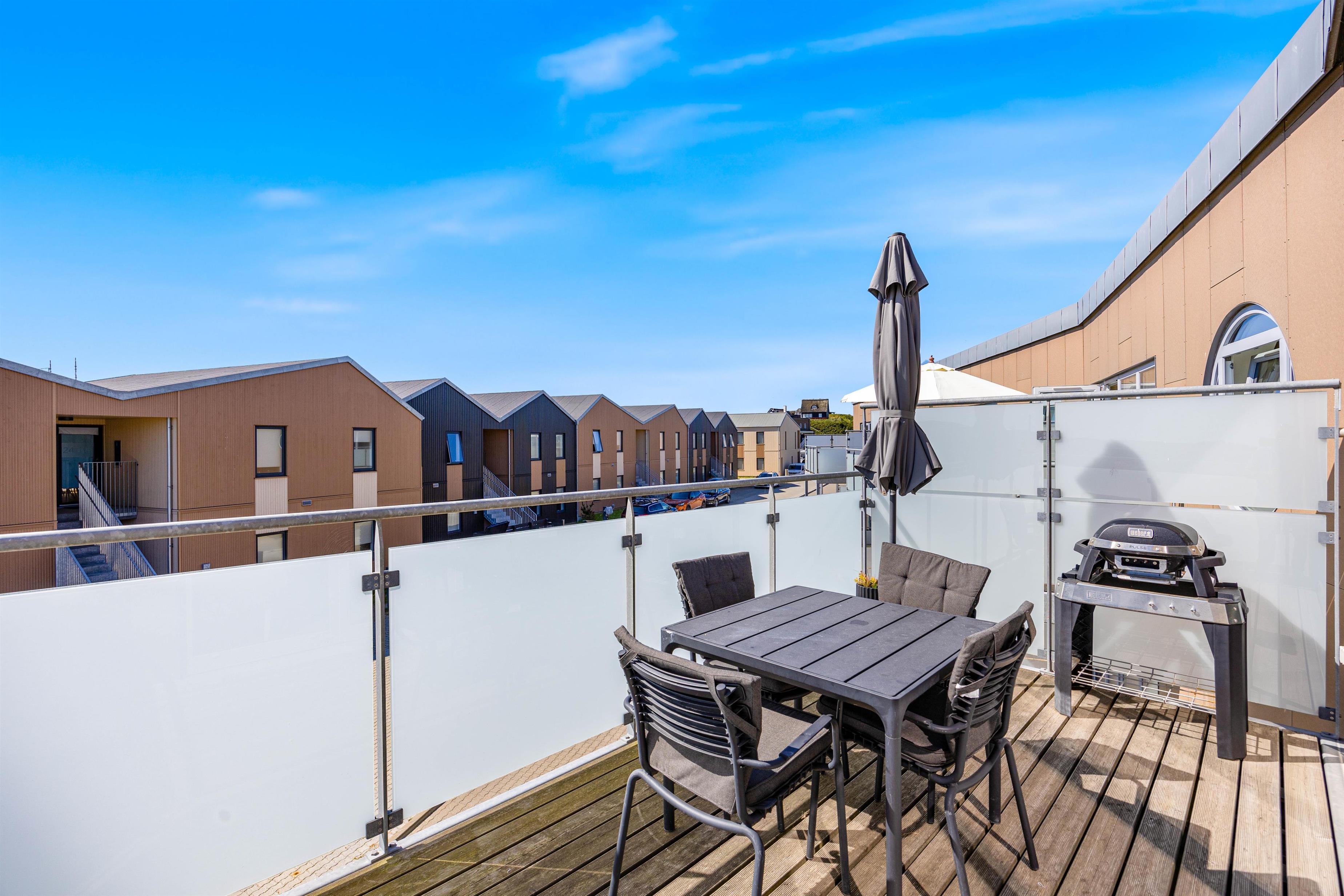 Er der godt vejr, at I med fordel nyde jeres morgenkaffe på jeres egen altan, som er møbleret med havemøbler. I kan også tilberede et lækkert måltid på grillen og nyde det på altanen.